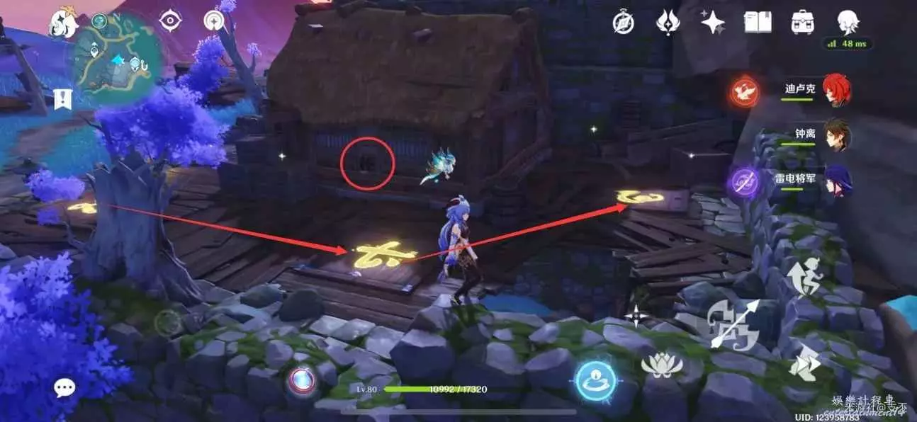 殘頁在小屋子裡,外邊有個木盾丘丘暴徒看守