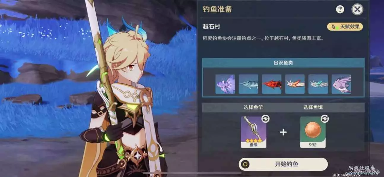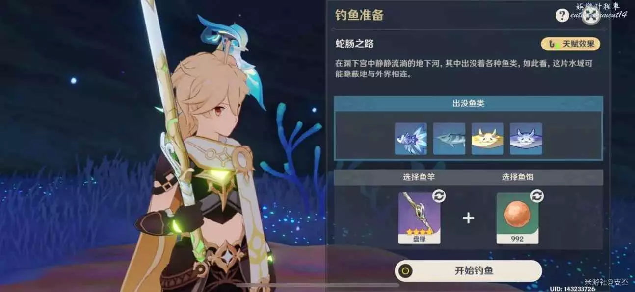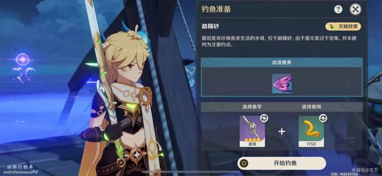 此處魚只有雷鳴仙,晚上出沒,需要蠕蟲假餌來釣
