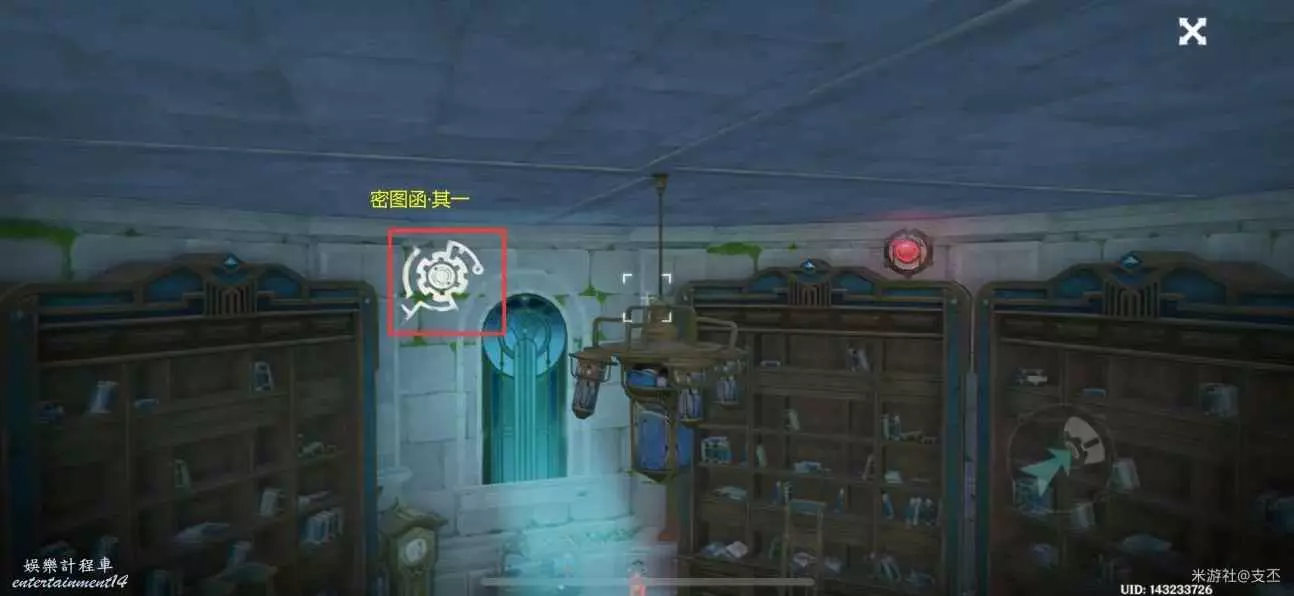 在學術會堂傳送點下方,啟動「遷能終端」,對準圖案,閱讀獲取密圖函·其二的資訊
