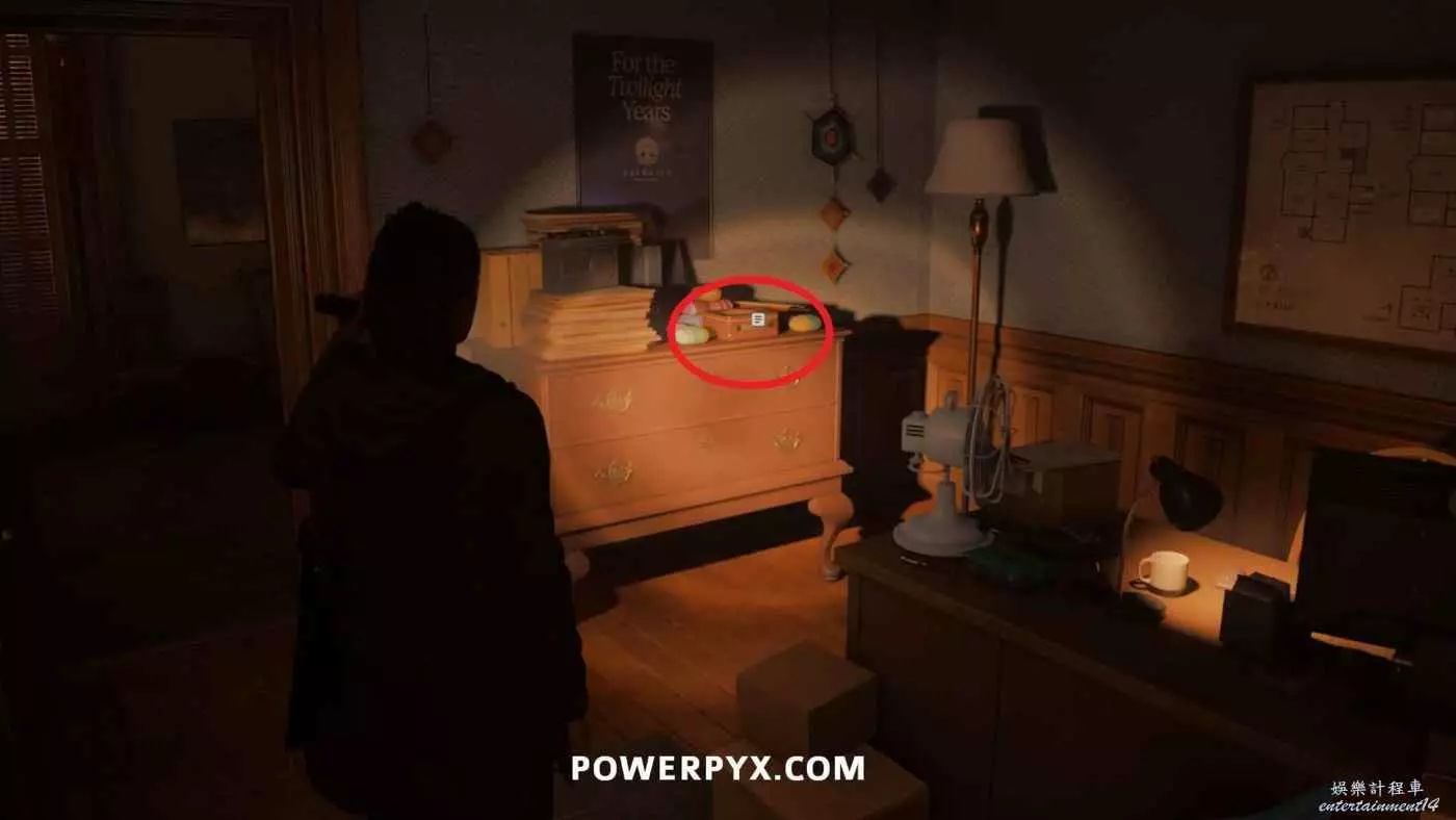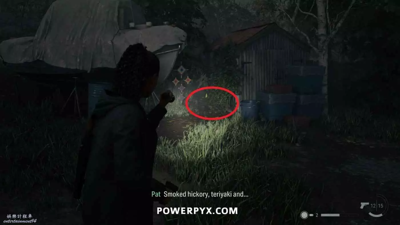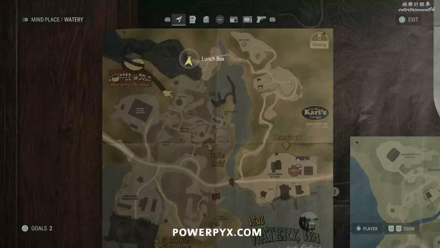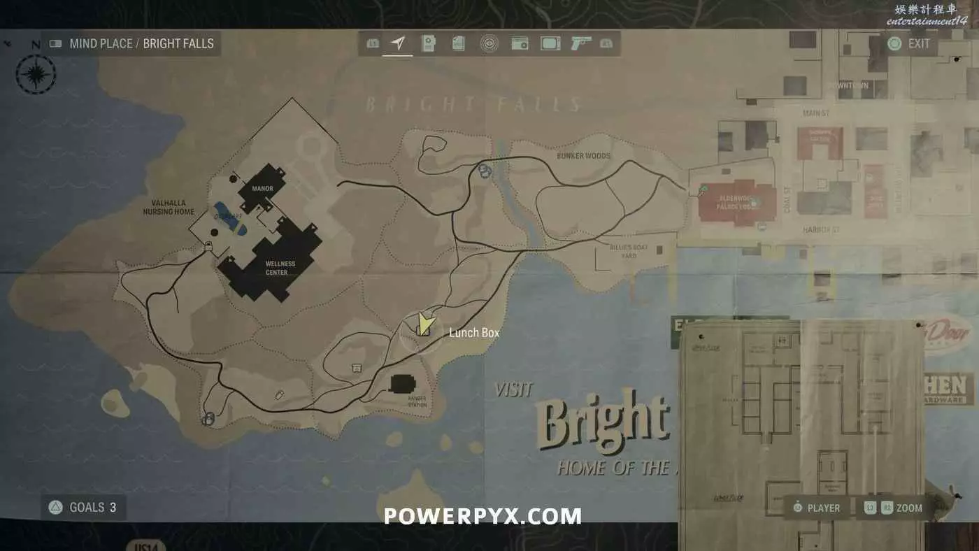 推進劇情到從副警長那裡獲得捷徑鑰匙後,需要跟著凱西上山返回本章開頭的汽車所在位置,在捷徑途中有一棟小房子,爬上小房子後面的高台即可找到這個午餐盒。