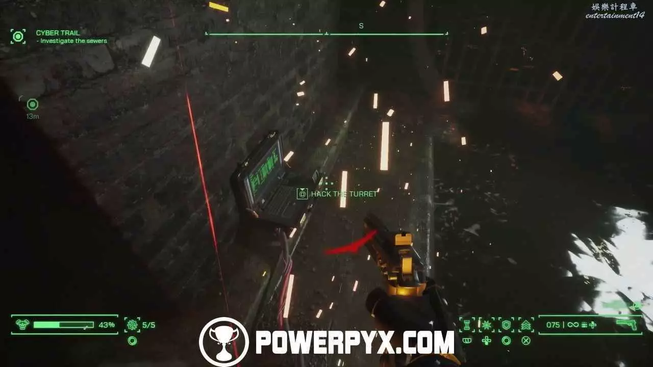 入侵炮塔需要將【工程學】技能提升到6級,需要消耗6個技能點。在【主線任務20網路追蹤】中會遇到第一個炮塔,跟隨任務指引進入下水道,繼續推進一段時間後可以看到下圖所示的門。