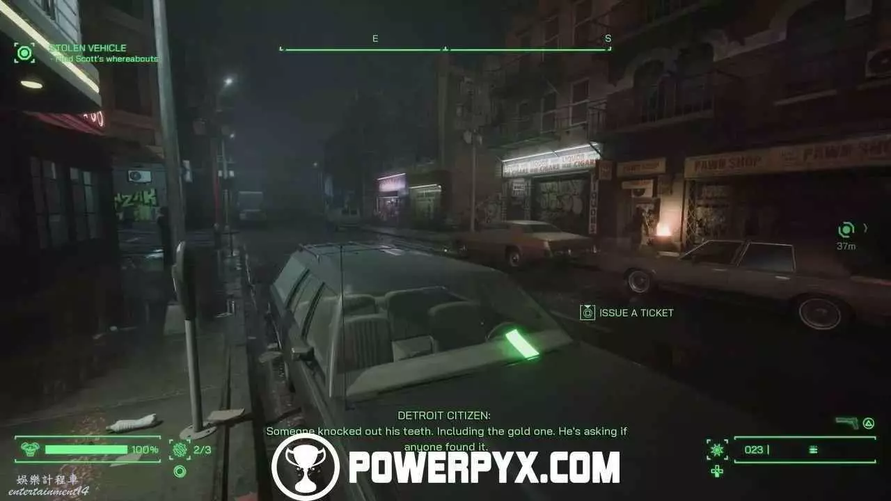 第一個解鎖獎盃的機會是在【主線任務2偶發事件】期間,過場動畫結束後,可以自由走動,先不要前往下一個主線目標位置,在街上四處逛一逛,按L2/LT掃描行人或停在路邊的汽車,2-3分鐘後,會觸發一個關於開具罰單的簡短教學,注意街邊的計費器,靠近會出現放大鏡標記。