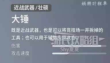 重裝角色,血量高,速度慢,但是可以輕易破壞牆體,超高的輸出也有很高的容錯率,新手推薦帶重裝技能+大錘。