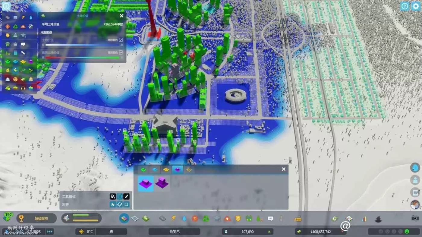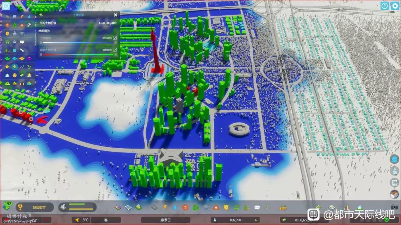 第二點:地價已經過高,無法放低、中密度建築。簡單點拆了重建,注意全程必須在暫停狀態下,新修的路是沒有地價的。