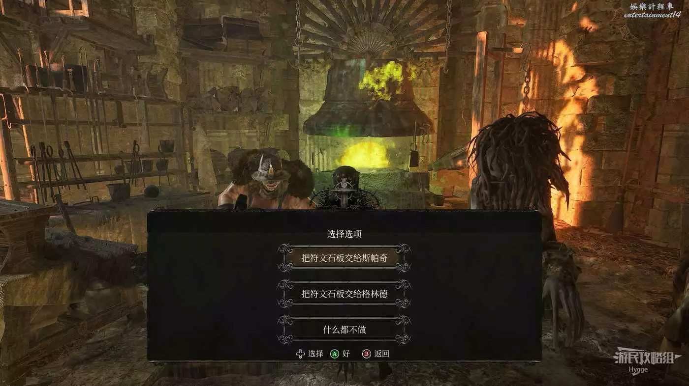 可以選擇將符文石板交給斯帕奇或者格林德。
