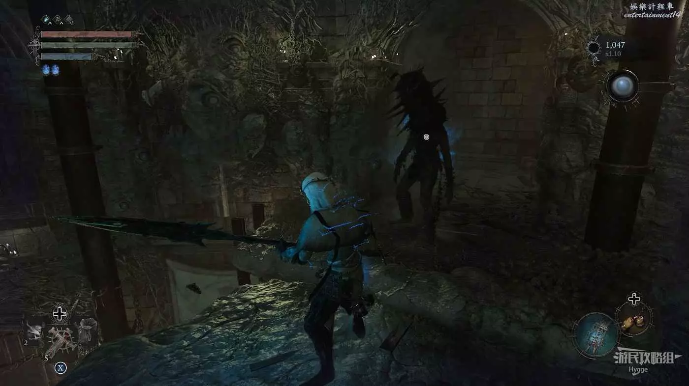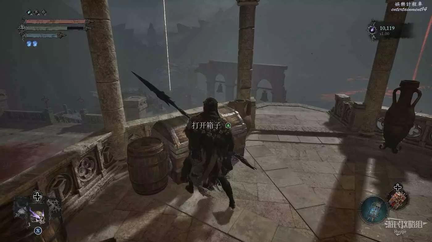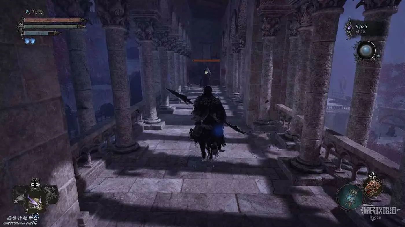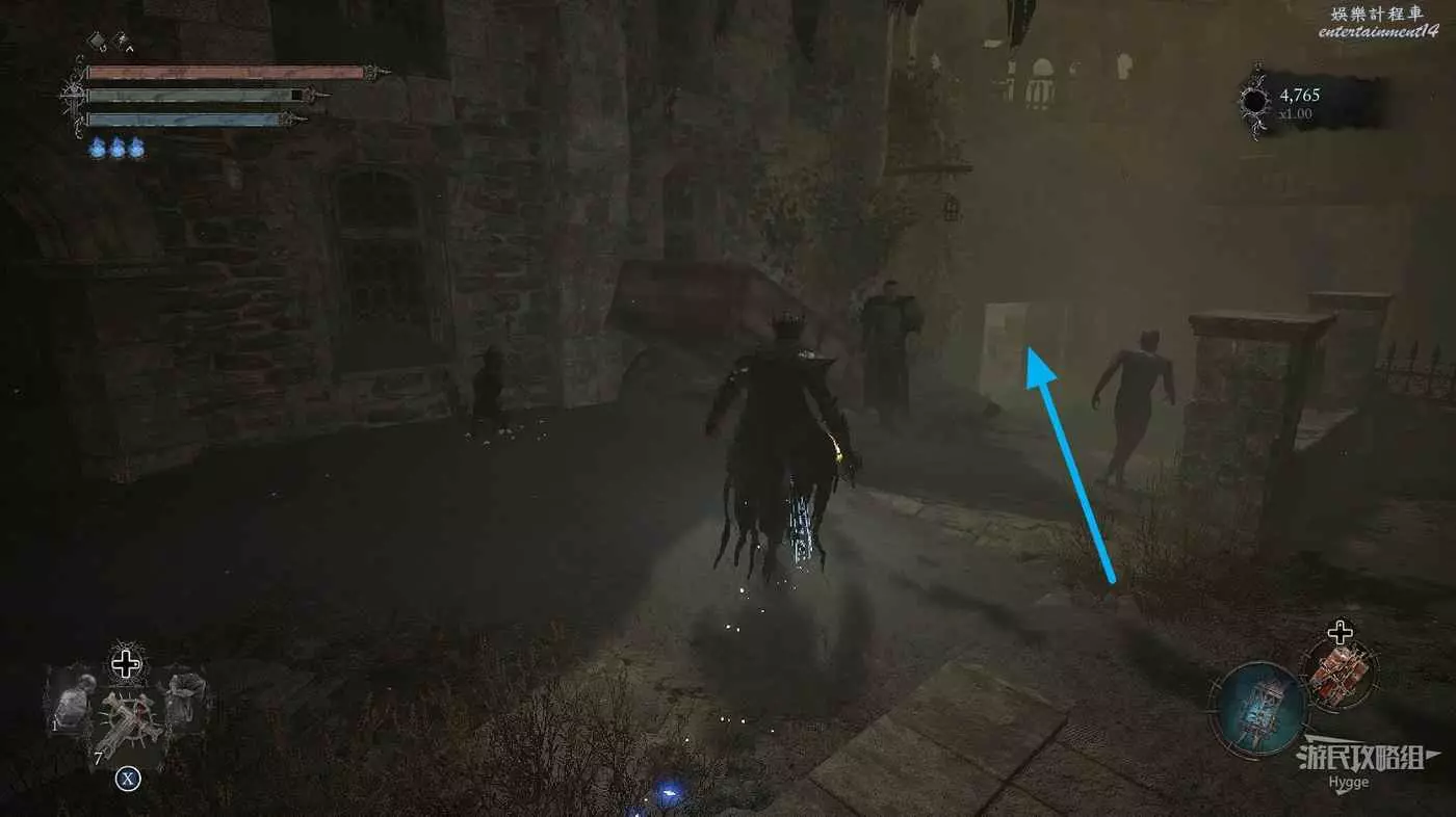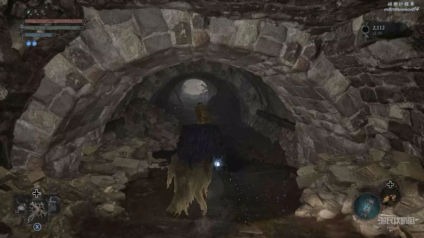 在平臺邊緣的屍體上拿到【布拉米斯城堡地圖】,隨後跳到下層的樓梯上進入城堡內堡。