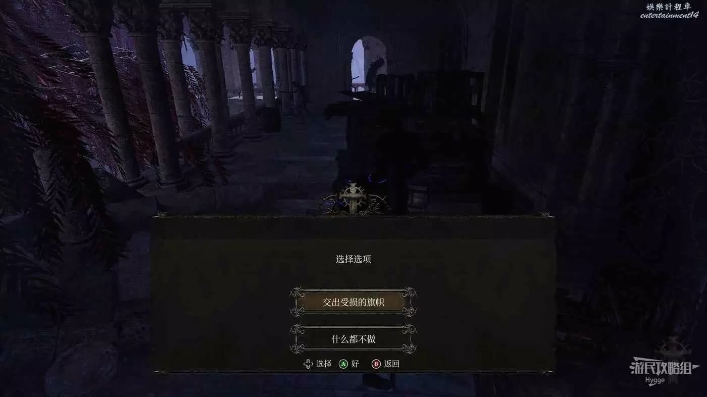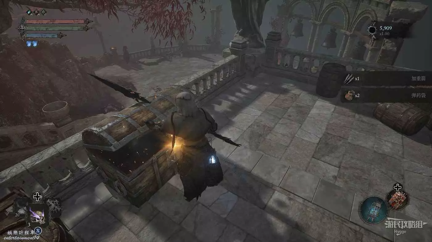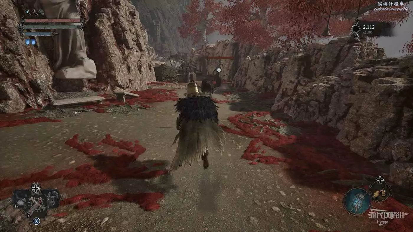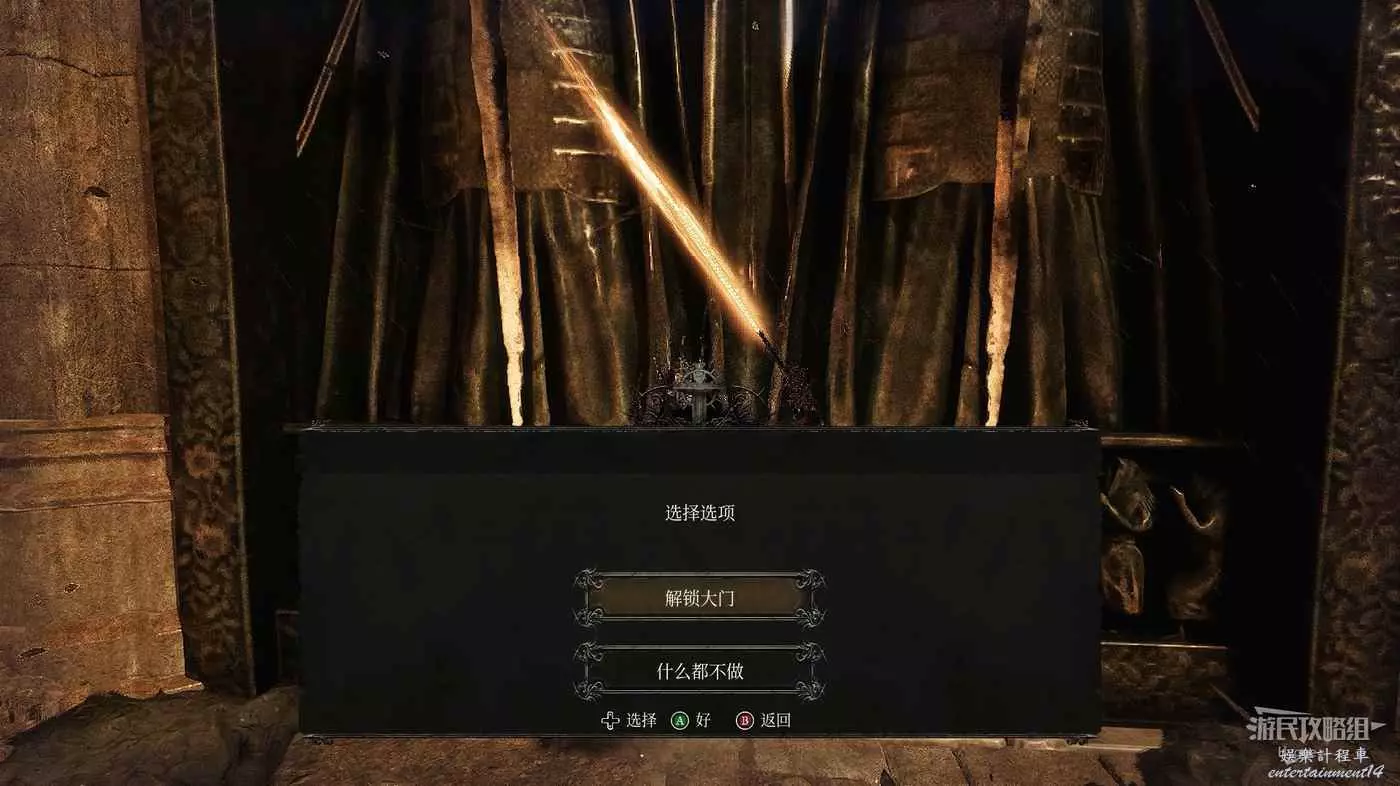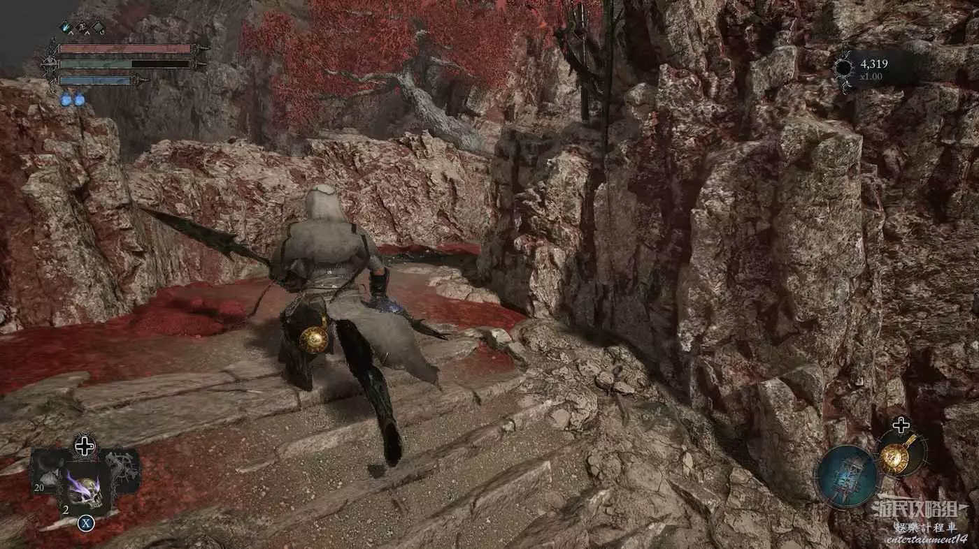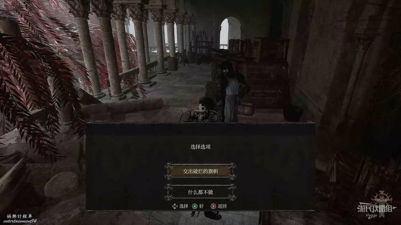 在平臺邊緣的屍體上拿到【布拉米斯城堡地圖】,隨後跳到下層的樓梯上進入城堡內堡。