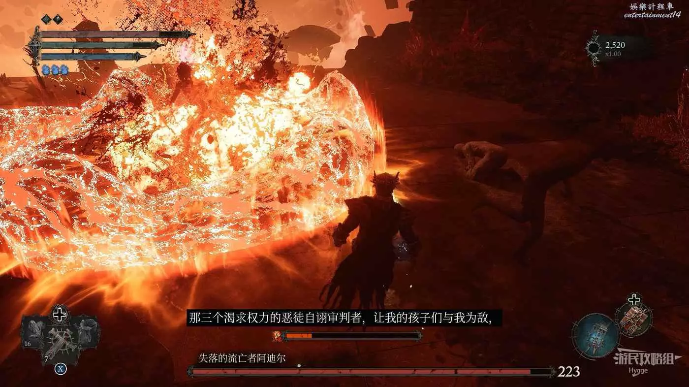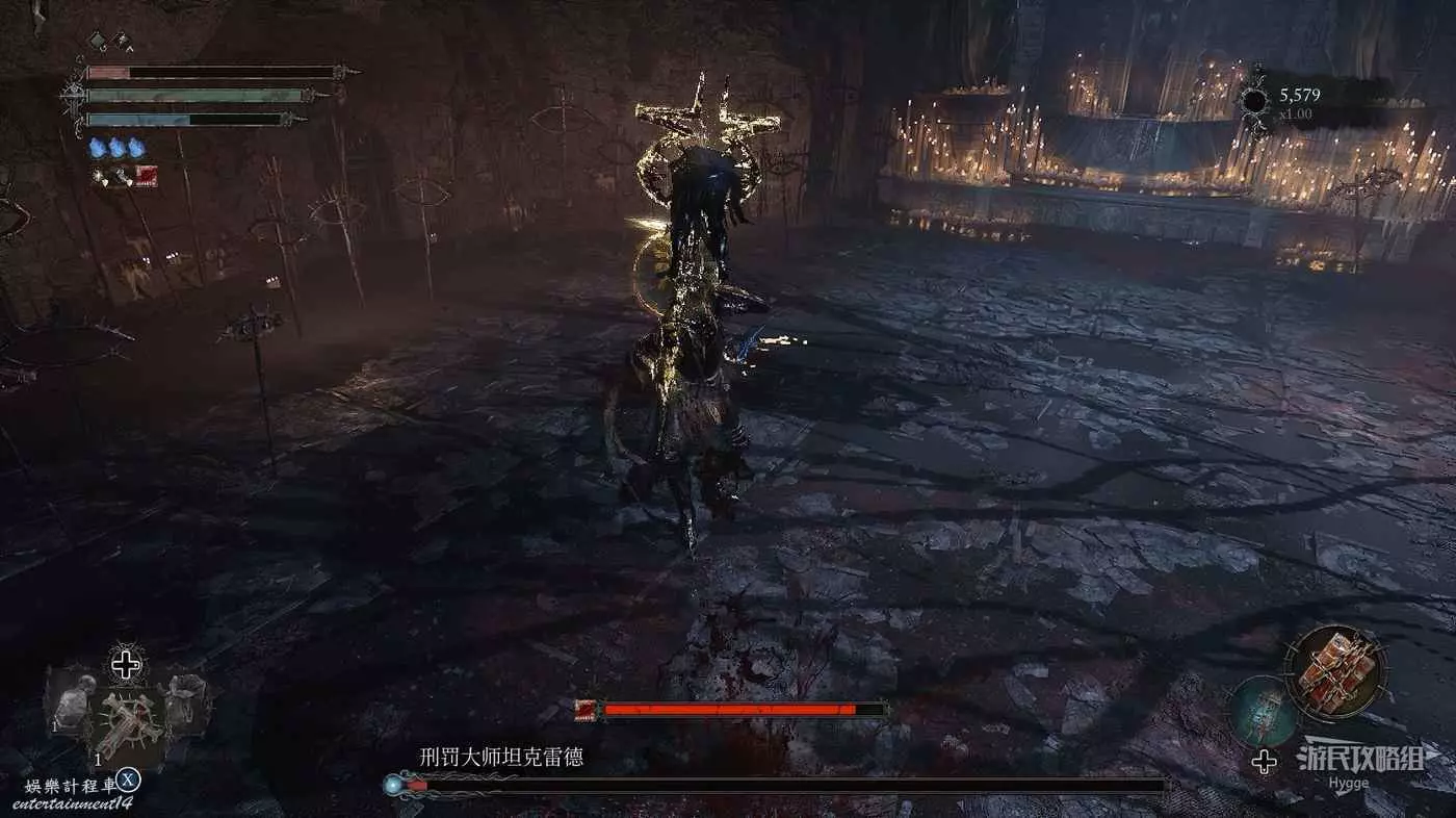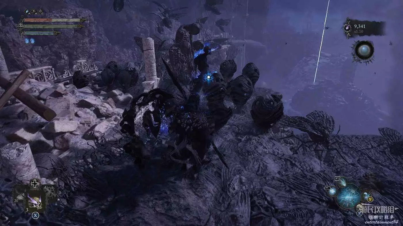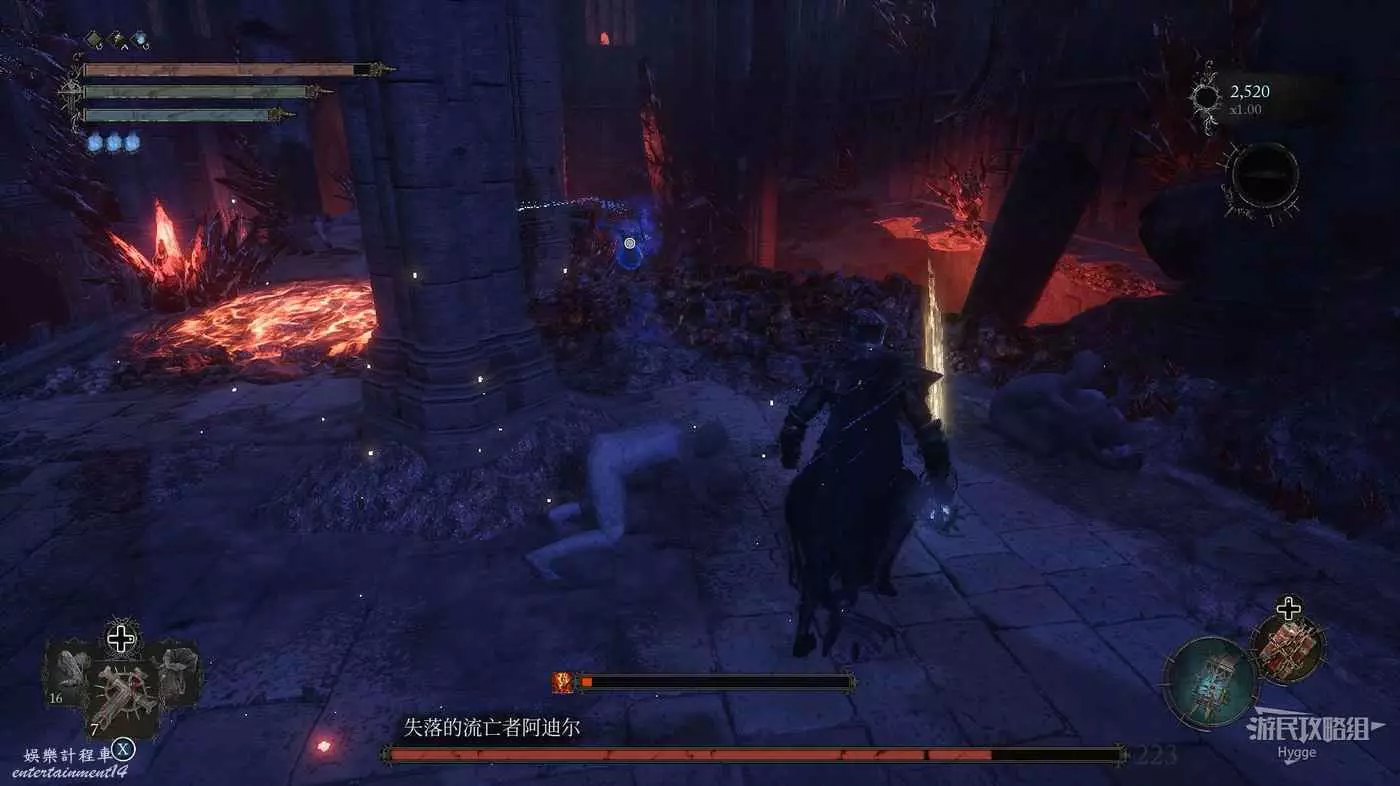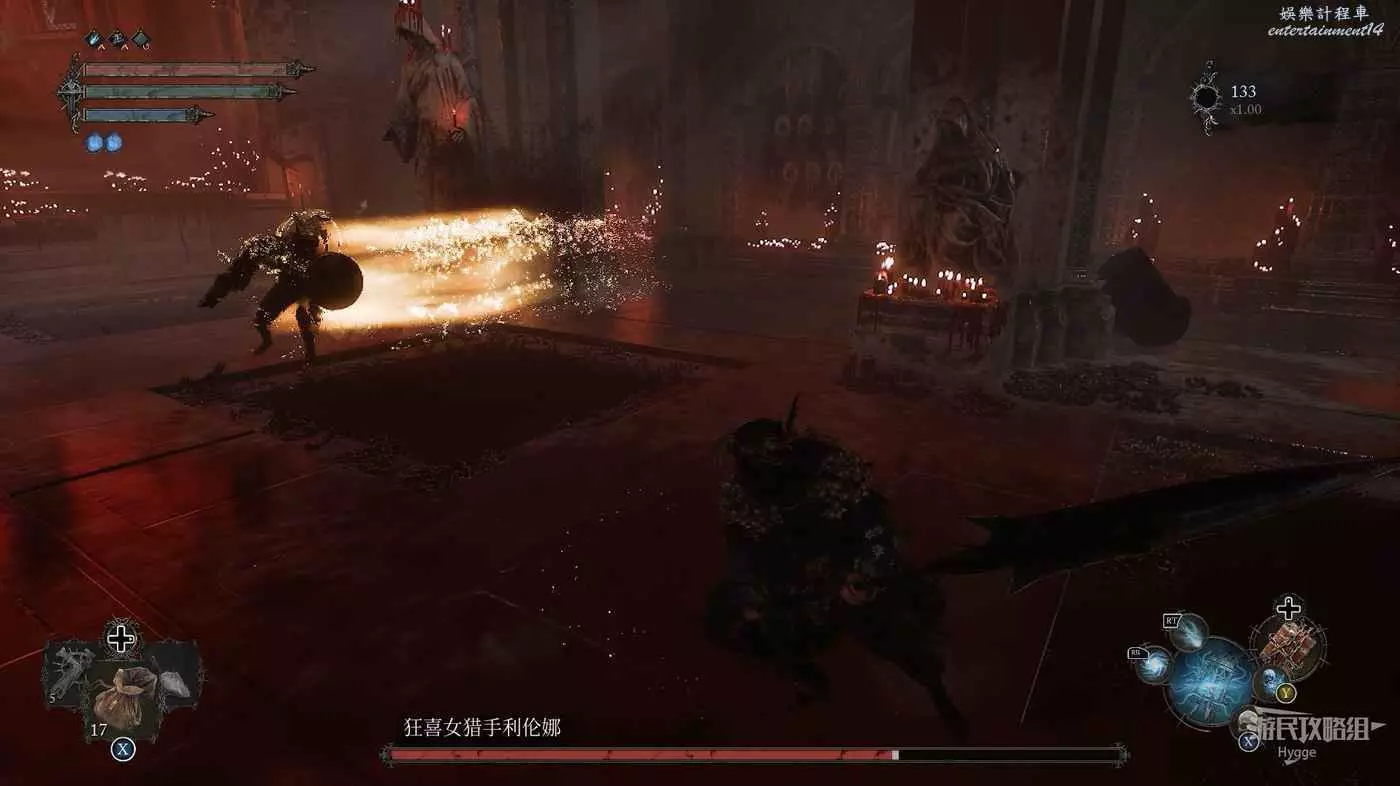 沿著平臺繼續向上,進入BOSS戰。此處的BOSS為【破碎之君王】,在剛剛進入戰鬥時破碎君王會背對我們,此時可以先上去偷幾刀。