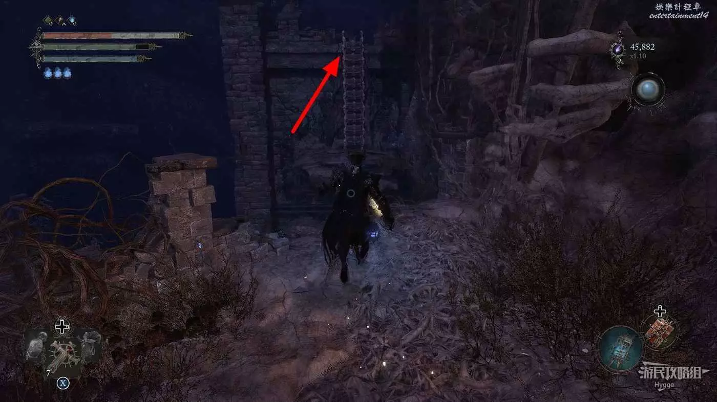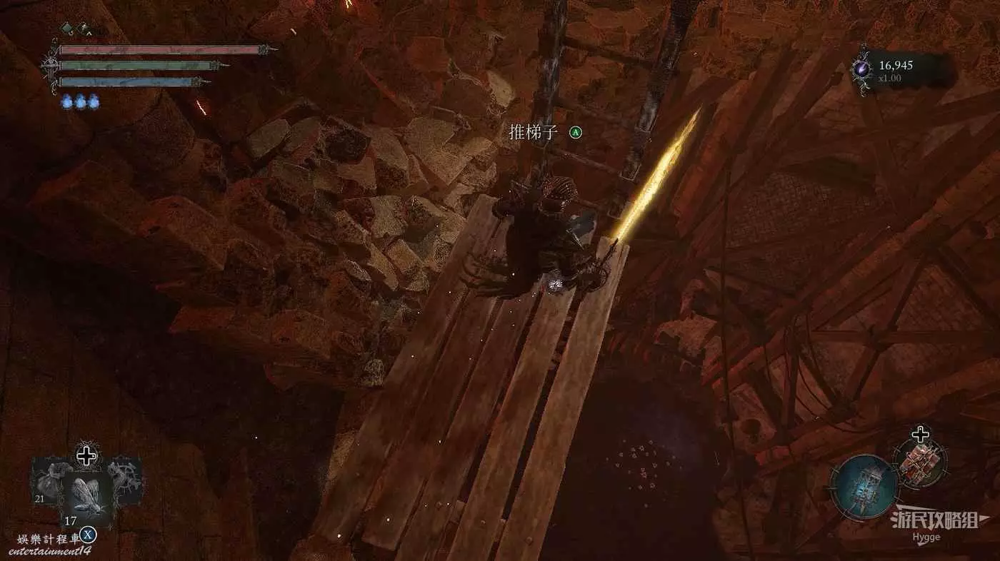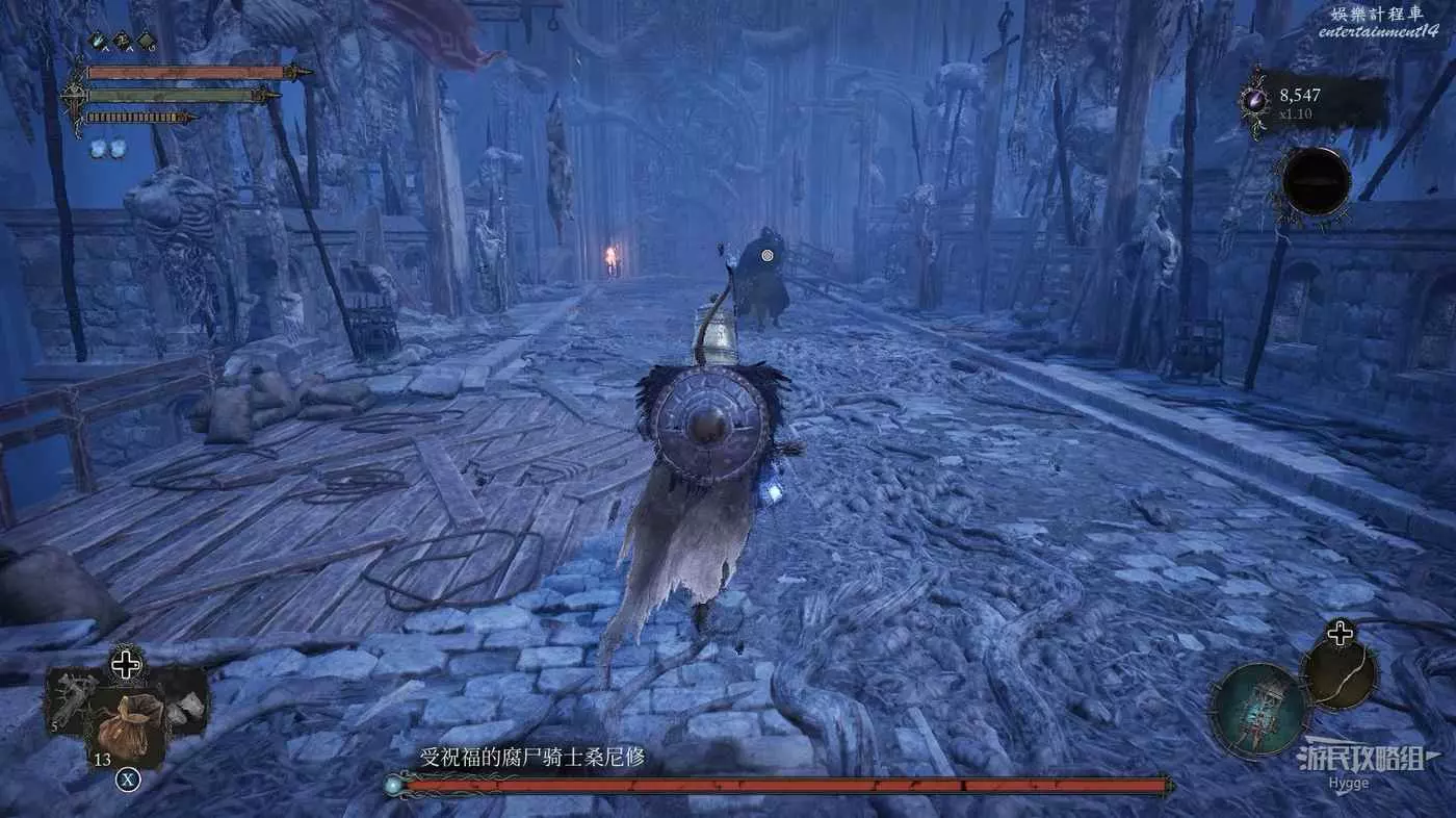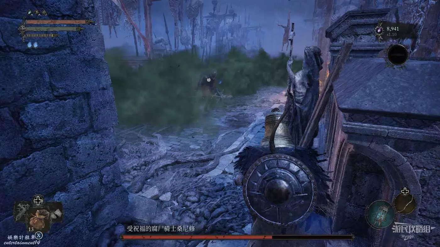 平臺中間又有一名腐屍騎士,建議趕緊從右側的梯子往下走。