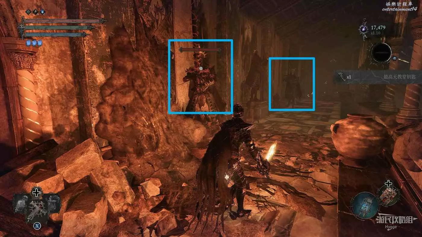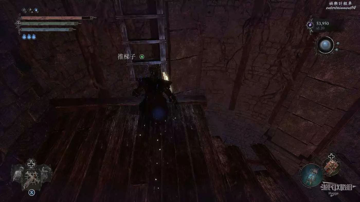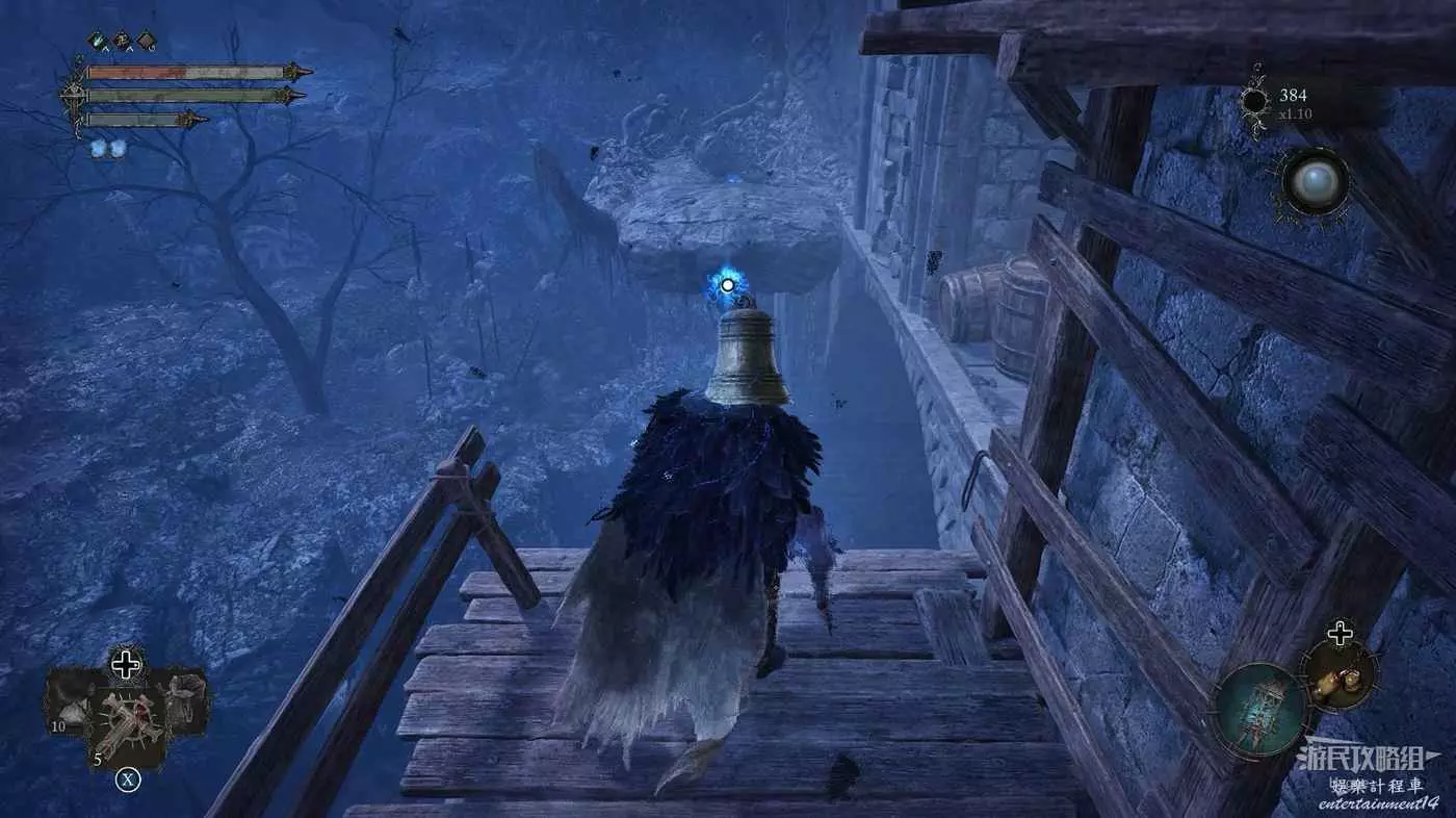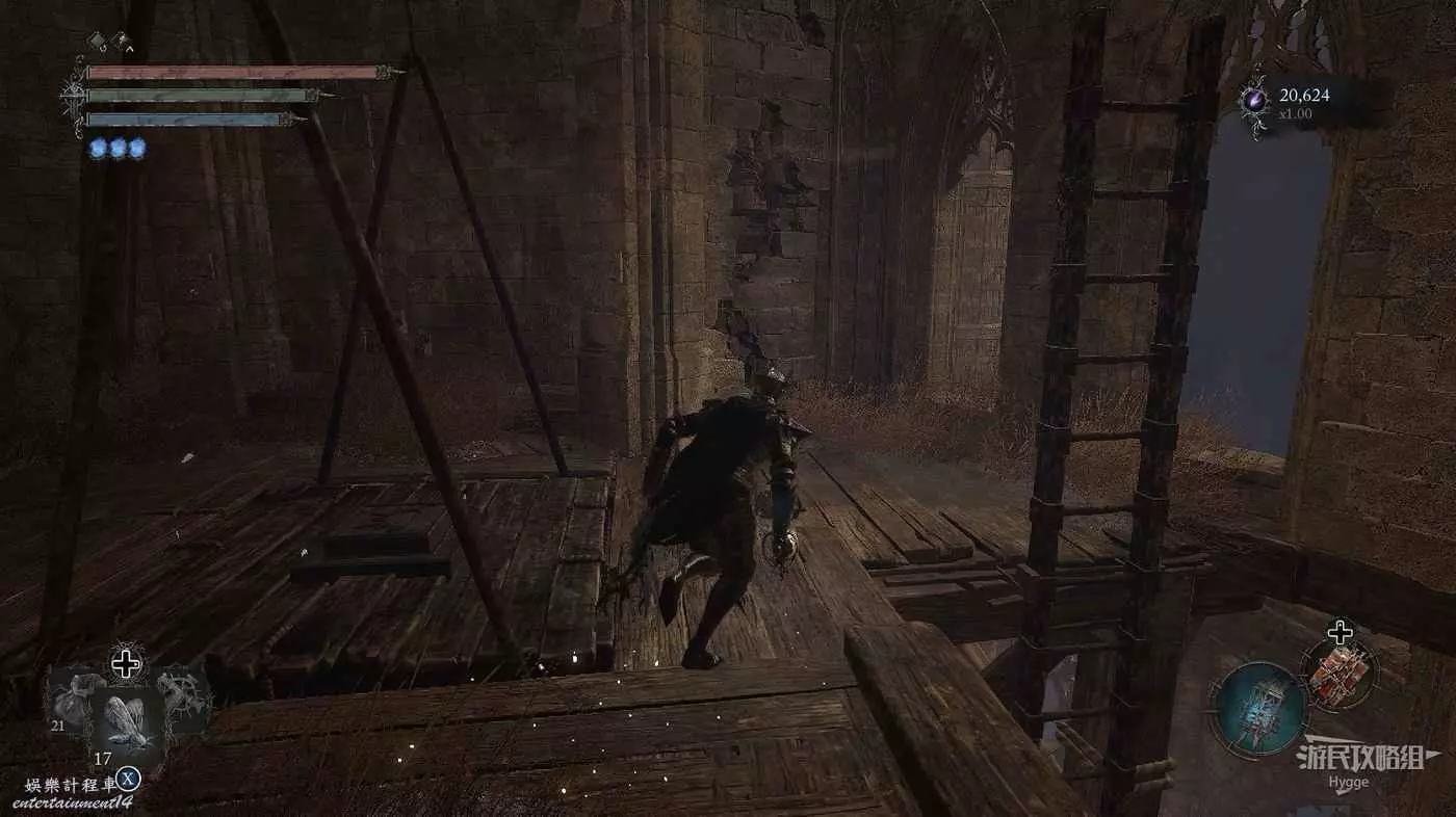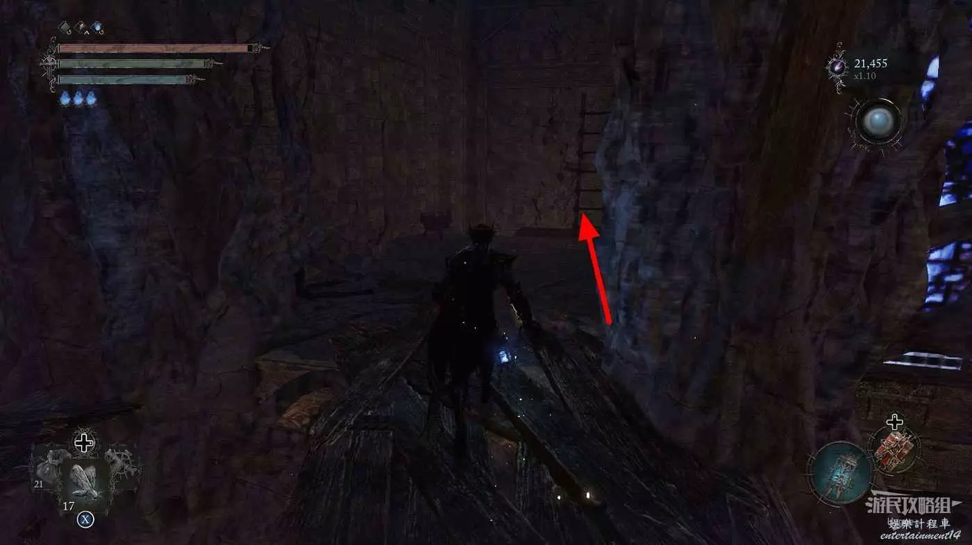 平臺中間又有一名腐屍騎士,建議趕緊從右側的梯子往下走。