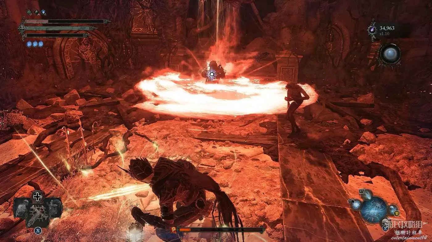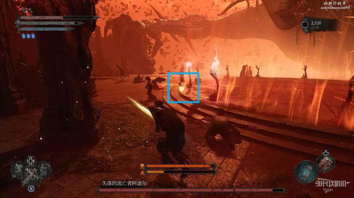 來到中間區域,擊殺先知後煉獄結晶消失,擊殺下方的火焰劍士。
