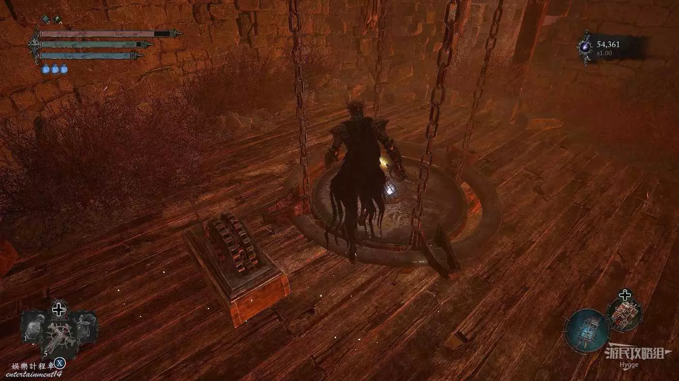 拉動房間中的拉杆升起大門左側的籠子,通過籠子下的梯子向下。
