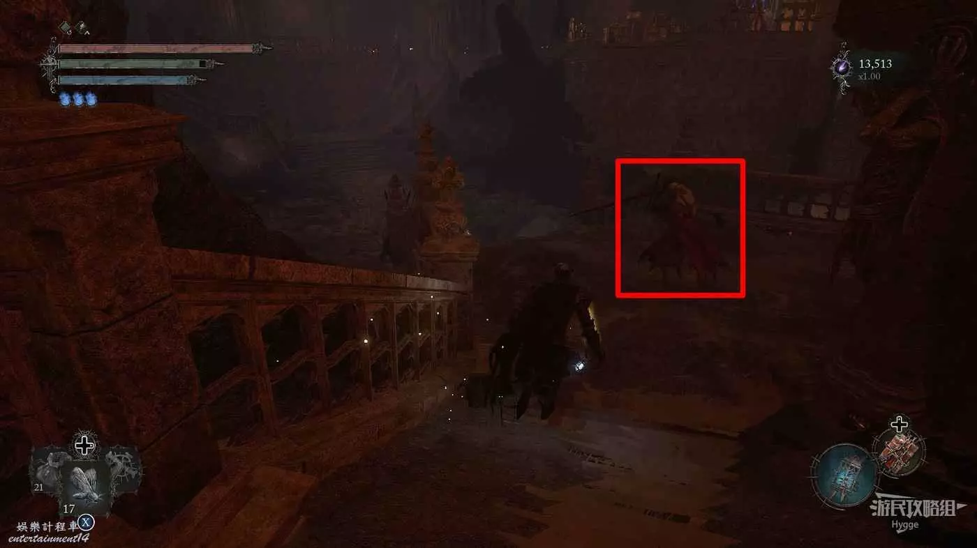 回到剛剛的岔路口沿著左前方的道路前進,下層的平臺右側有一名破壞者。