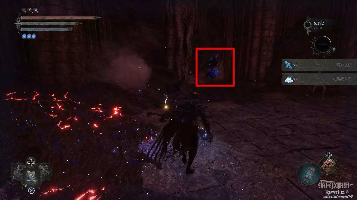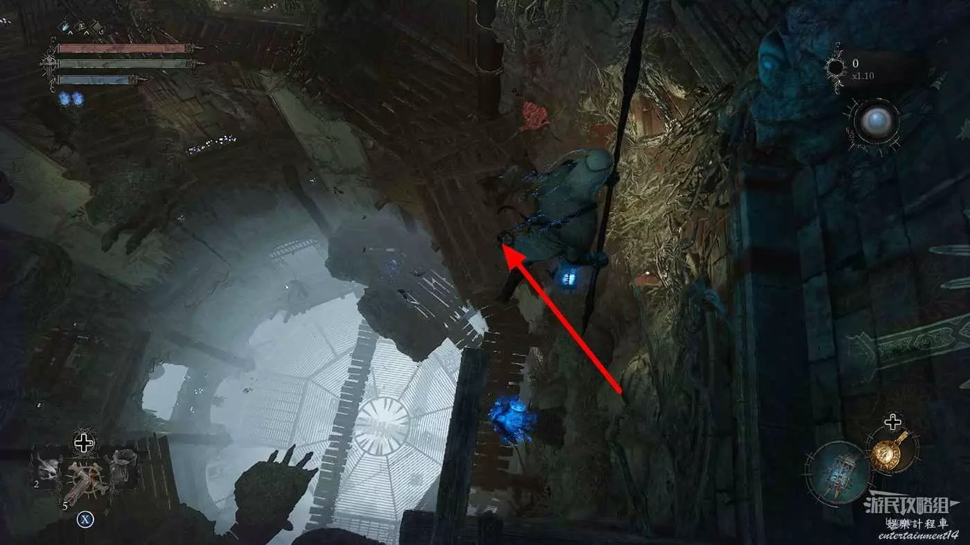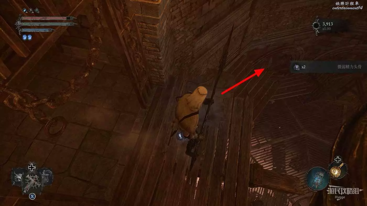 回到梯子旁使用攝魂拽動平臺打開道路,對面的房間中有一些強化素材。