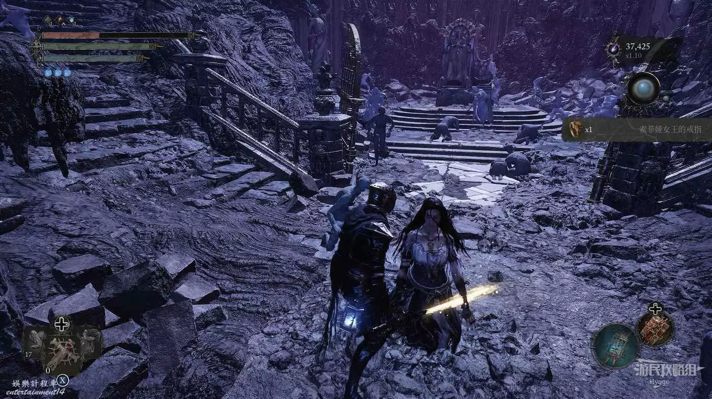 然後回到城堡遺骸處,在之前索菲婭停留的位置可以拿到索菲婭的武器和裝備。