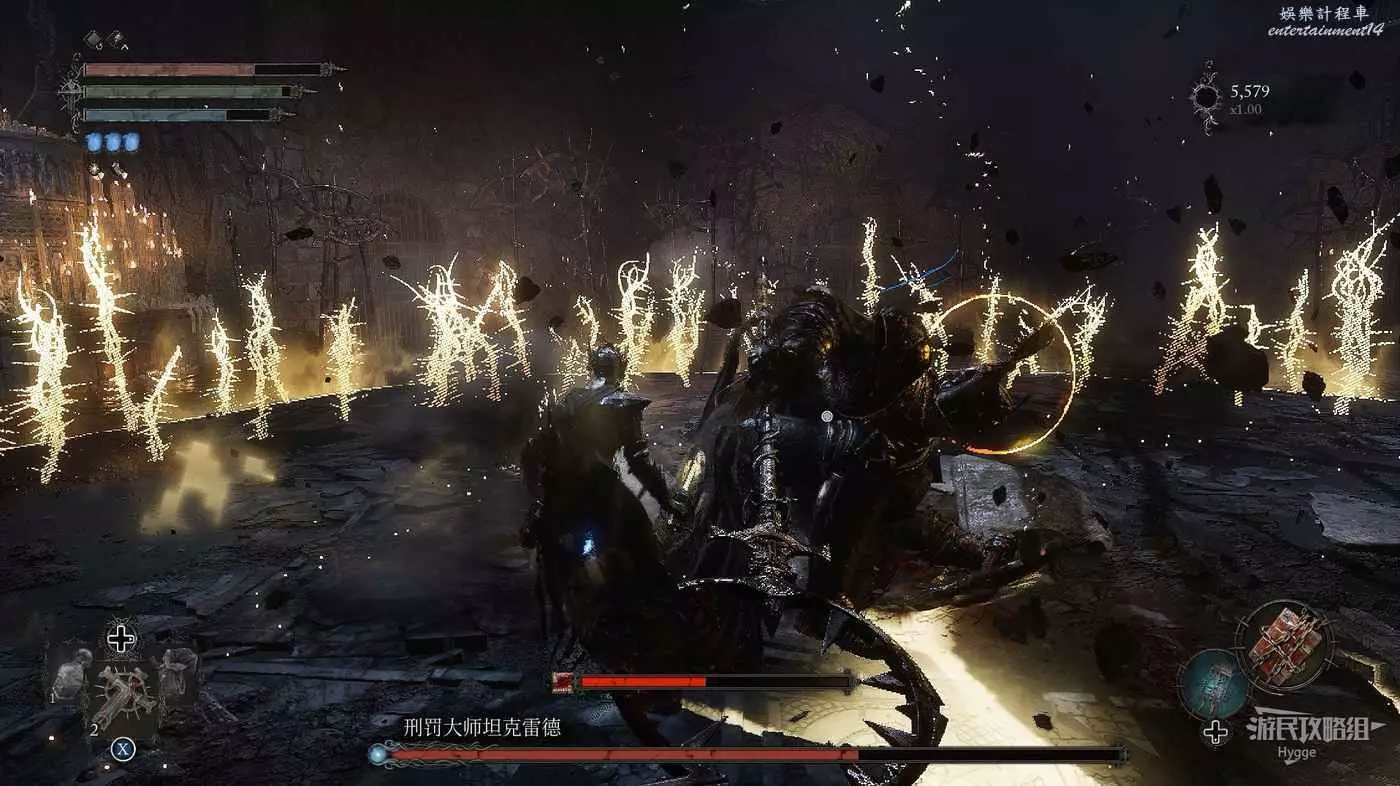 坦克雷德會突然向前以極快的速度戳刺,將我們穿在權杖上並造成大量傷害。