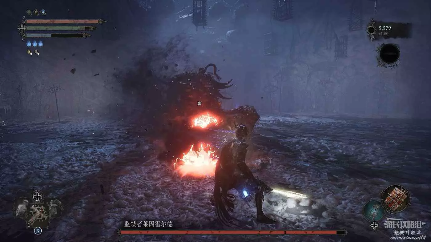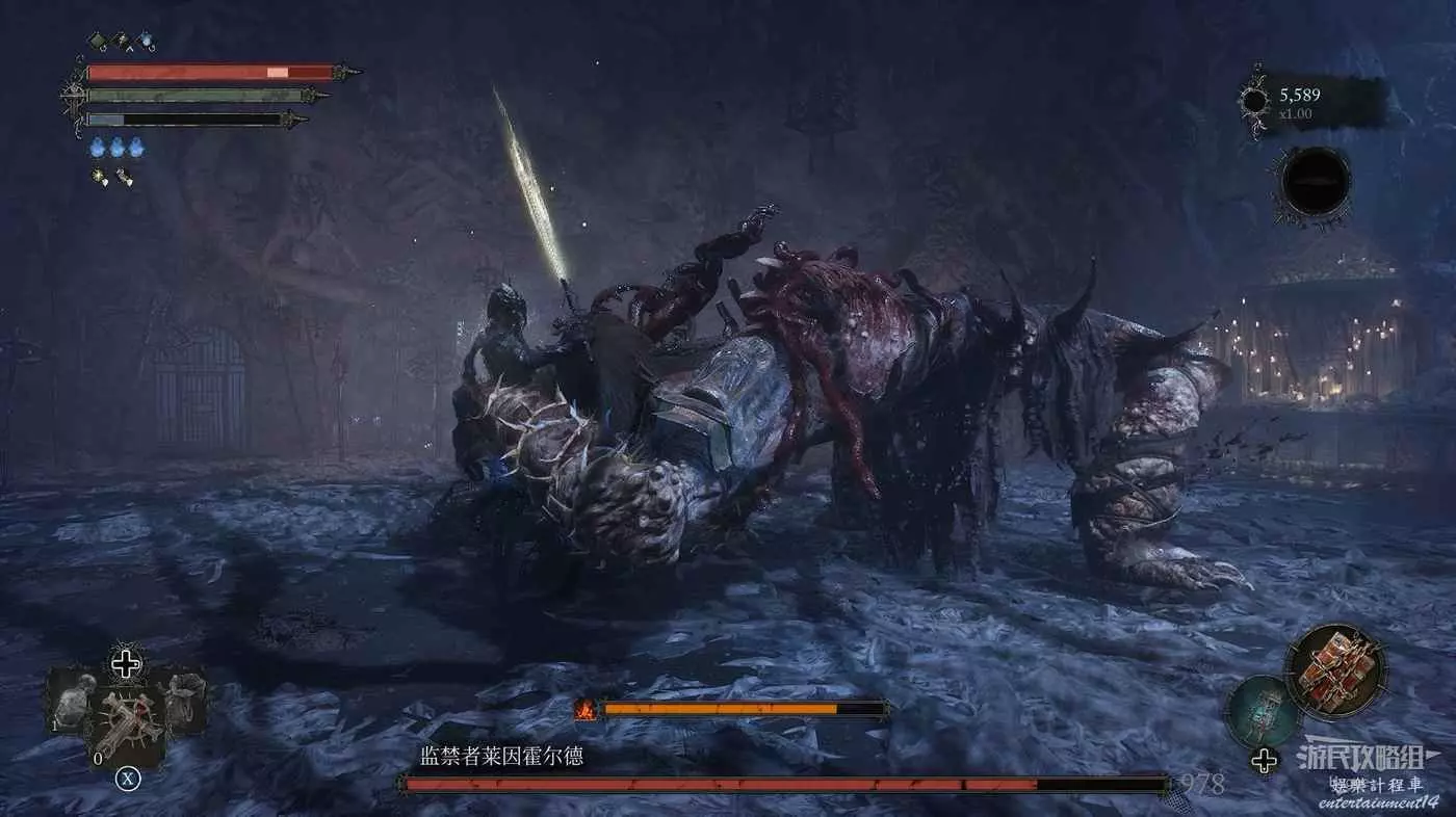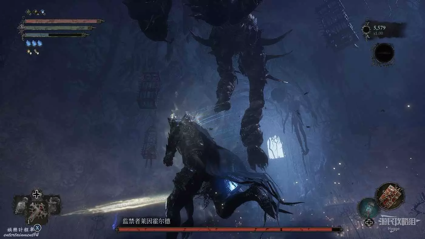 擊殺坦克雷德後進入二階段,BOSS變身成為【監禁者萊因霍爾德】。使用四肢進行攻擊,最常用的是倒立後用雙腳砸擊地面。