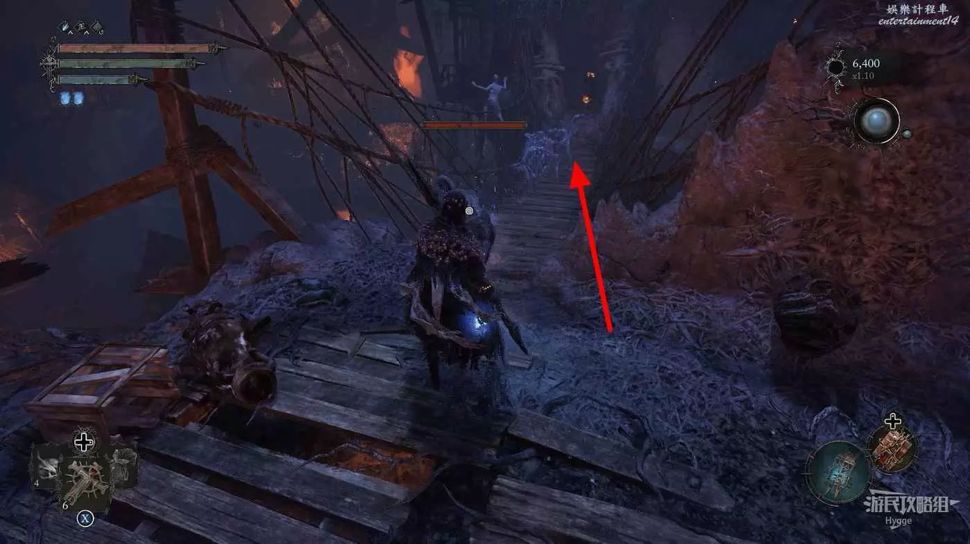 在道路盡頭處拿到【不可靠的日誌條目】就是啟示深淵的地圖,然後通過吊橋向左走。