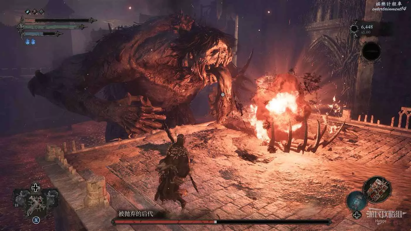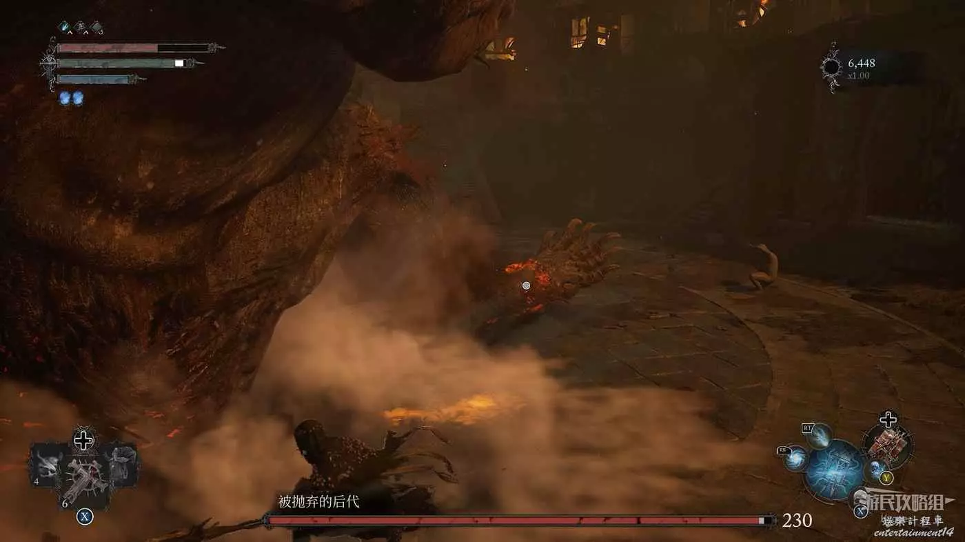 此處的BOSS為【被拋棄的後代】,該敵人在第一階段會使用雙手攻擊其身邊的區域,我們需要把握時機給BOSS修腳。
