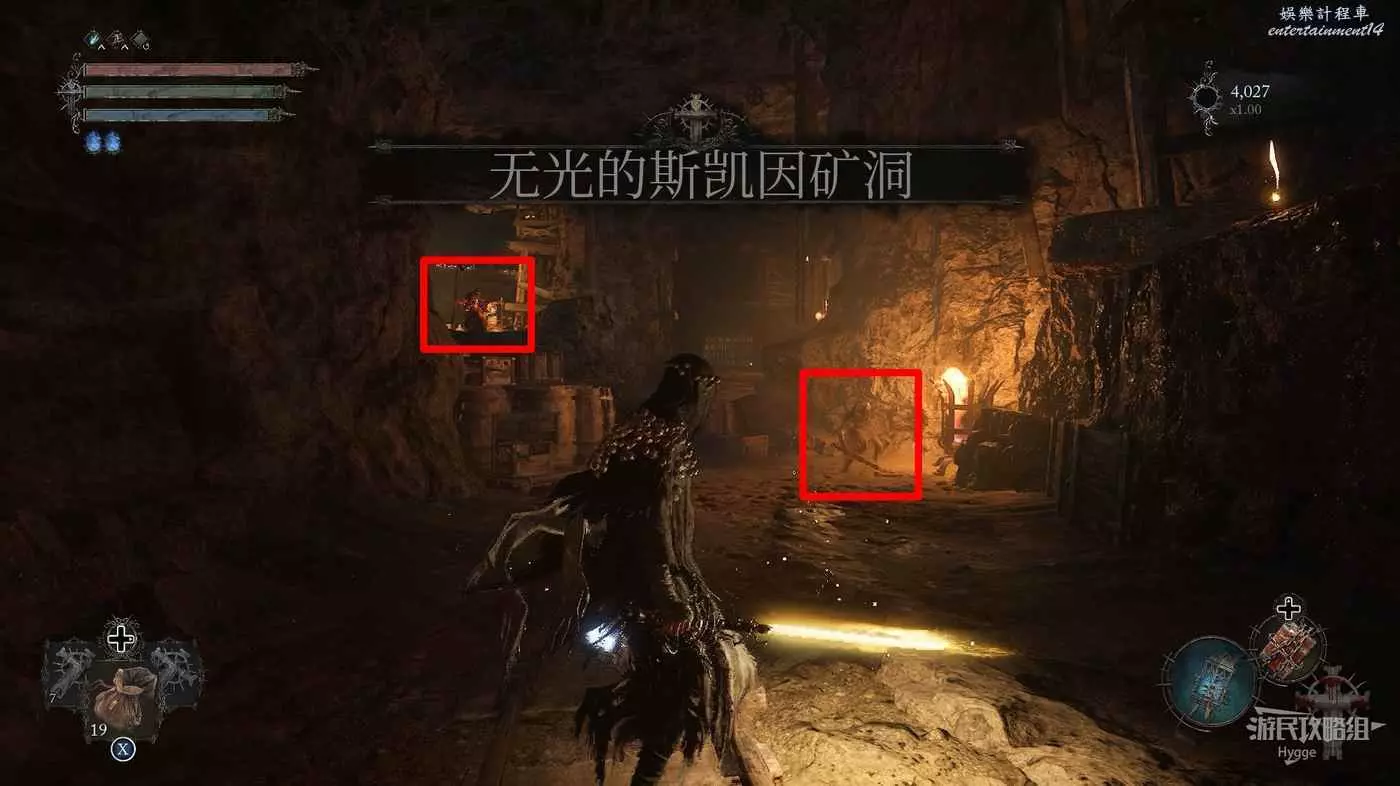 在前方爬下梯子擊殺後方的礦工可以拿到一些強化素材。