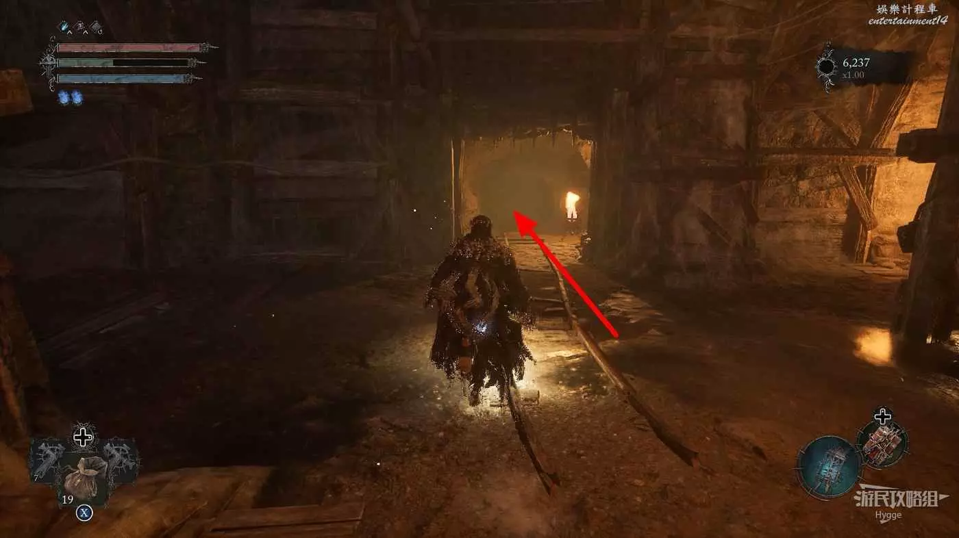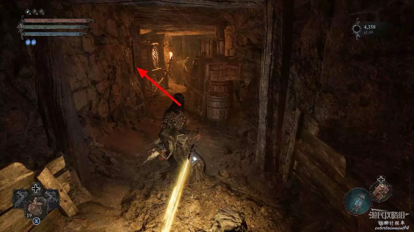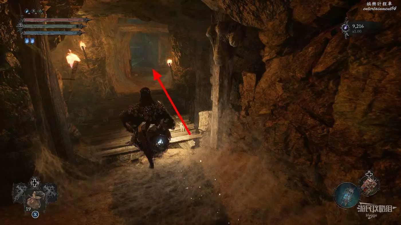 在房間中的祭壇內可以拿到彈藥【枯萎箭】,然後向左繼續深入礦洞。