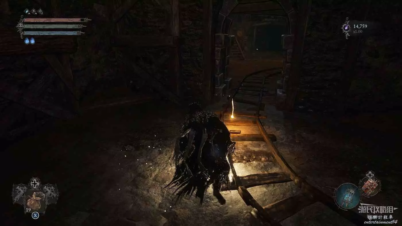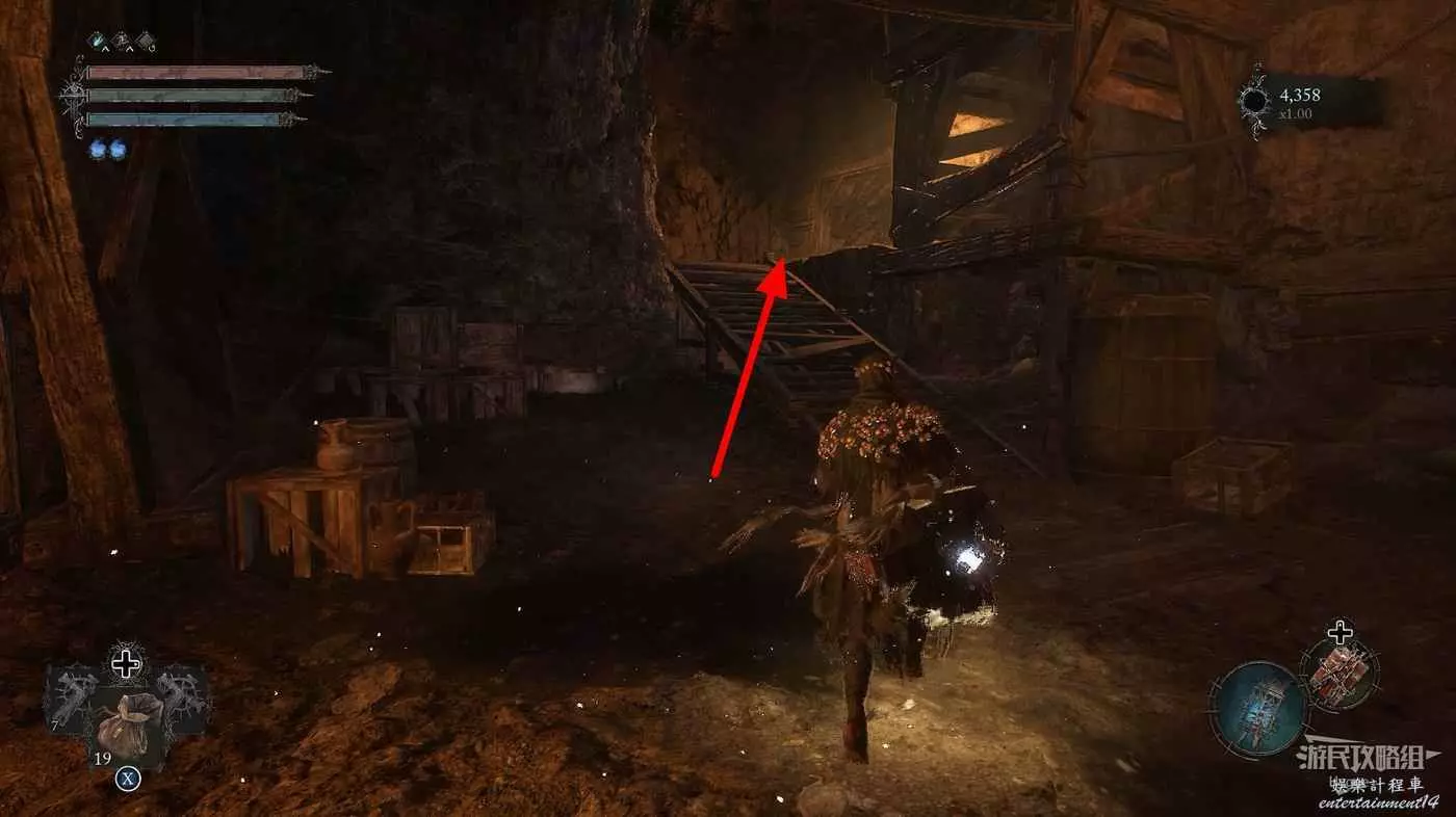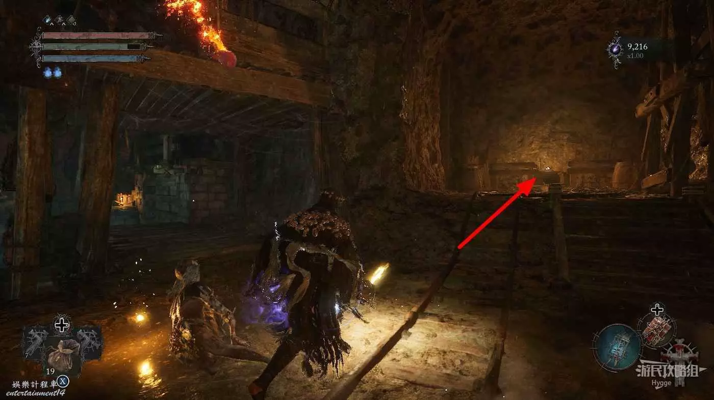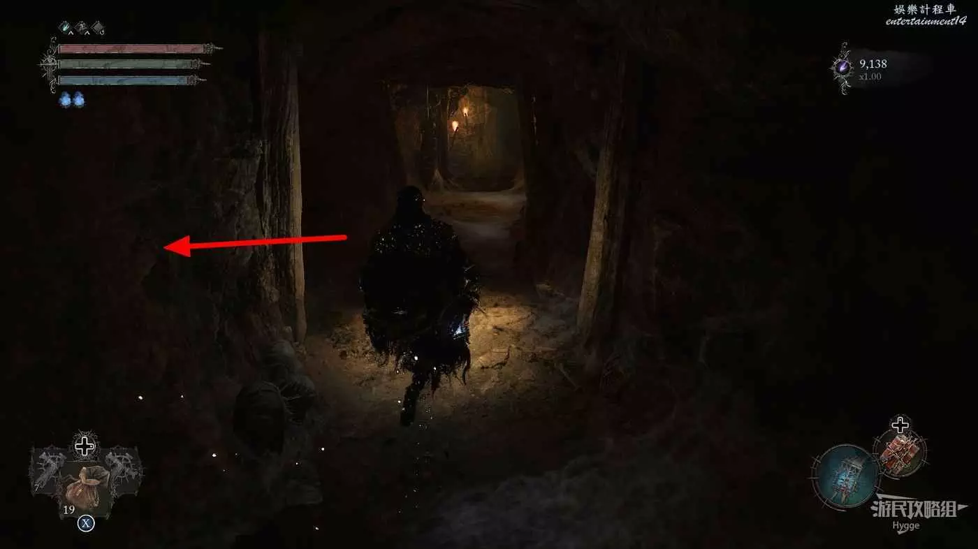 在房間中的祭壇內可以拿到彈藥【枯萎箭】,然後向左繼續深入礦洞。