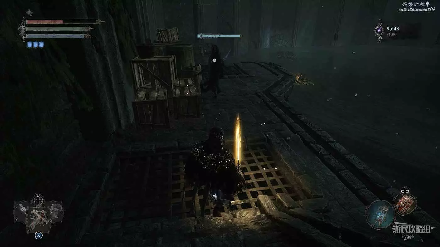 在前方跳到下層,消滅敵人後在角落處點燃一個篝火,然後通過雕像離開影界。