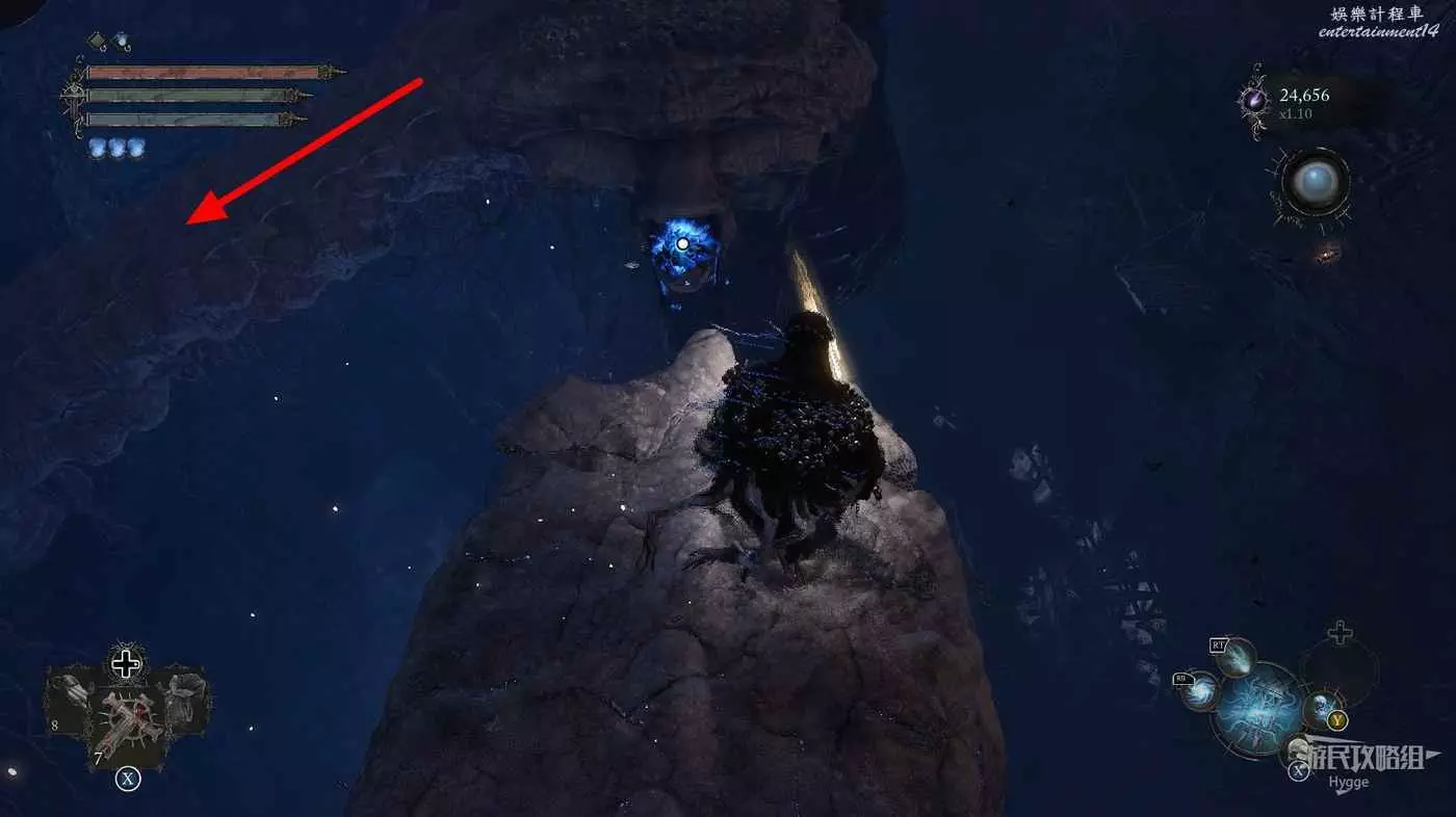 回到之前的岔路口,利用攝魂牽引移動平臺到達對岸。如果狀態不好可以先在幼苗處休息一下。