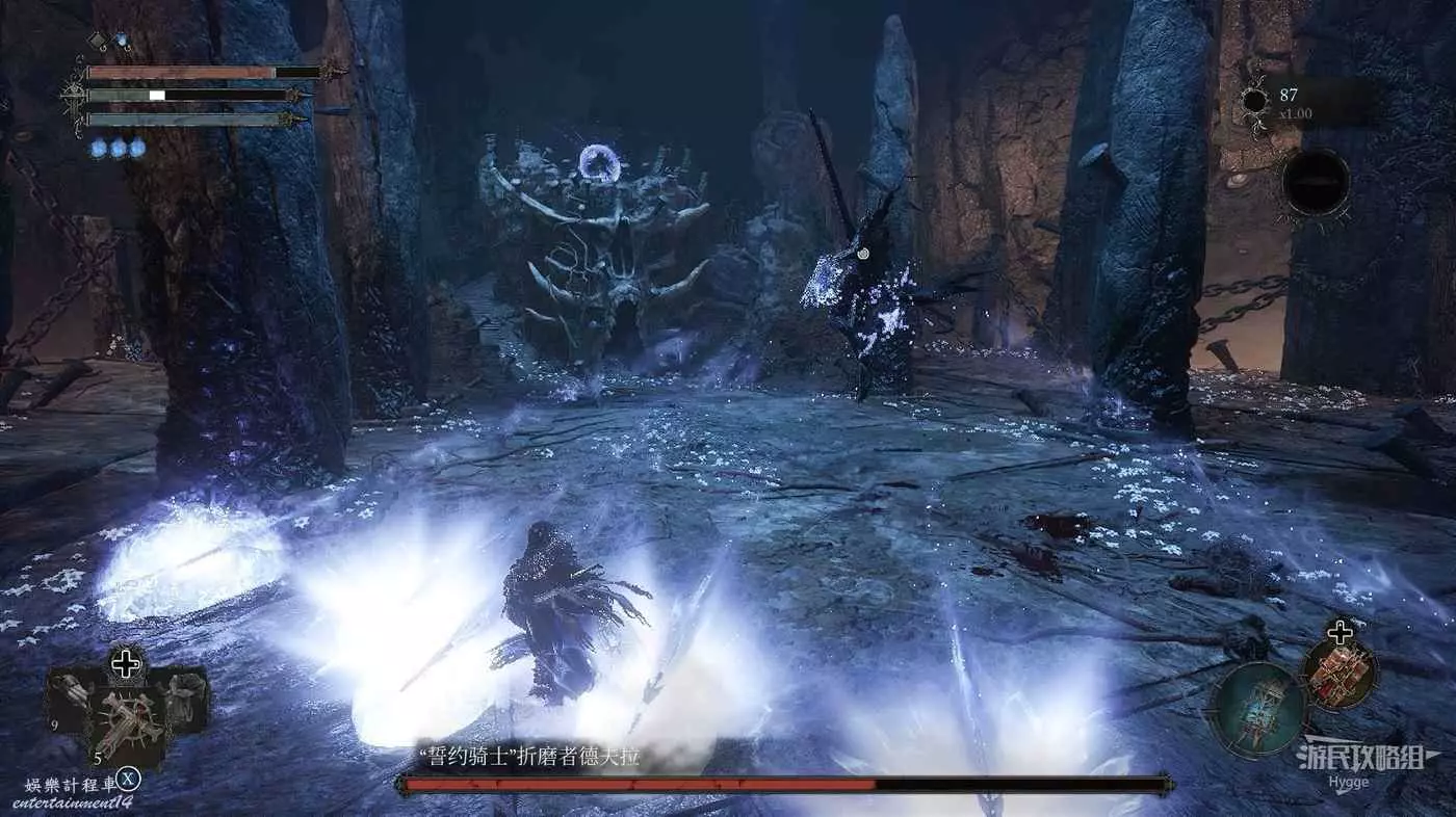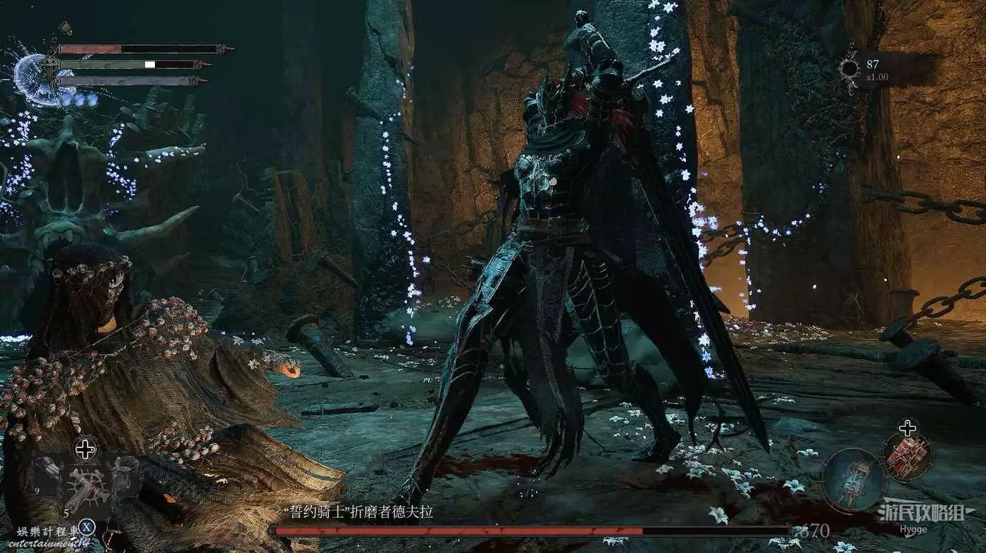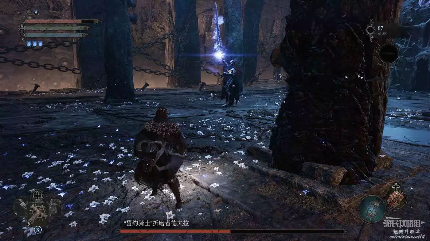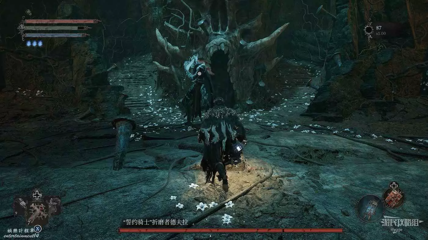 此處BOSS為【“誓約騎士”折磨者德夫拉】,該BOSS使用長劍和手弩進行戰鬥,共有兩個階段。