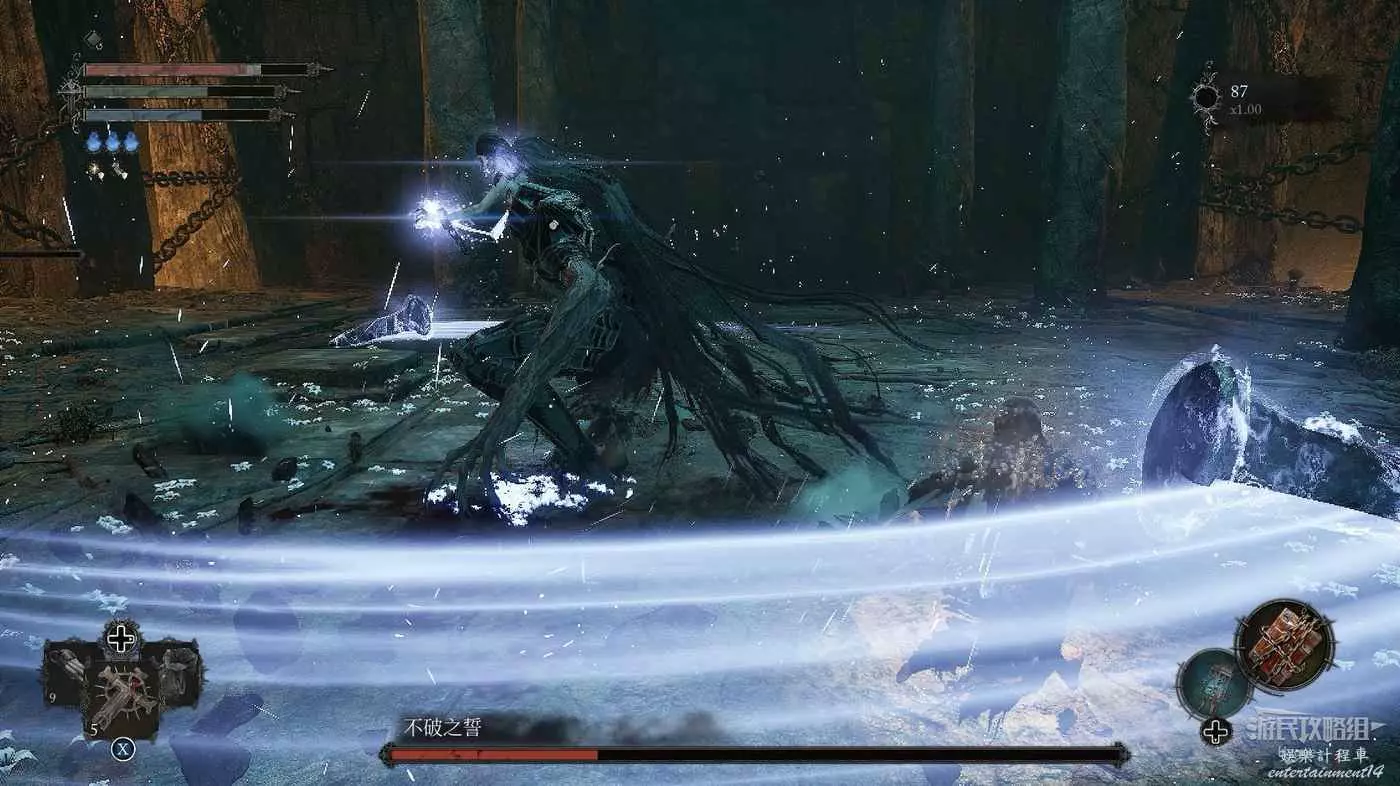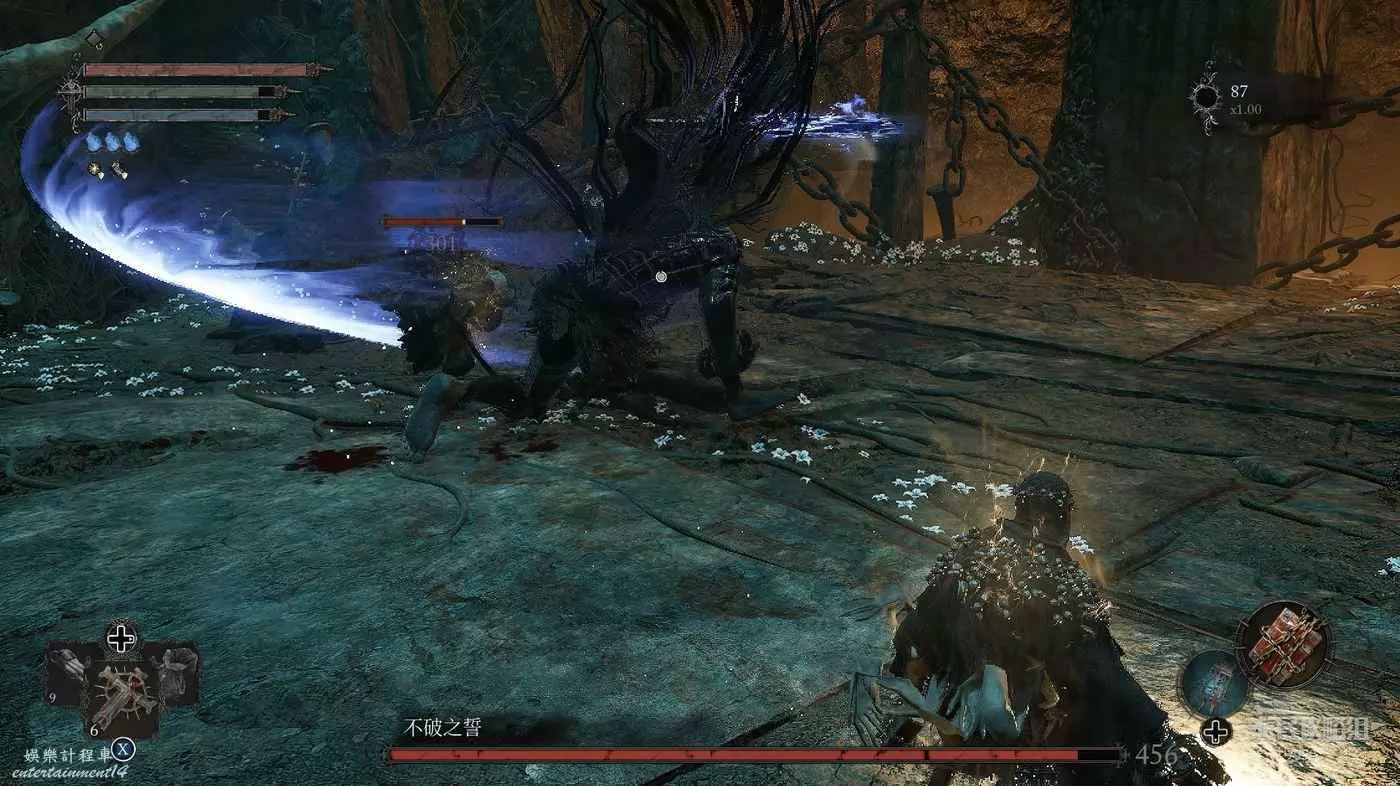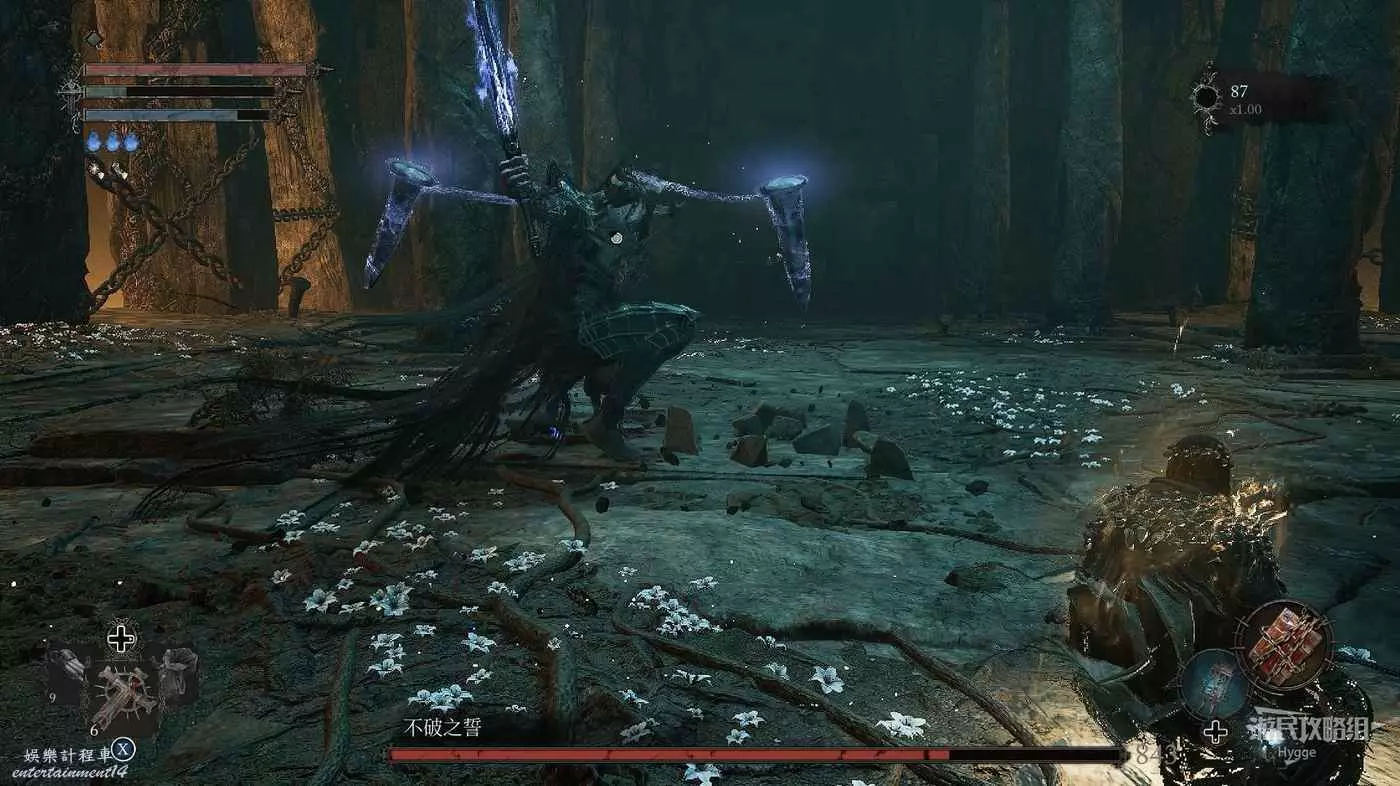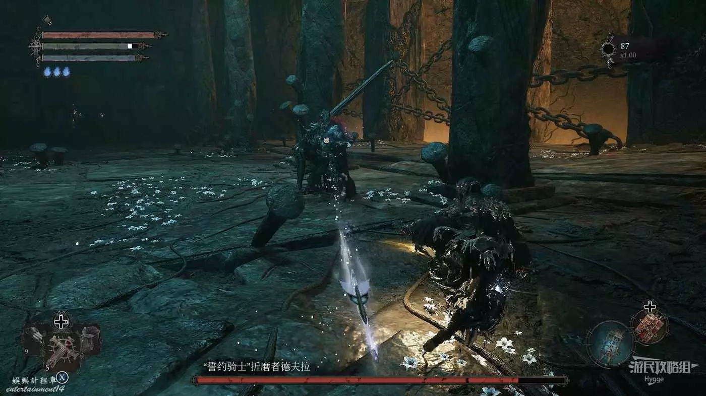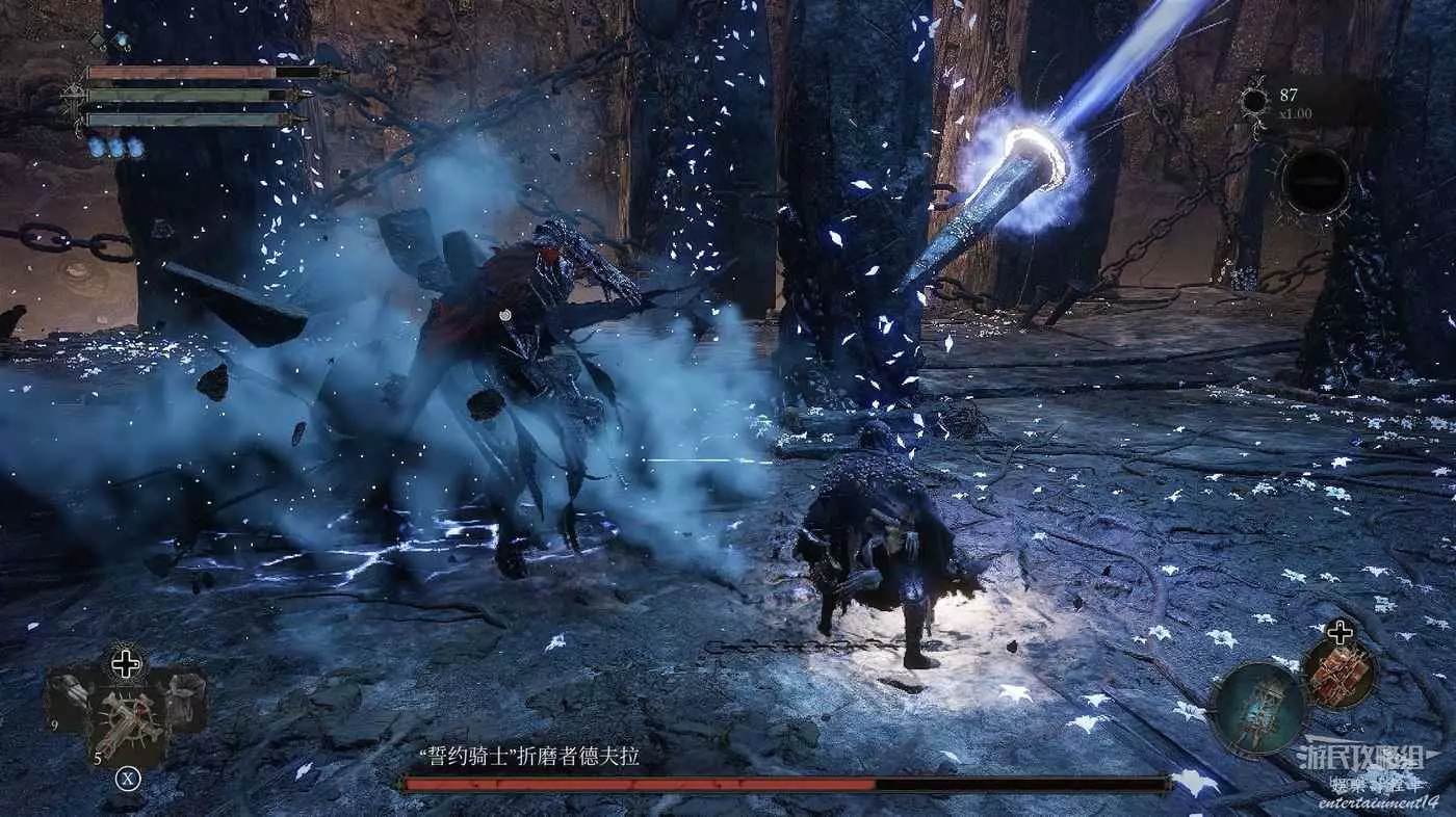 此處BOSS為【“誓約騎士”折磨者德夫拉】,該BOSS使用長劍和手弩進行戰鬥,共有兩個階段。