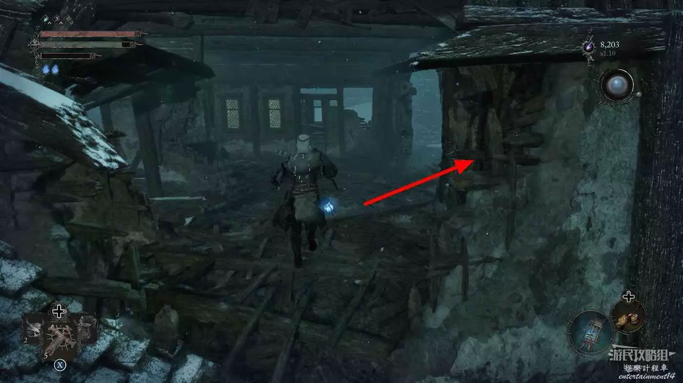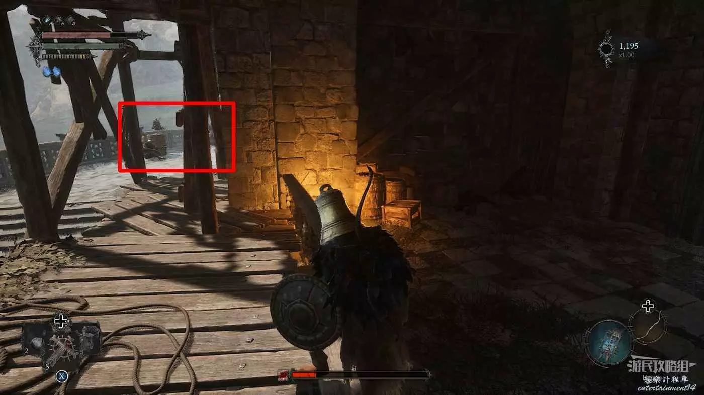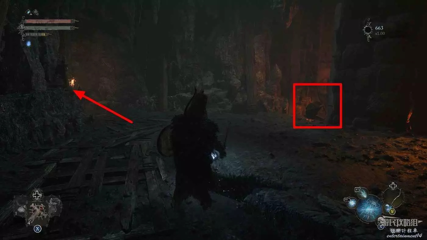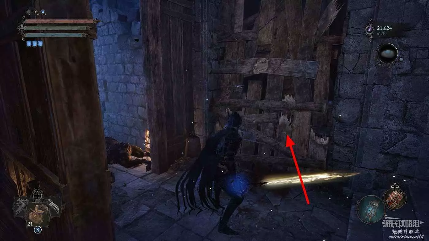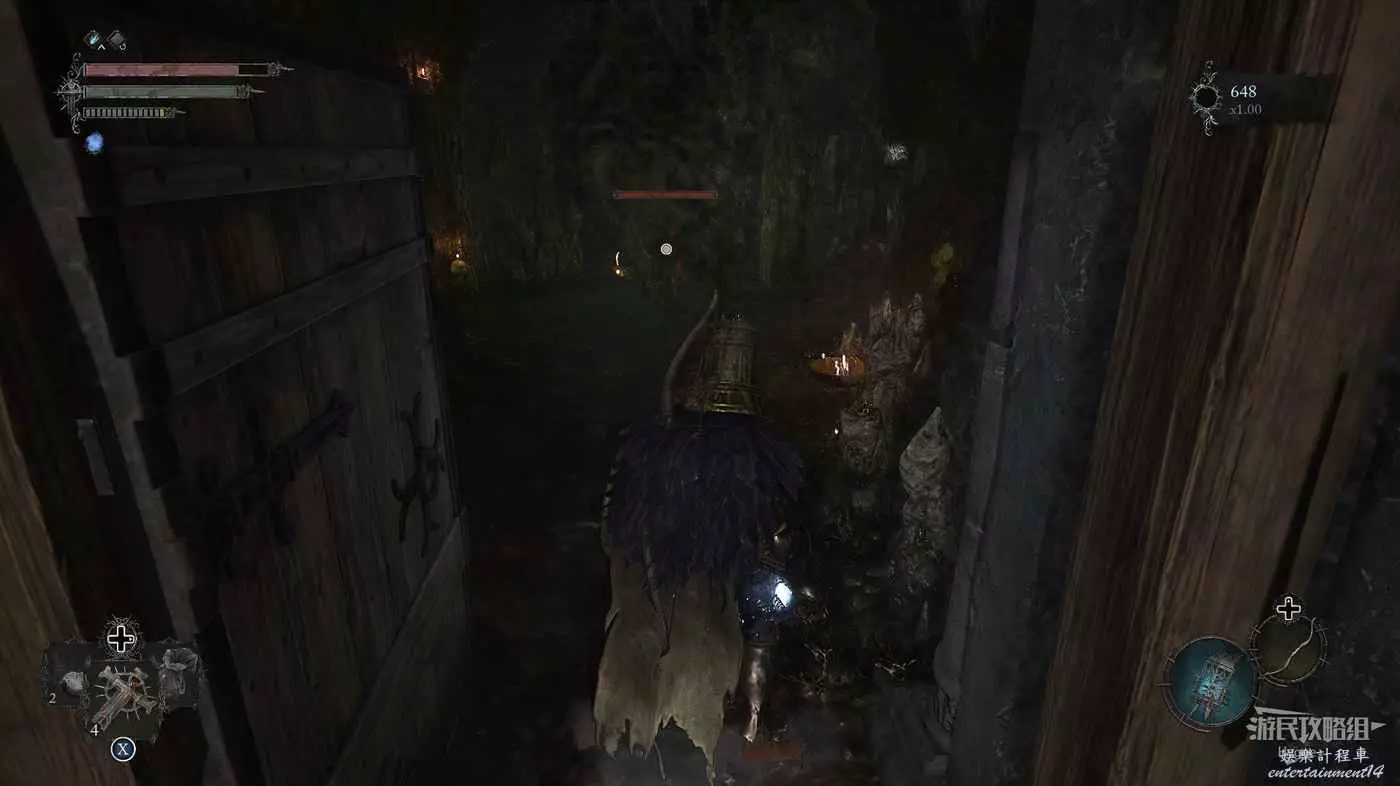 打破木板後通過提燈穿過柵欄,進入柵欄後的房間可以拿到一些武器強化素材。