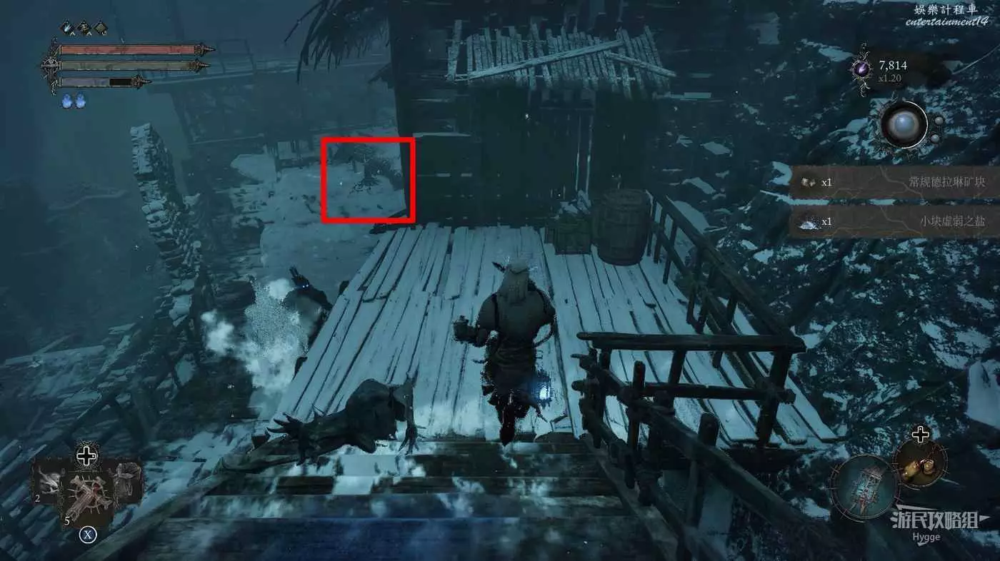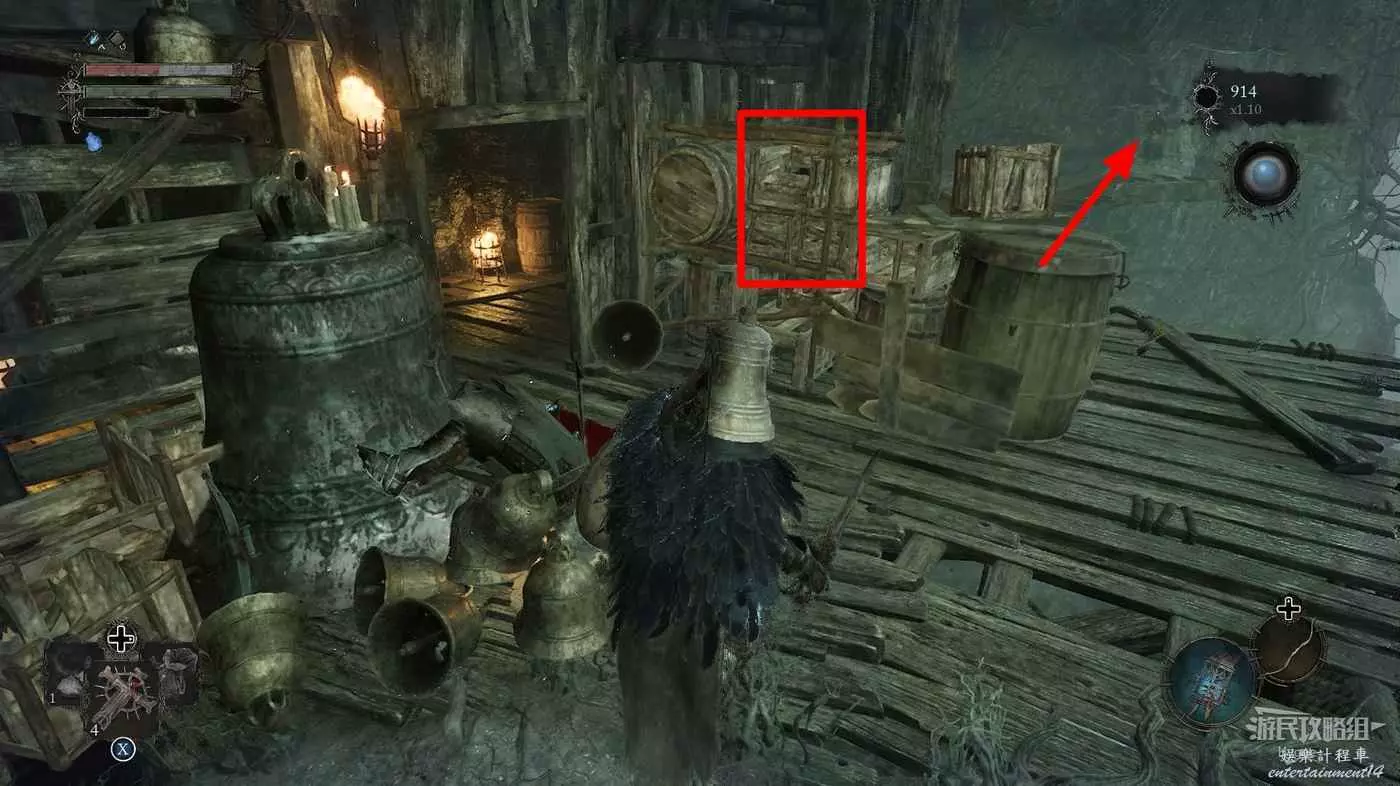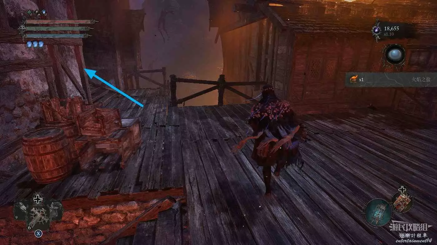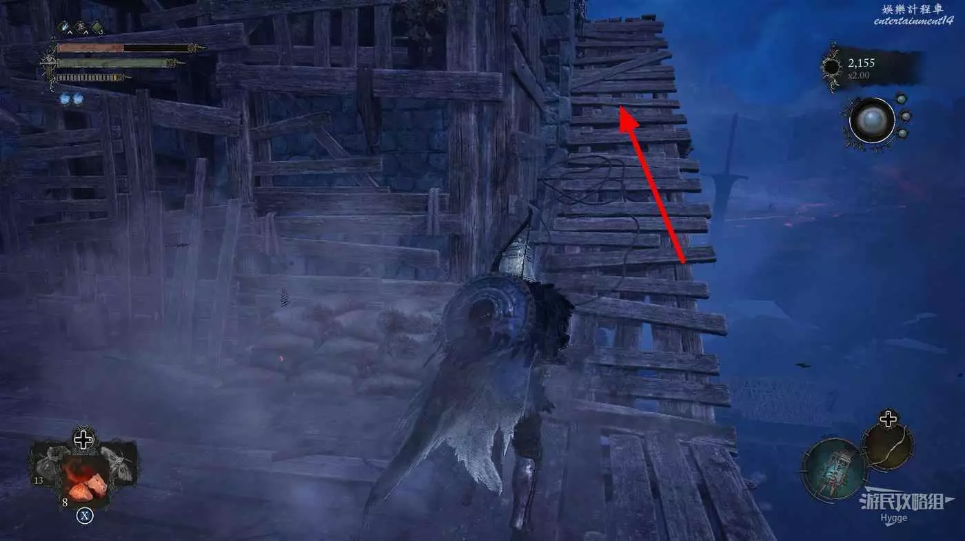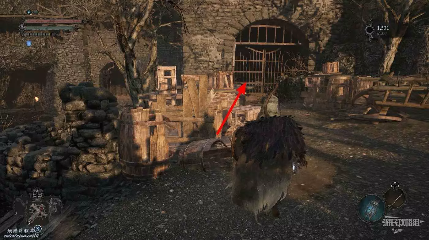 打破木板後通過提燈穿過柵欄,進入柵欄後的房間可以拿到一些武器強化素材。