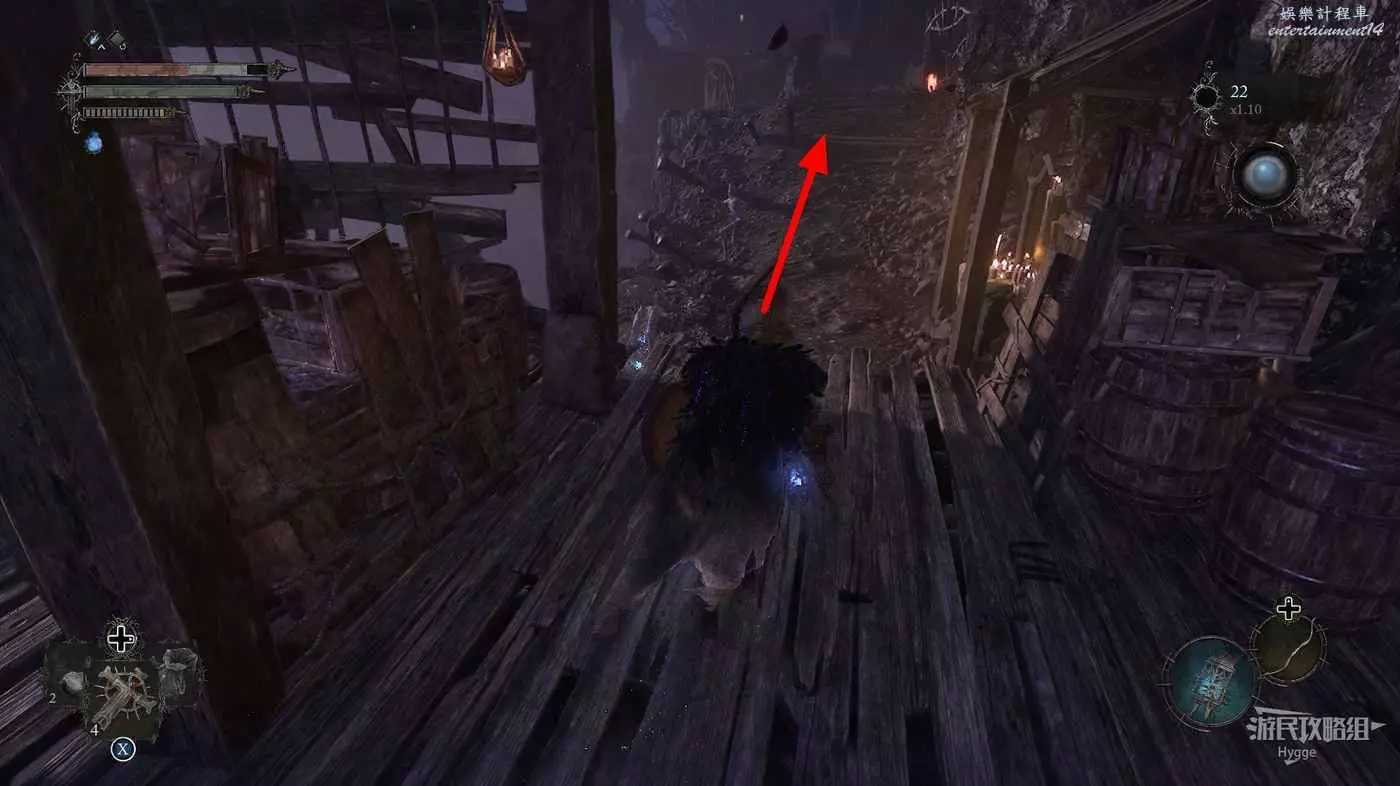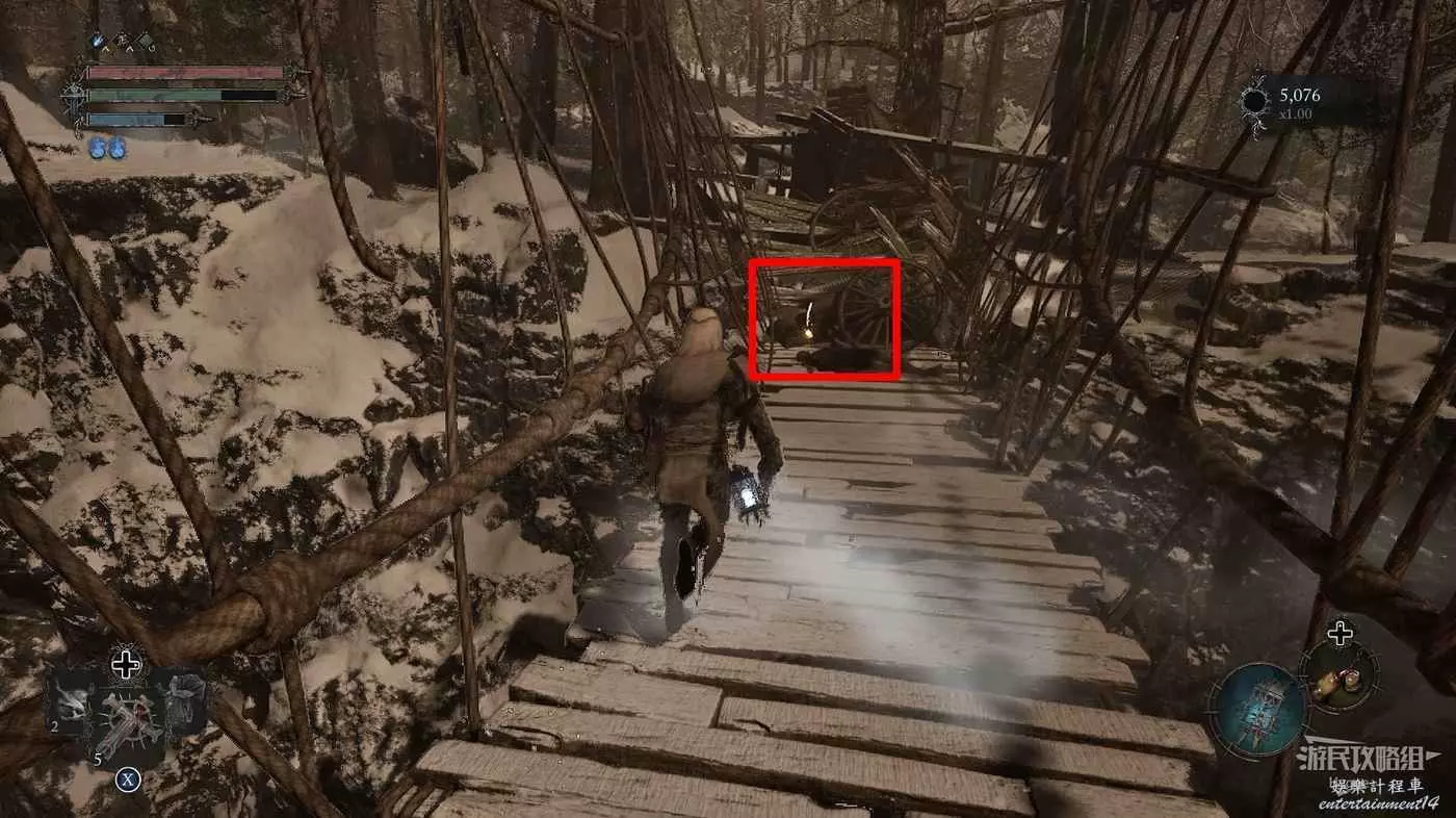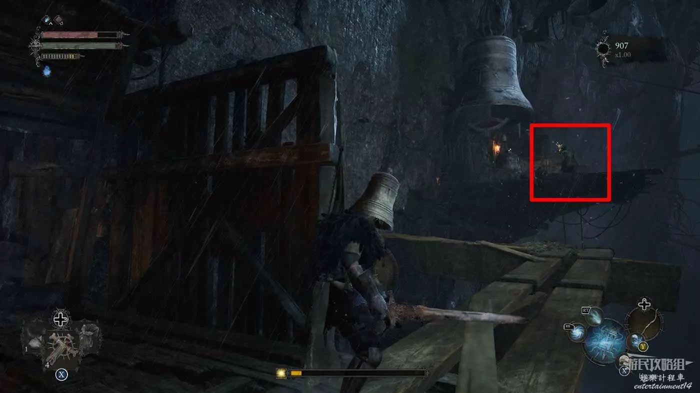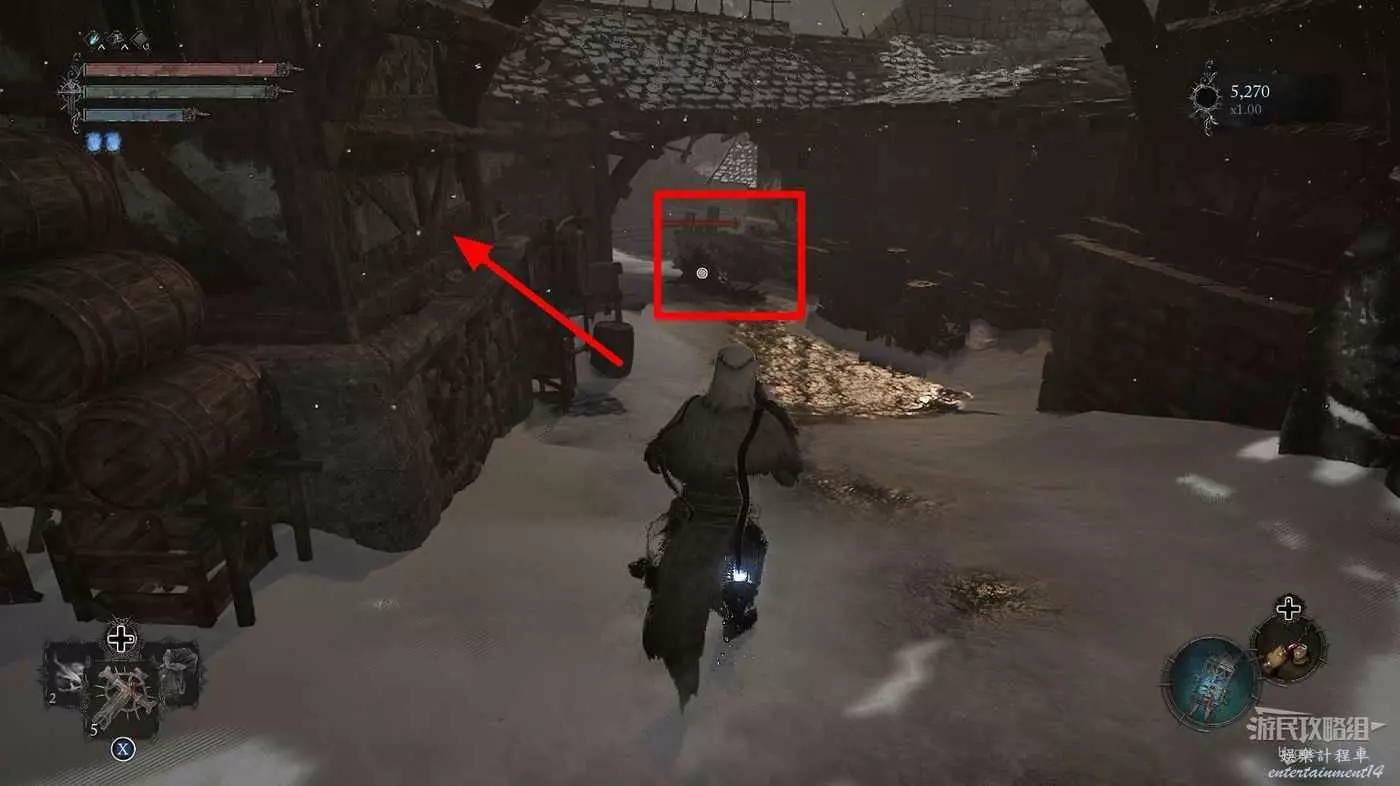 打破木板後通過提燈穿過柵欄,進入柵欄後的房間可以拿到一些武器強化素材。