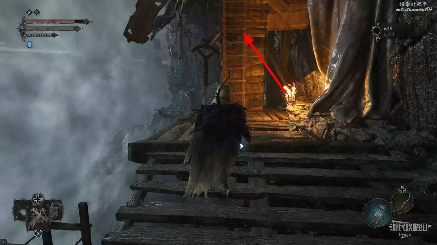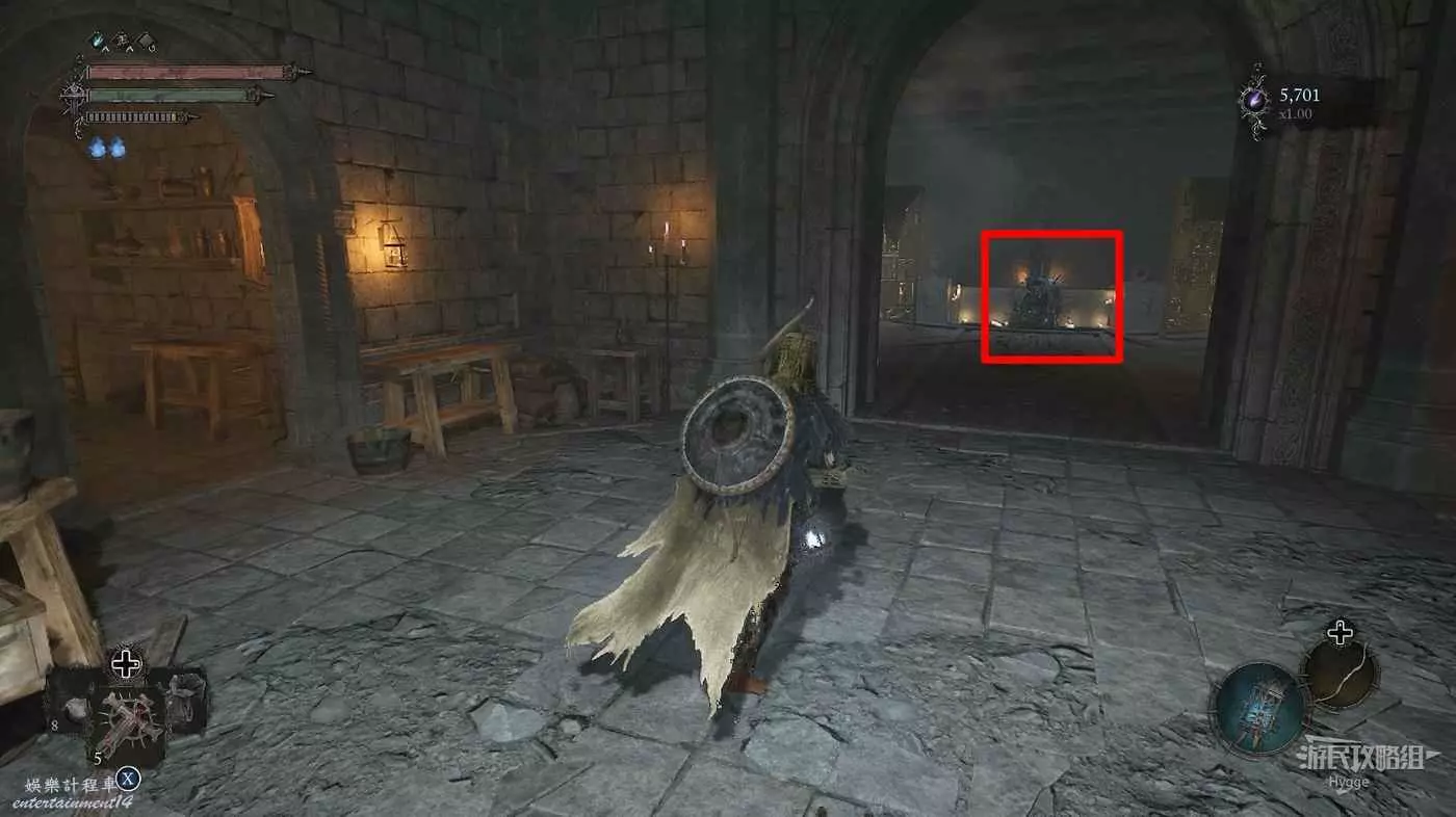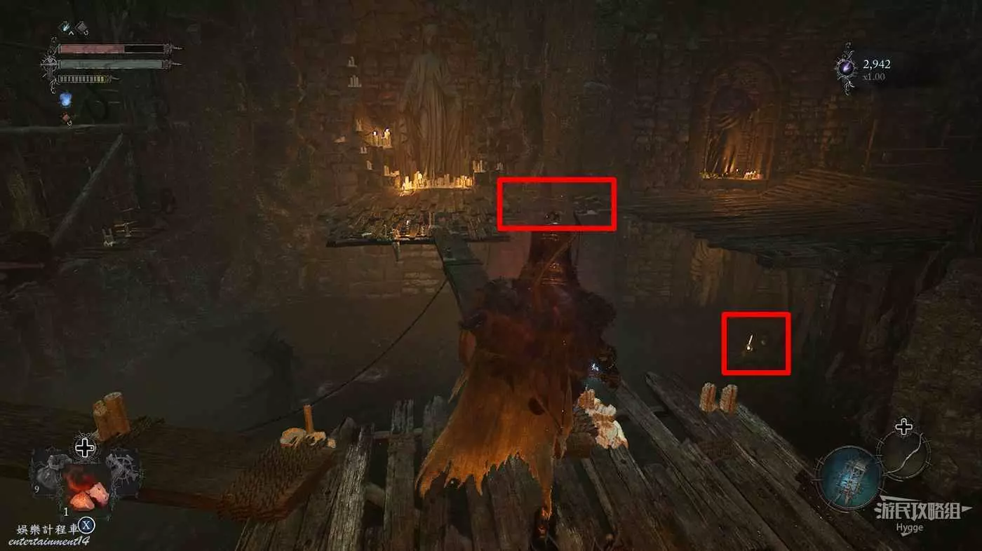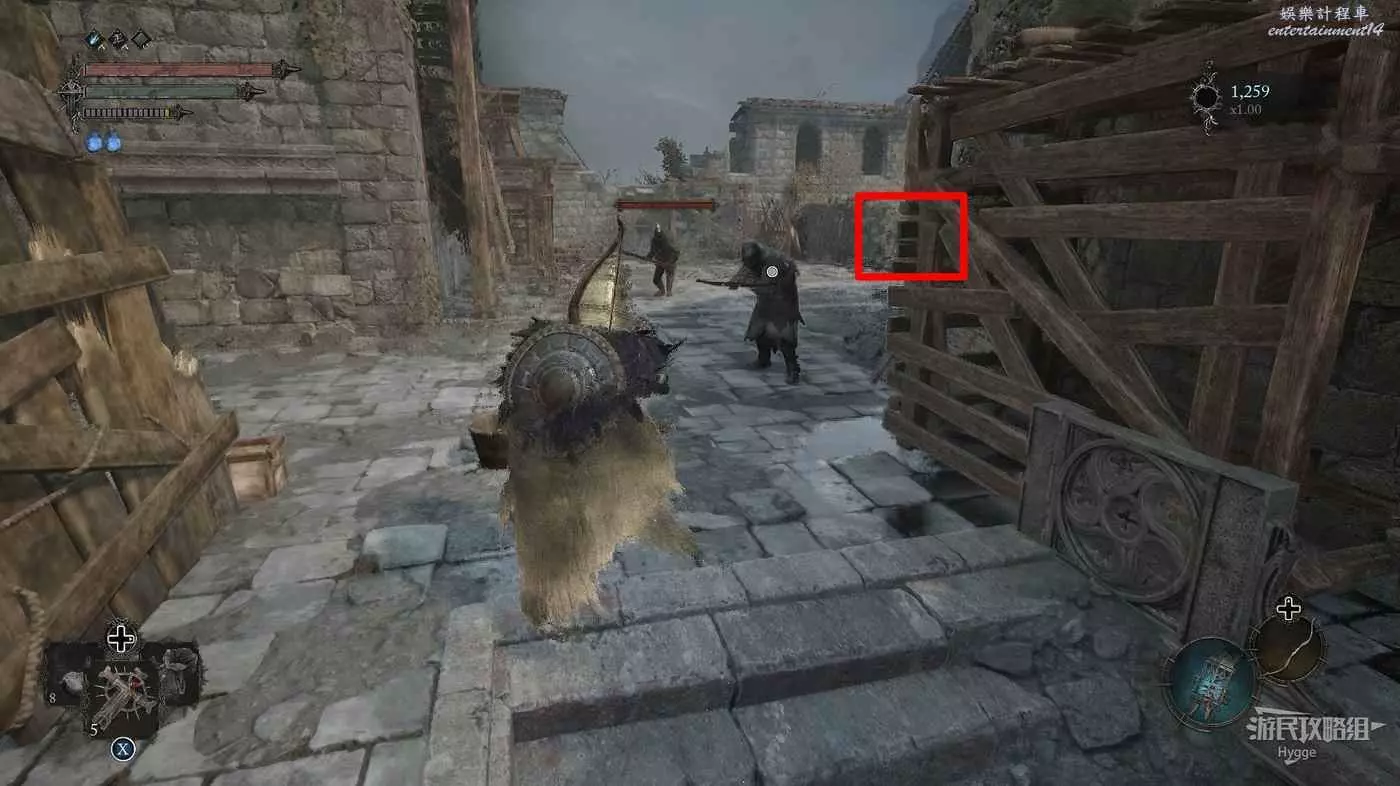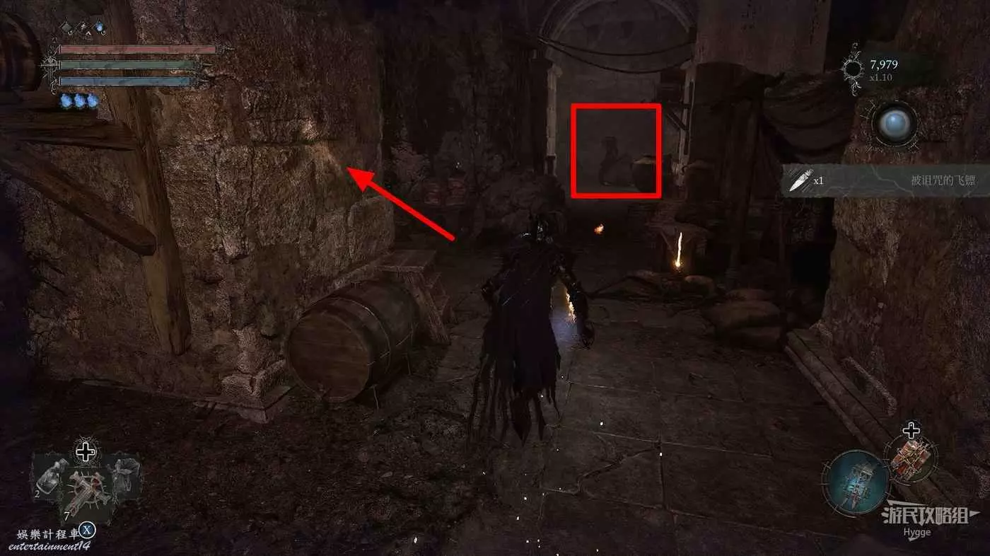 打破木板後通過提燈穿過柵欄,進入柵欄後的房間可以拿到一些武器強化素材。