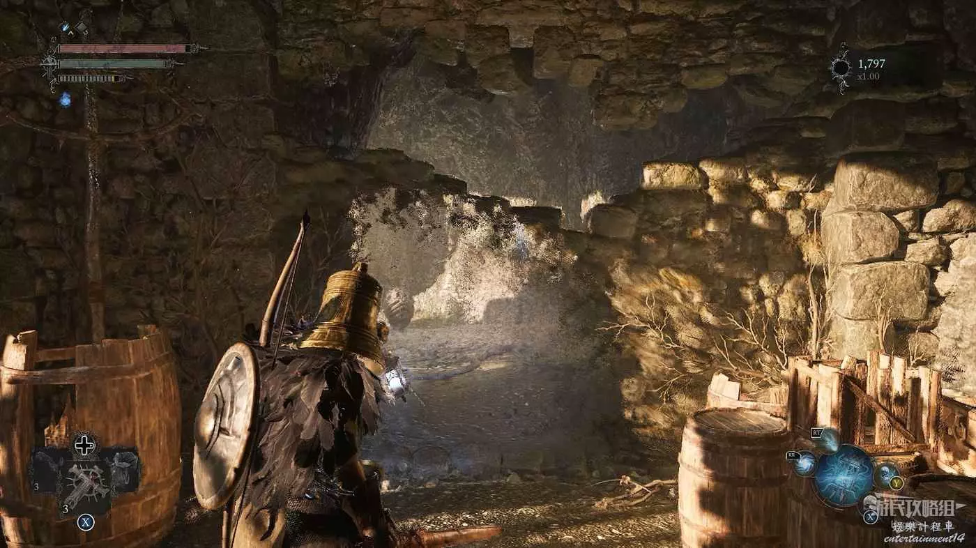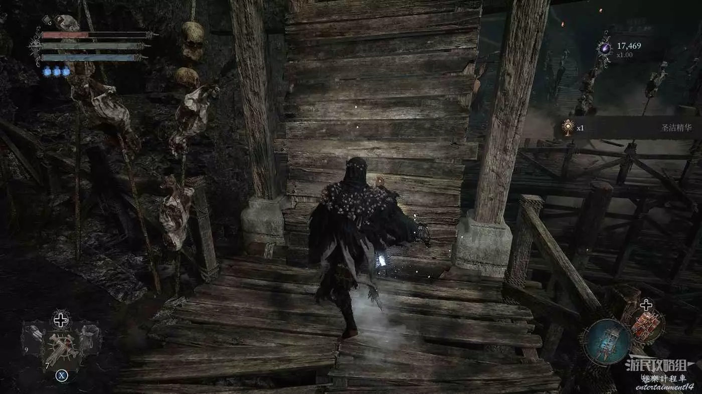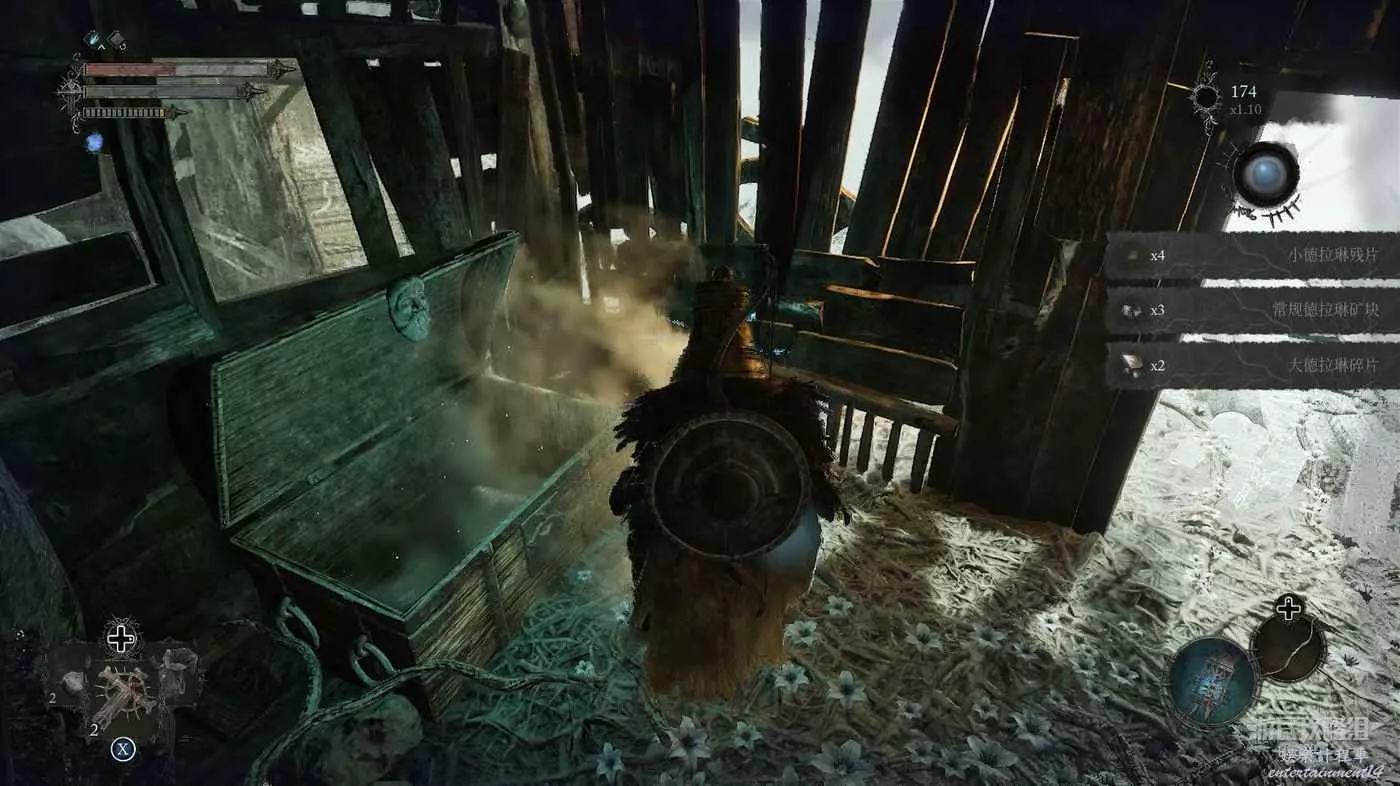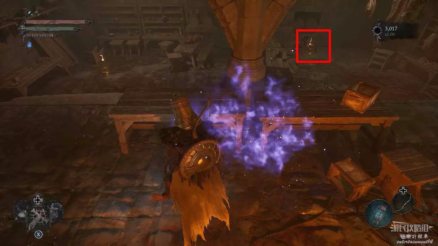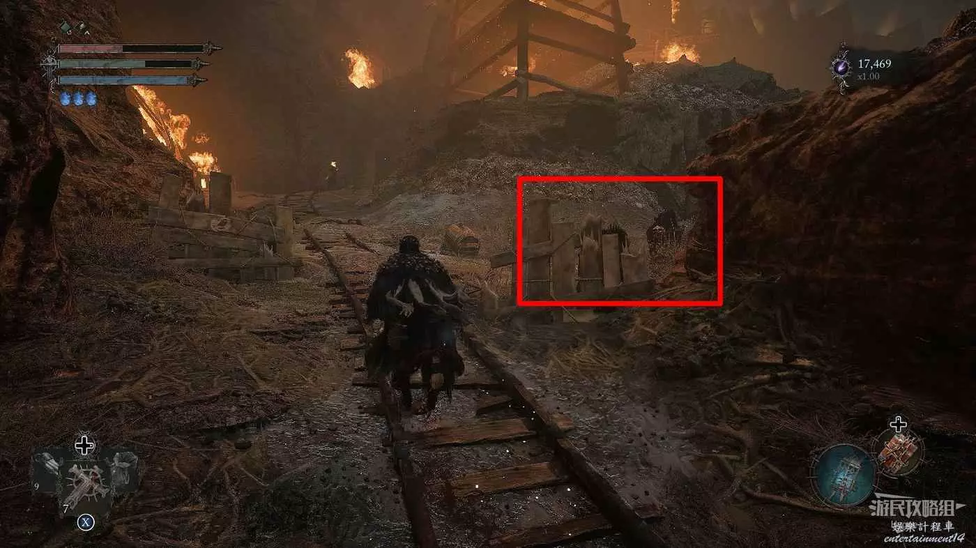 打破木板後通過提燈穿過柵欄,進入柵欄後的房間可以拿到一些武器強化素材。