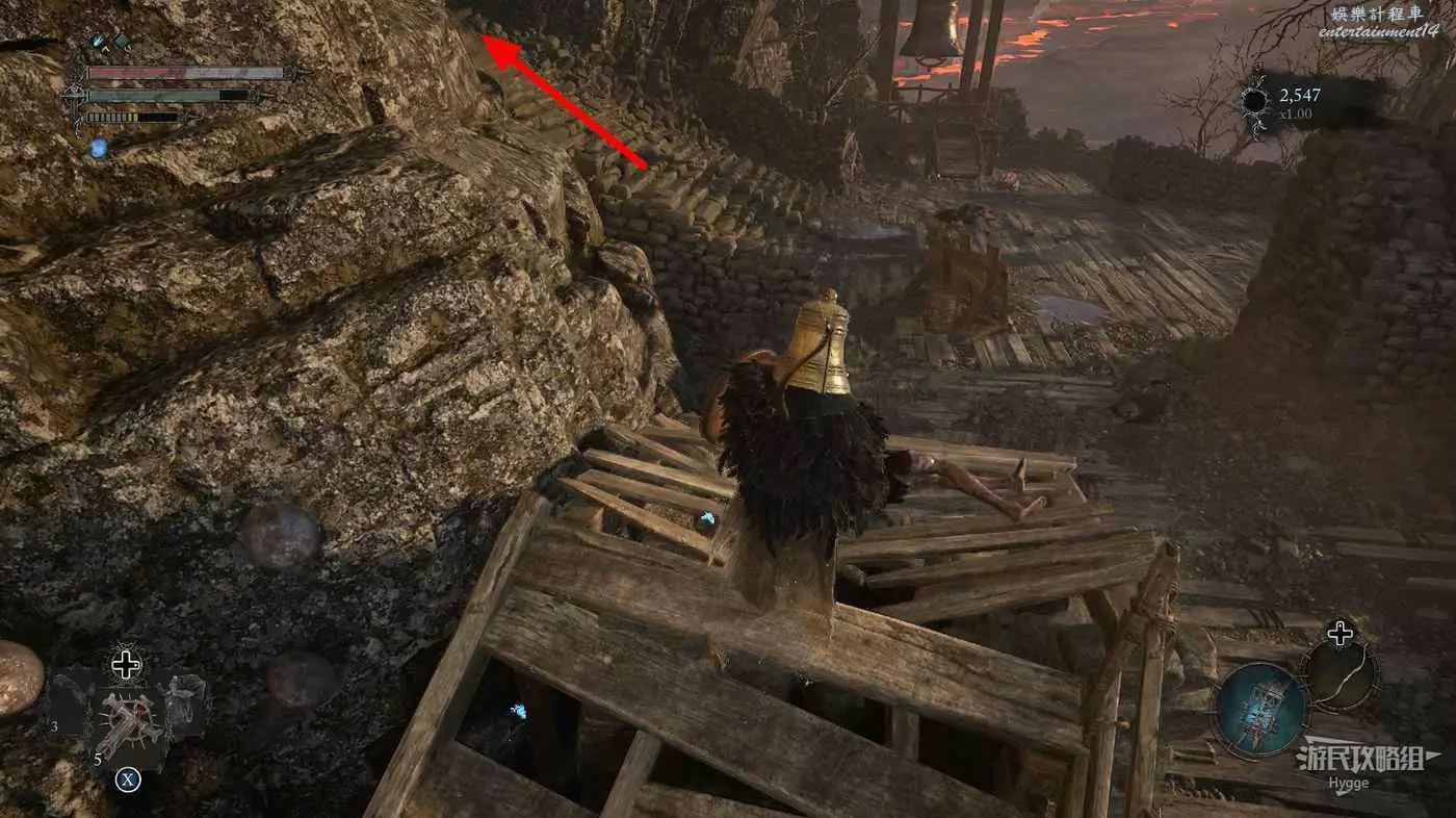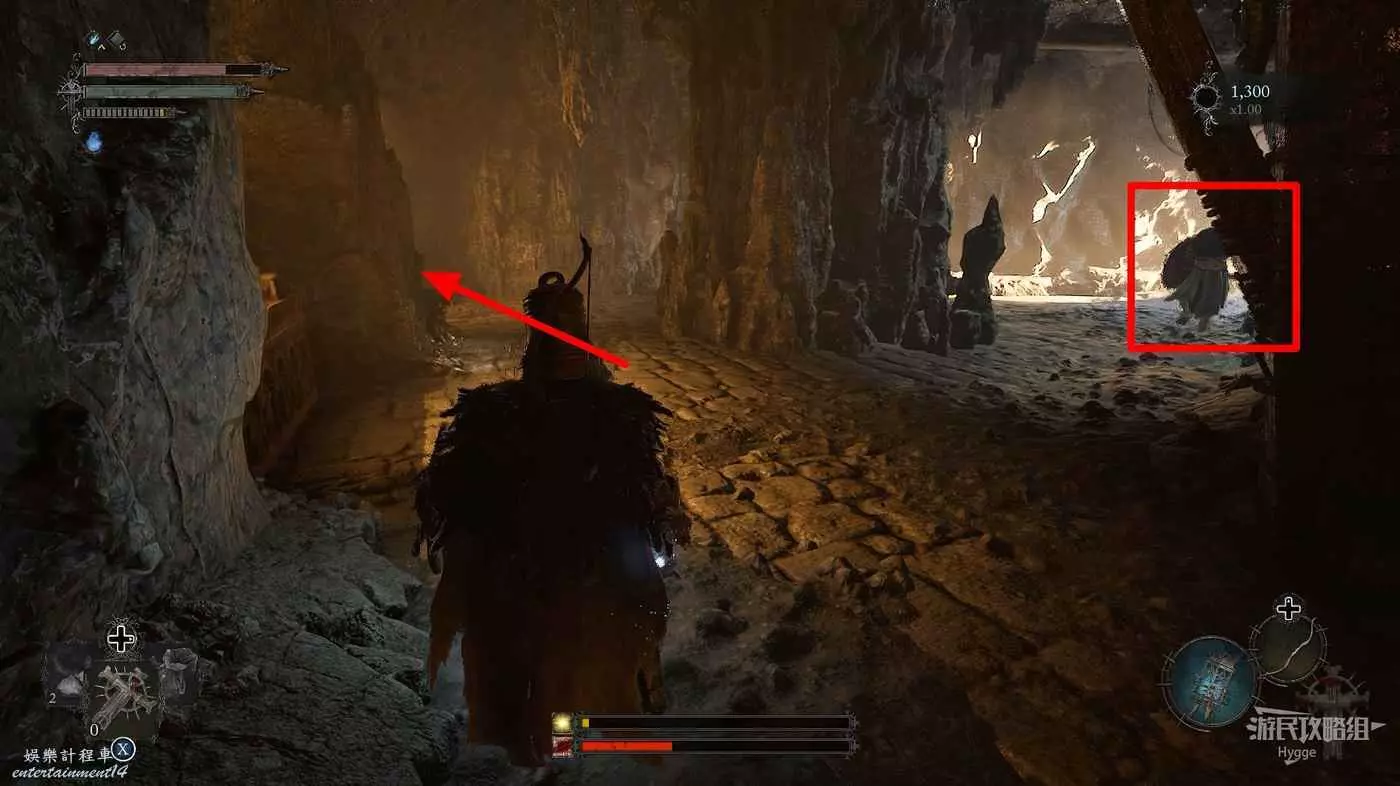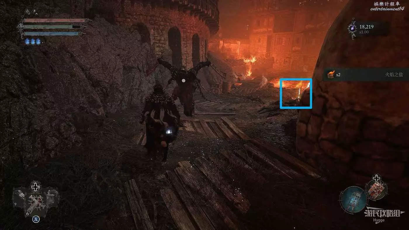 繼續向前走在岩漿旁邊拿到一些道具。