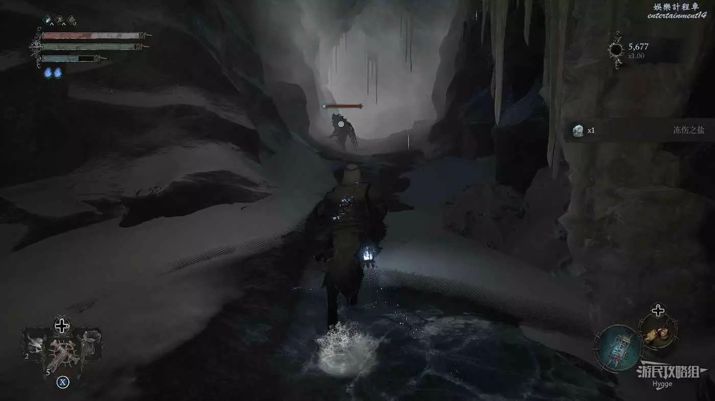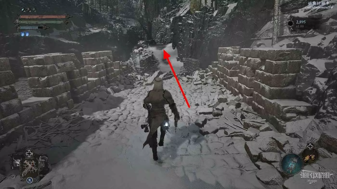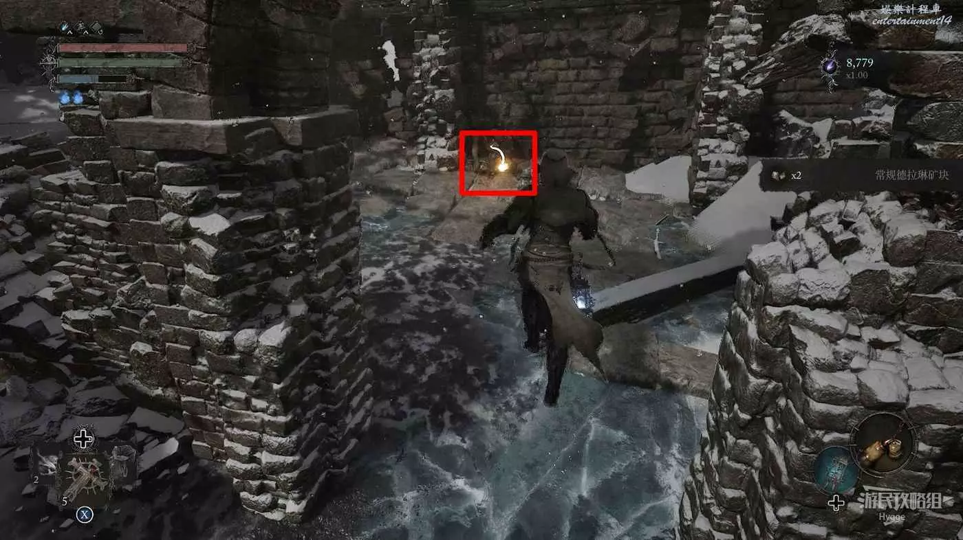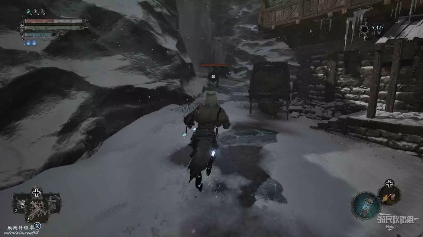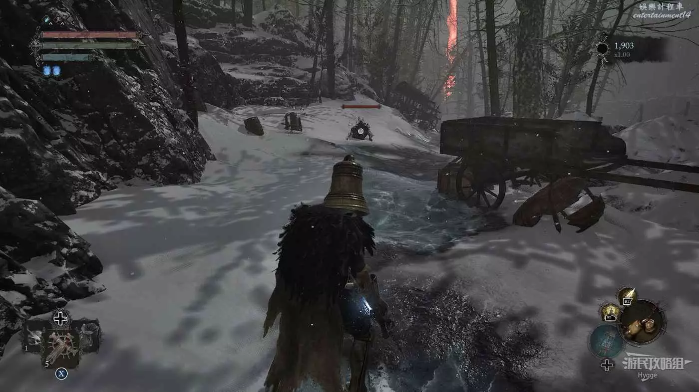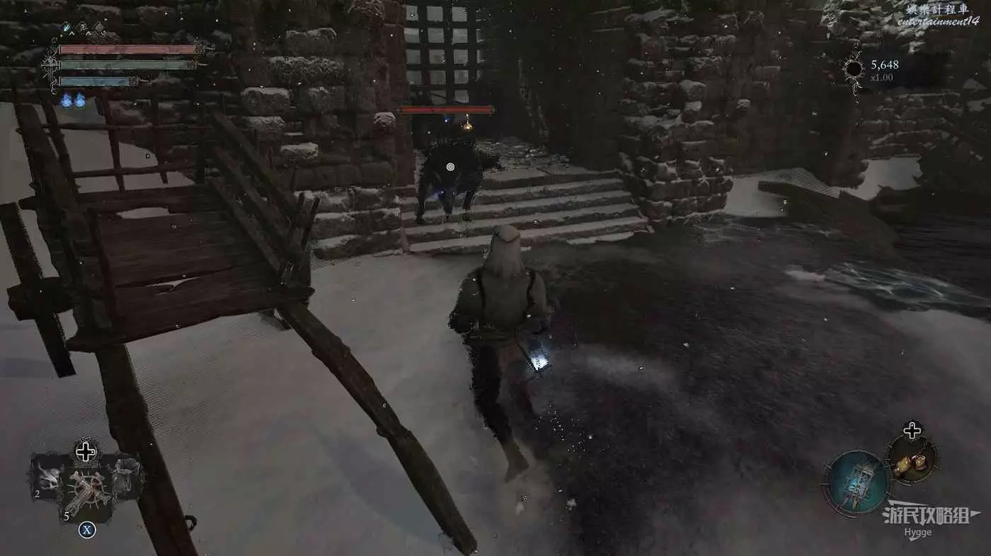 在前方被封堵住的城門旁拿到投擲武器【強化切割飛刀】後從旁邊的梯子向上正式進入寒冰詛咒之地。