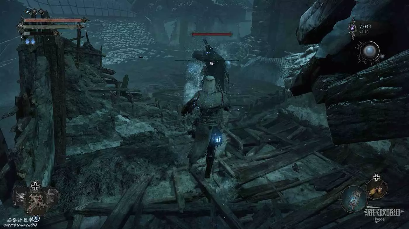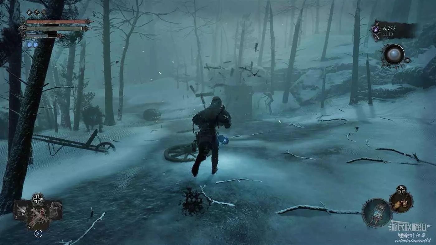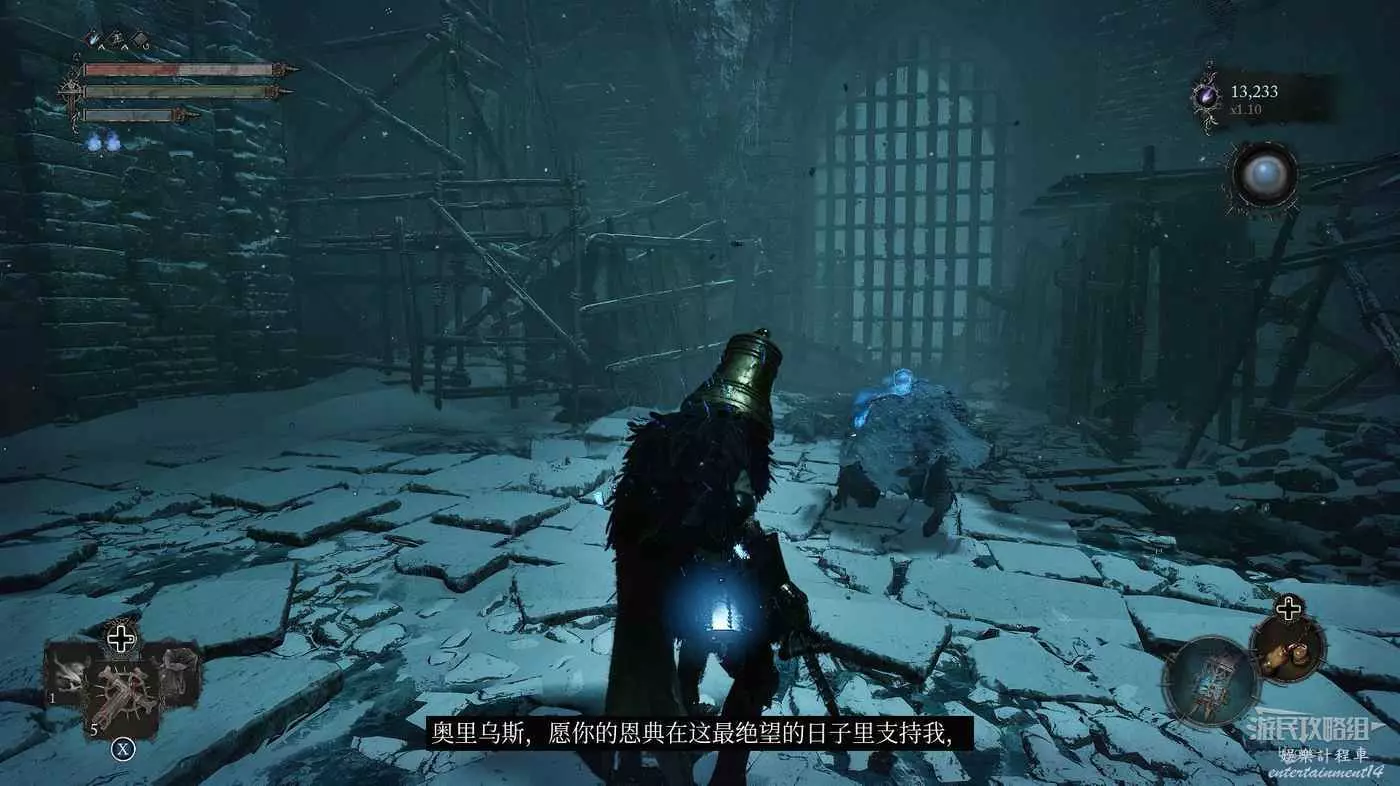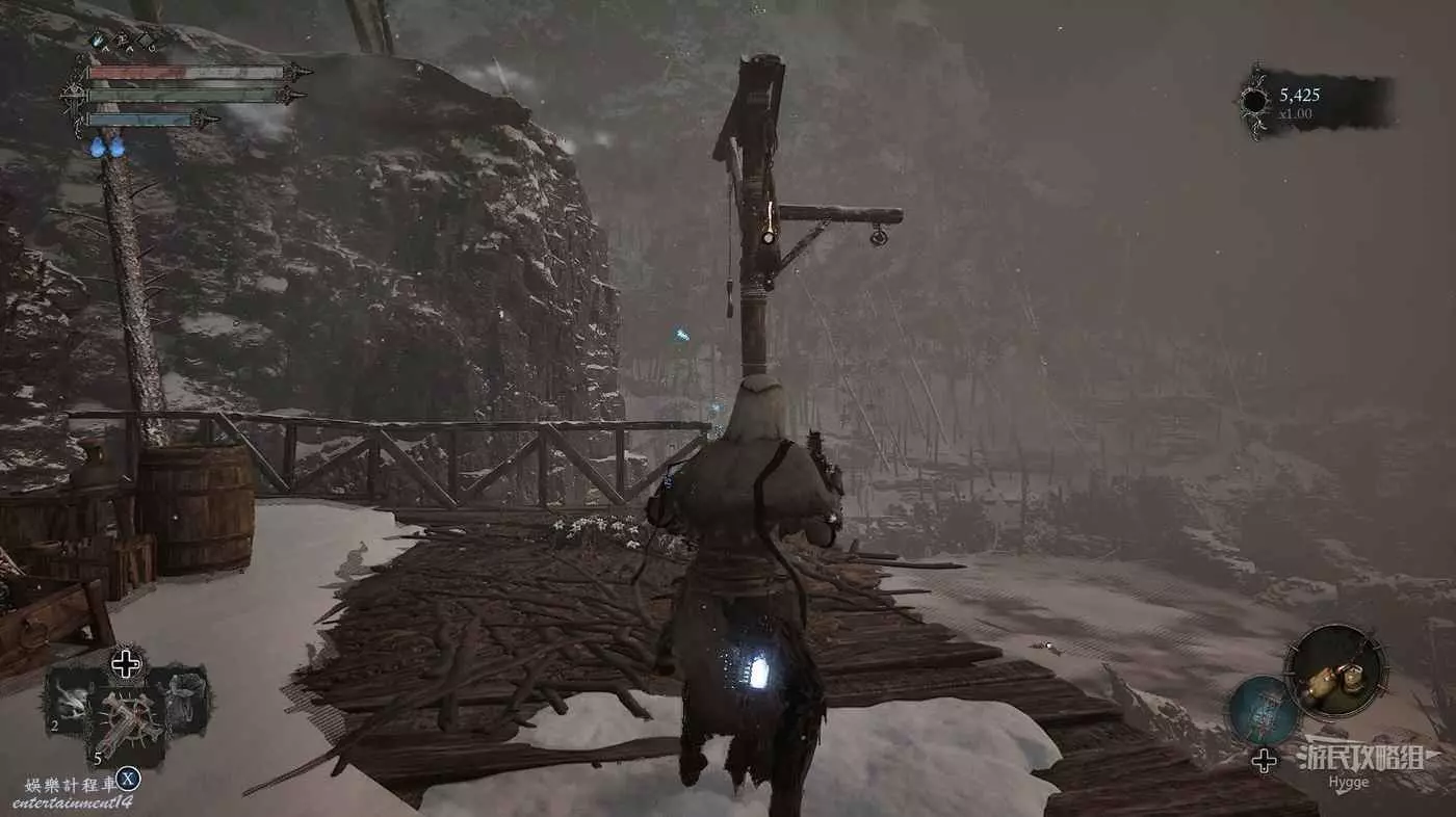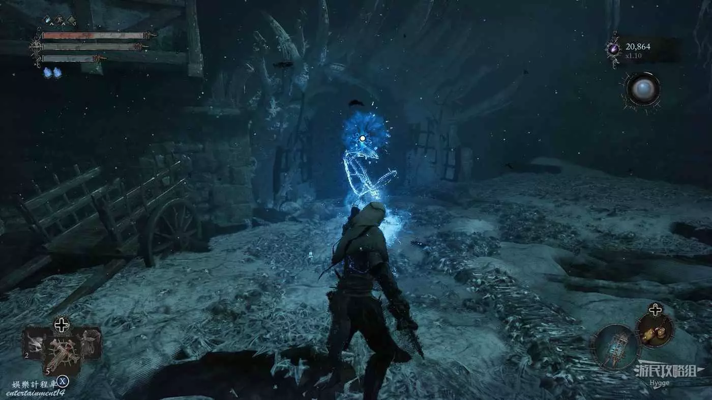 在前方被封堵住的城門旁拿到投擲武器【強化切割飛刀】後從旁邊的梯子向上正式進入寒冰詛咒之地。