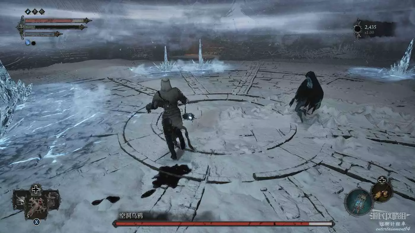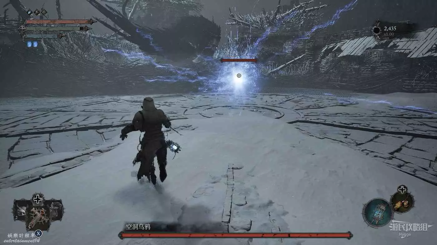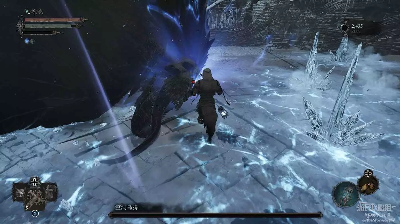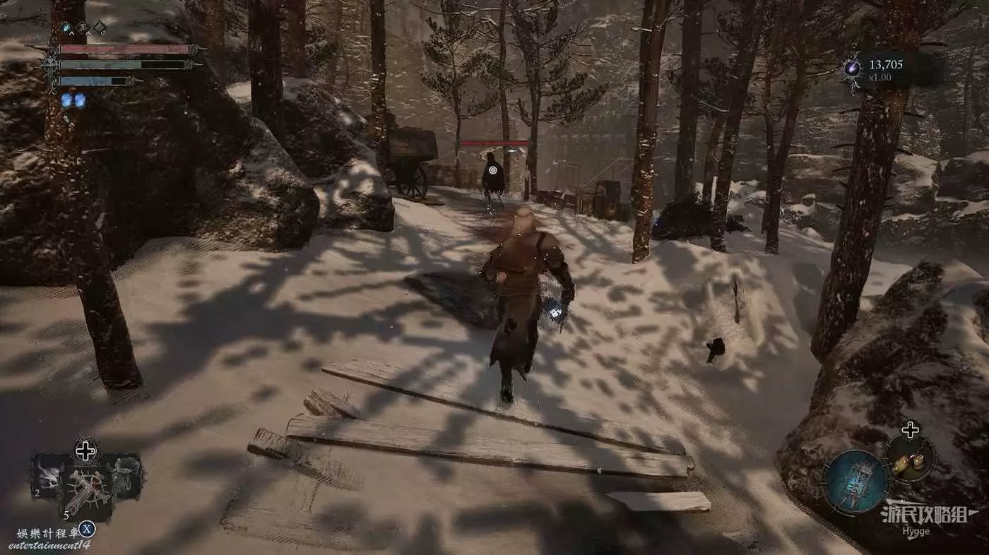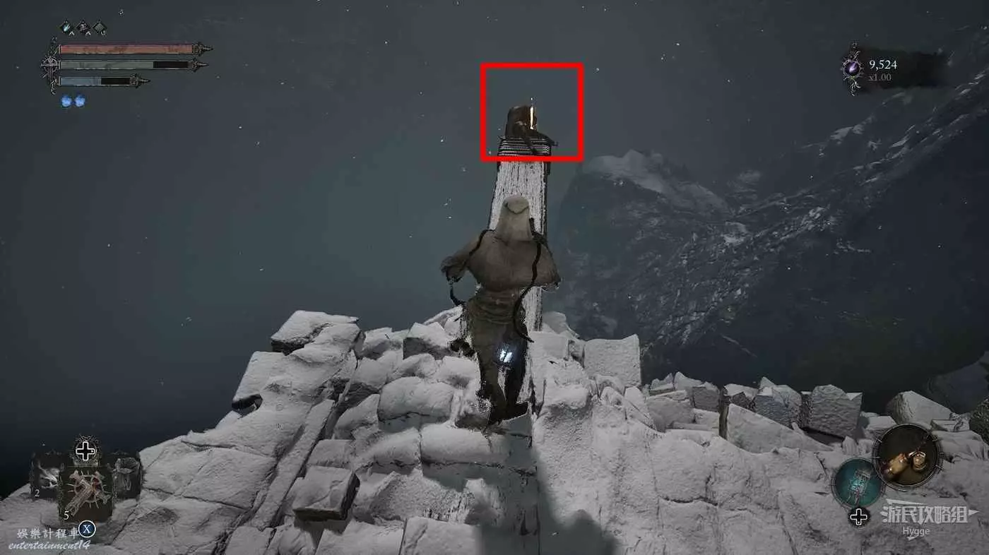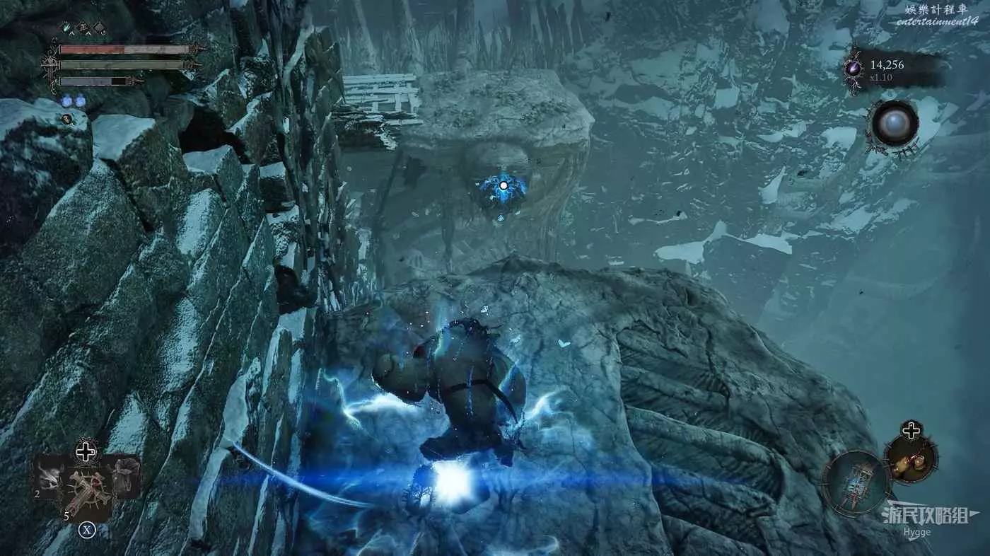 在前方被封堵住的城門旁拿到投擲武器【強化切割飛刀】後從旁邊的梯子向上正式進入寒冰詛咒之地。
