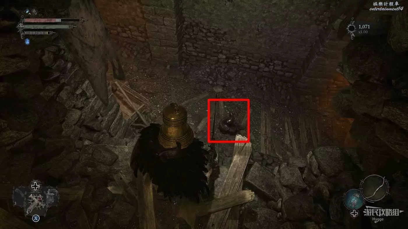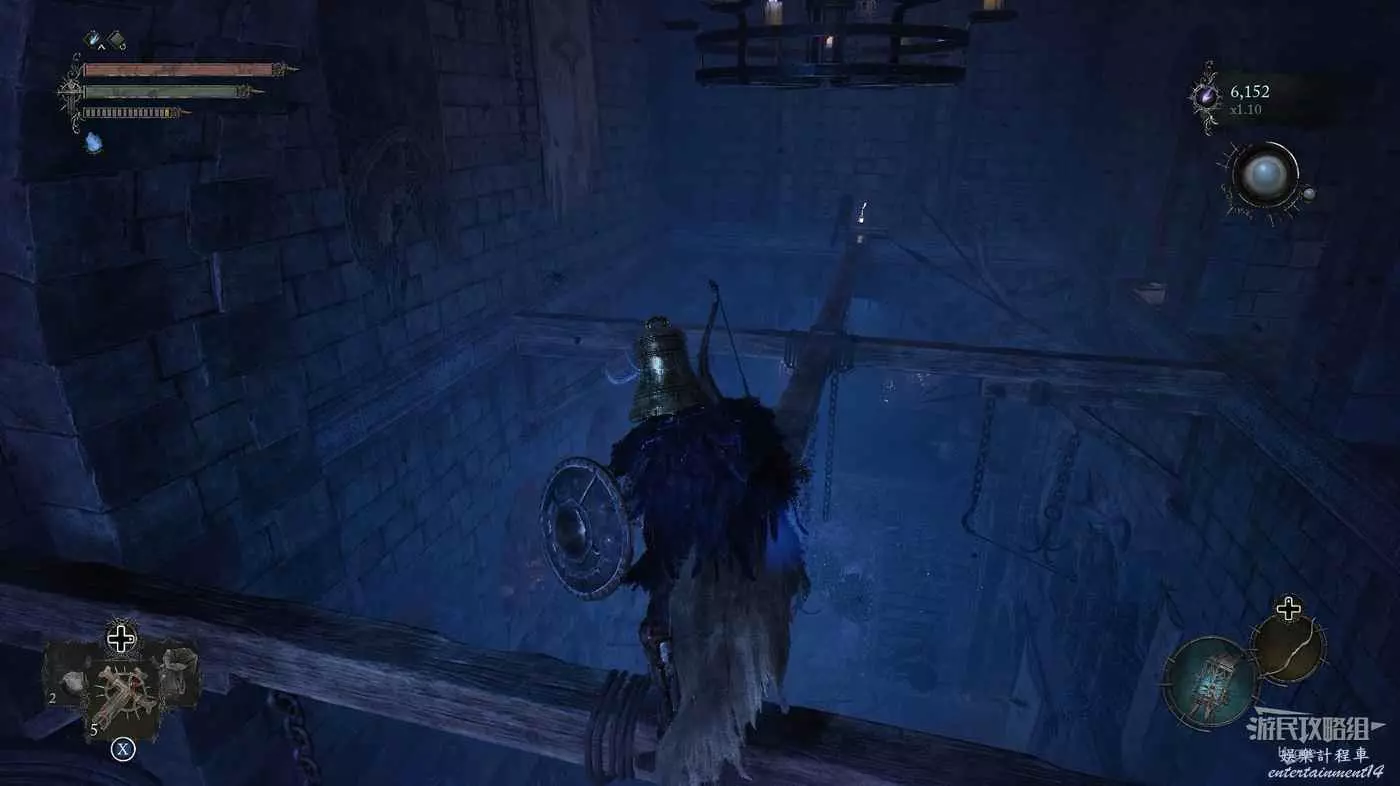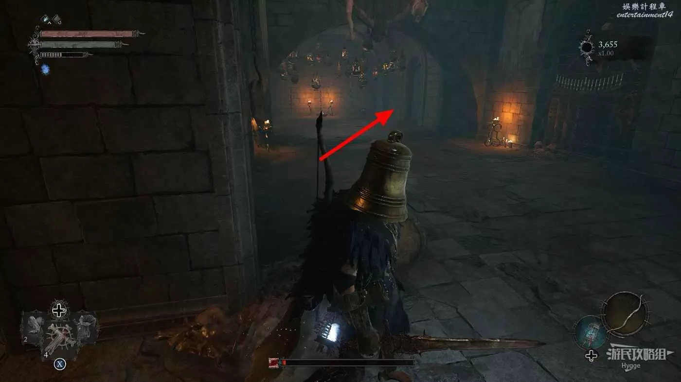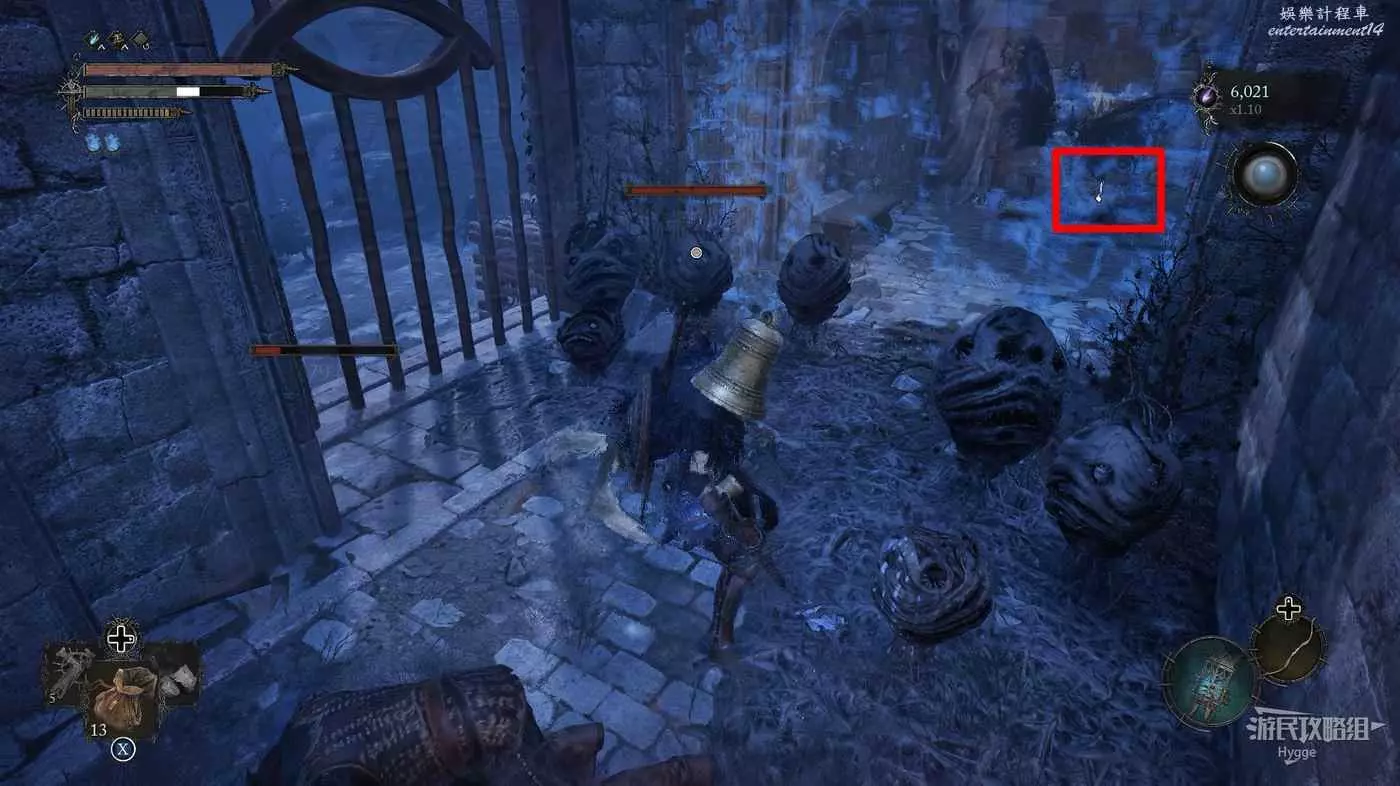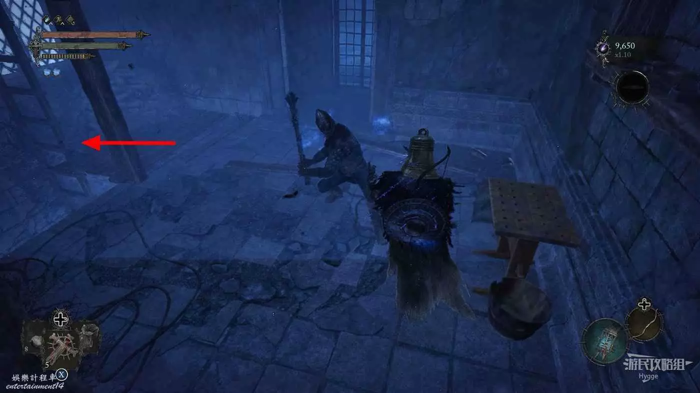 通過房間中的雕像離開影界後跳到下層,擊殺房間中的法師和銅鐘頭。