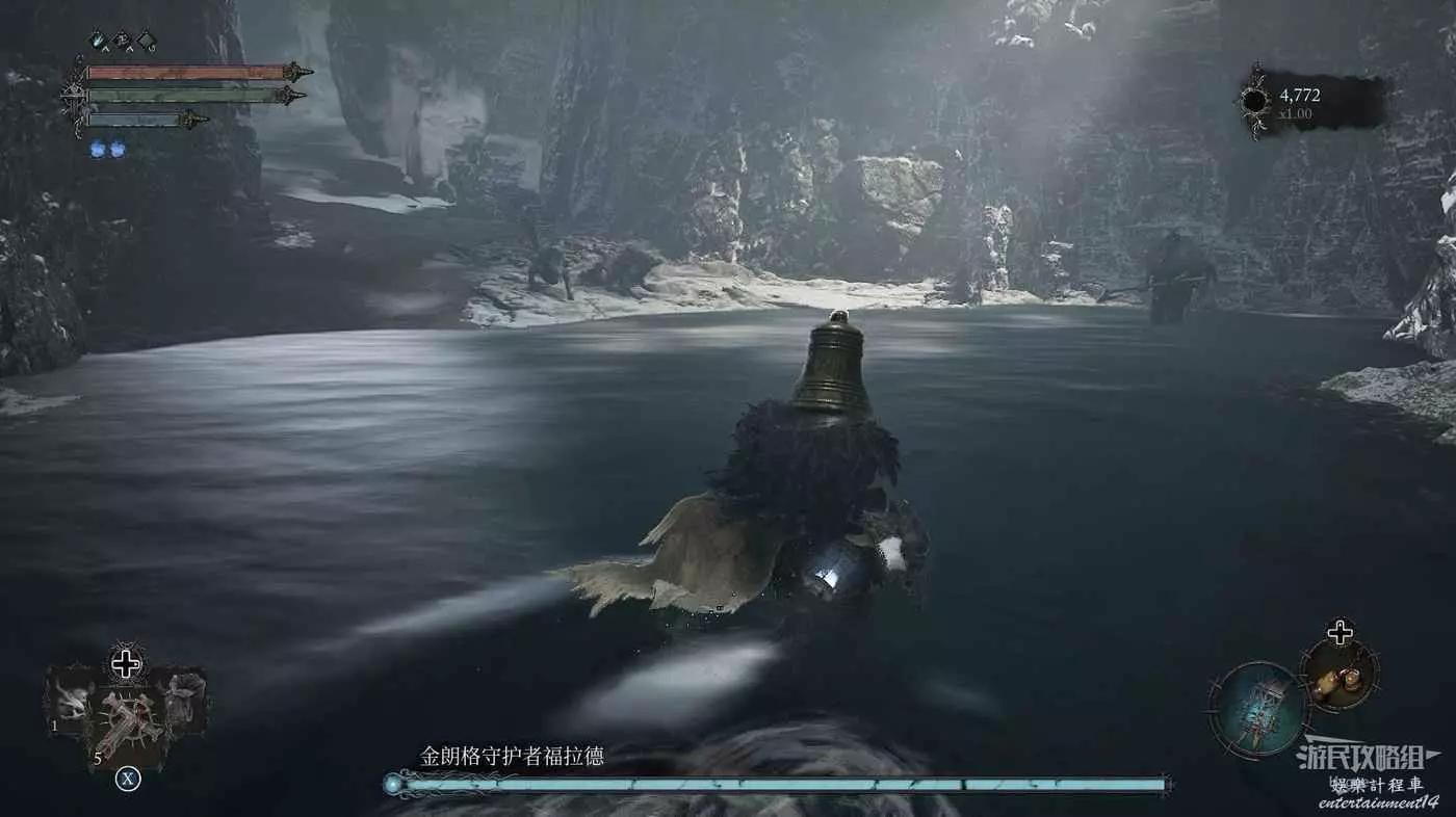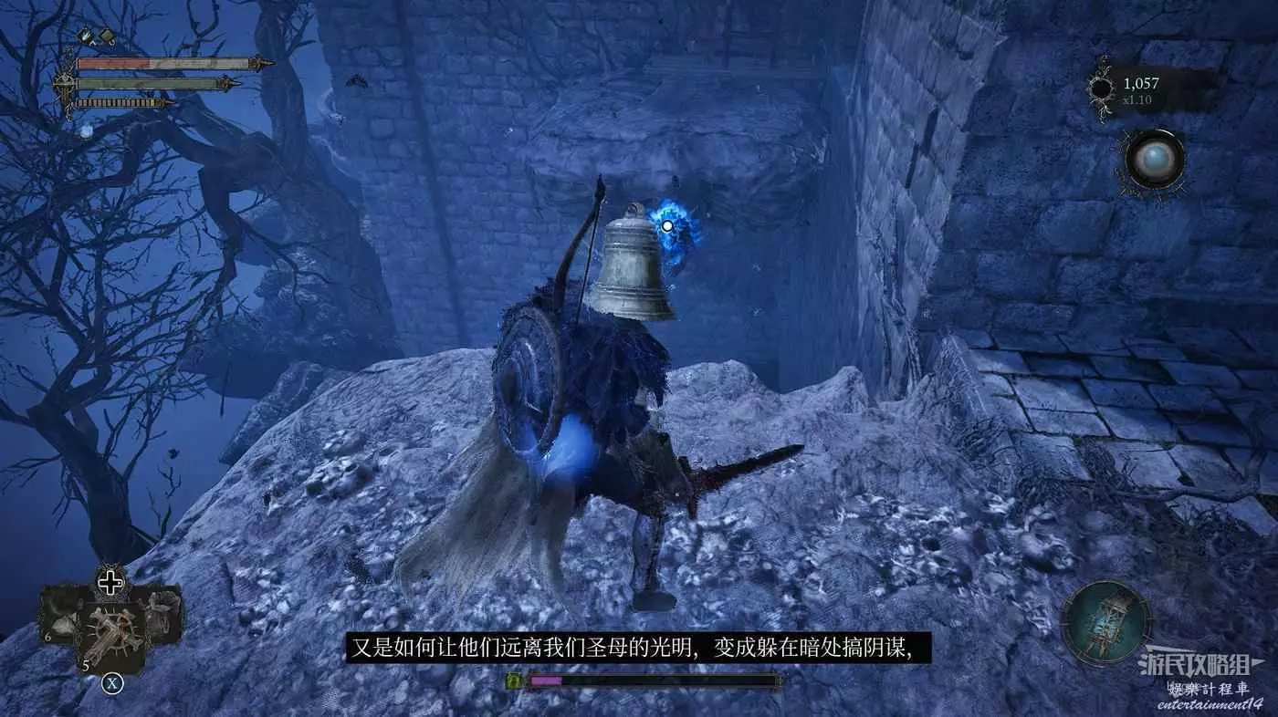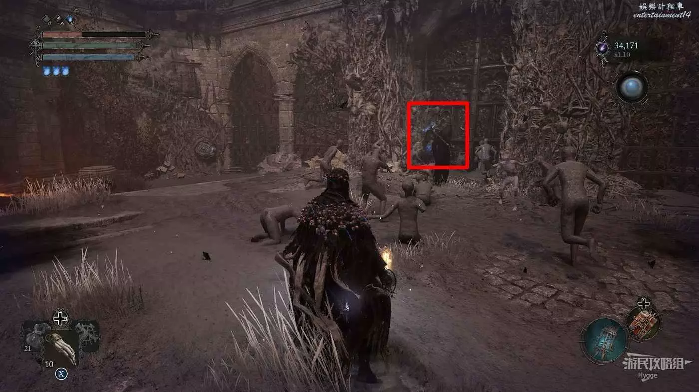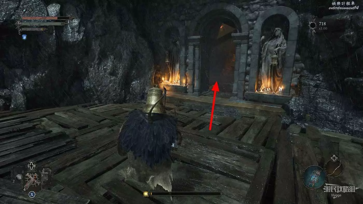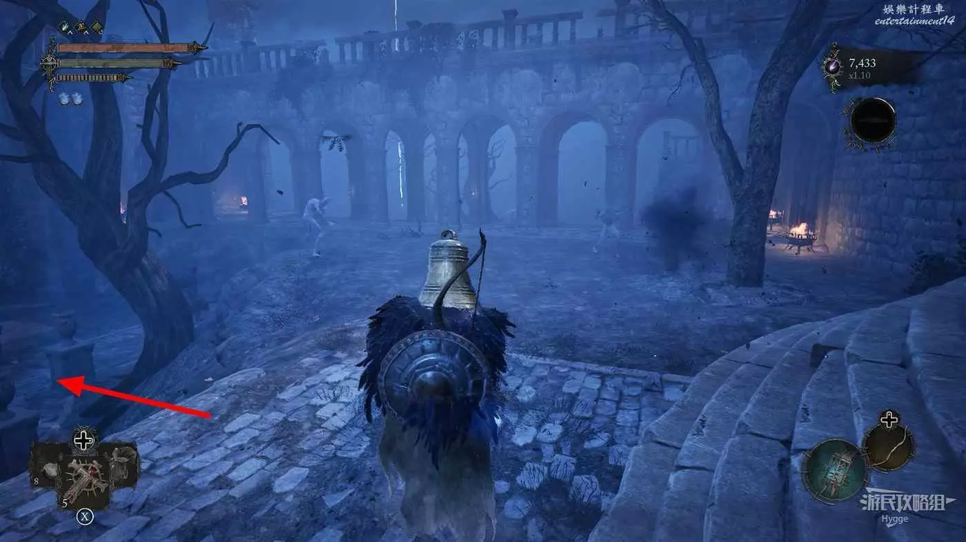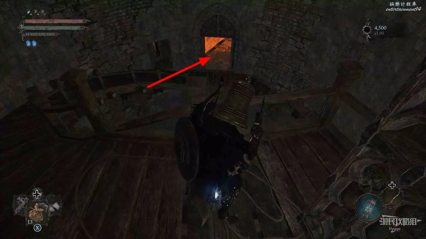 通過房間中的雕像離開影界後跳到下層,擊殺房間中的法師和銅鐘頭。