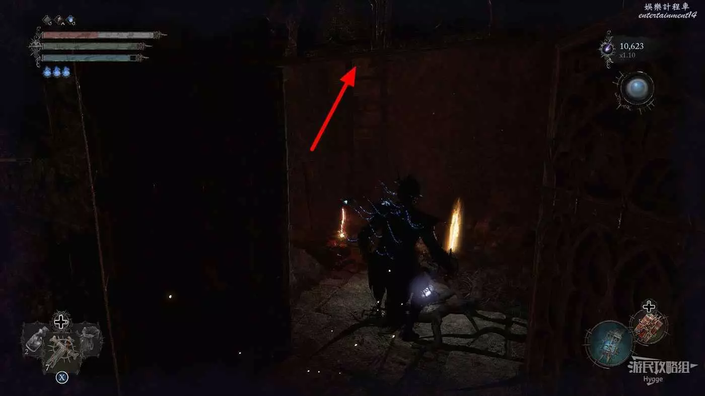 在烙印旁的靈魂上可以拿到武器【熔化的黑暗遠征軍的劍】,隨後使用攝魂牽引上方的兩個靈魂打開道路。