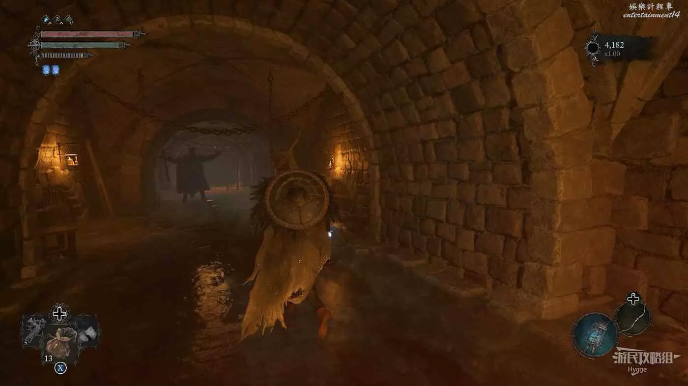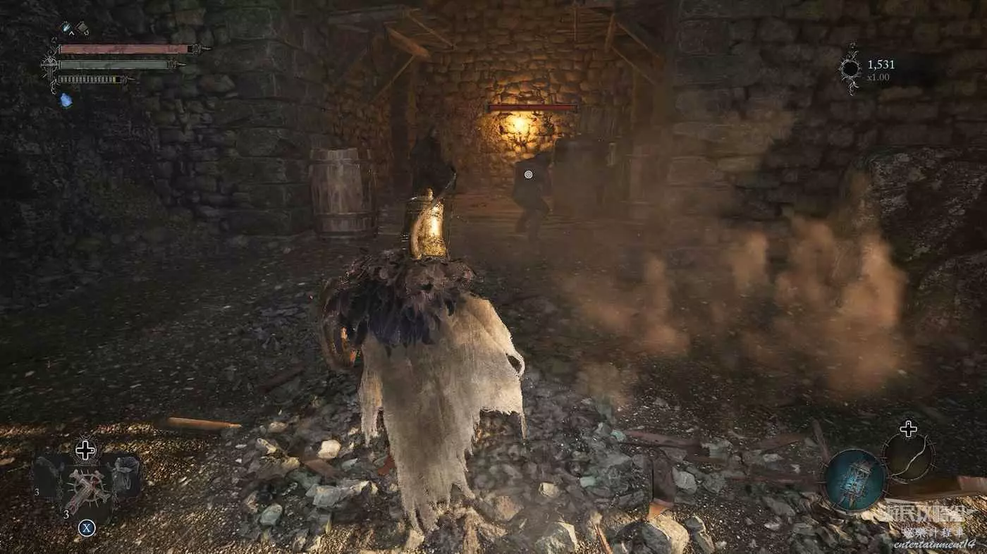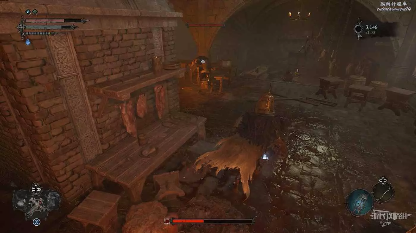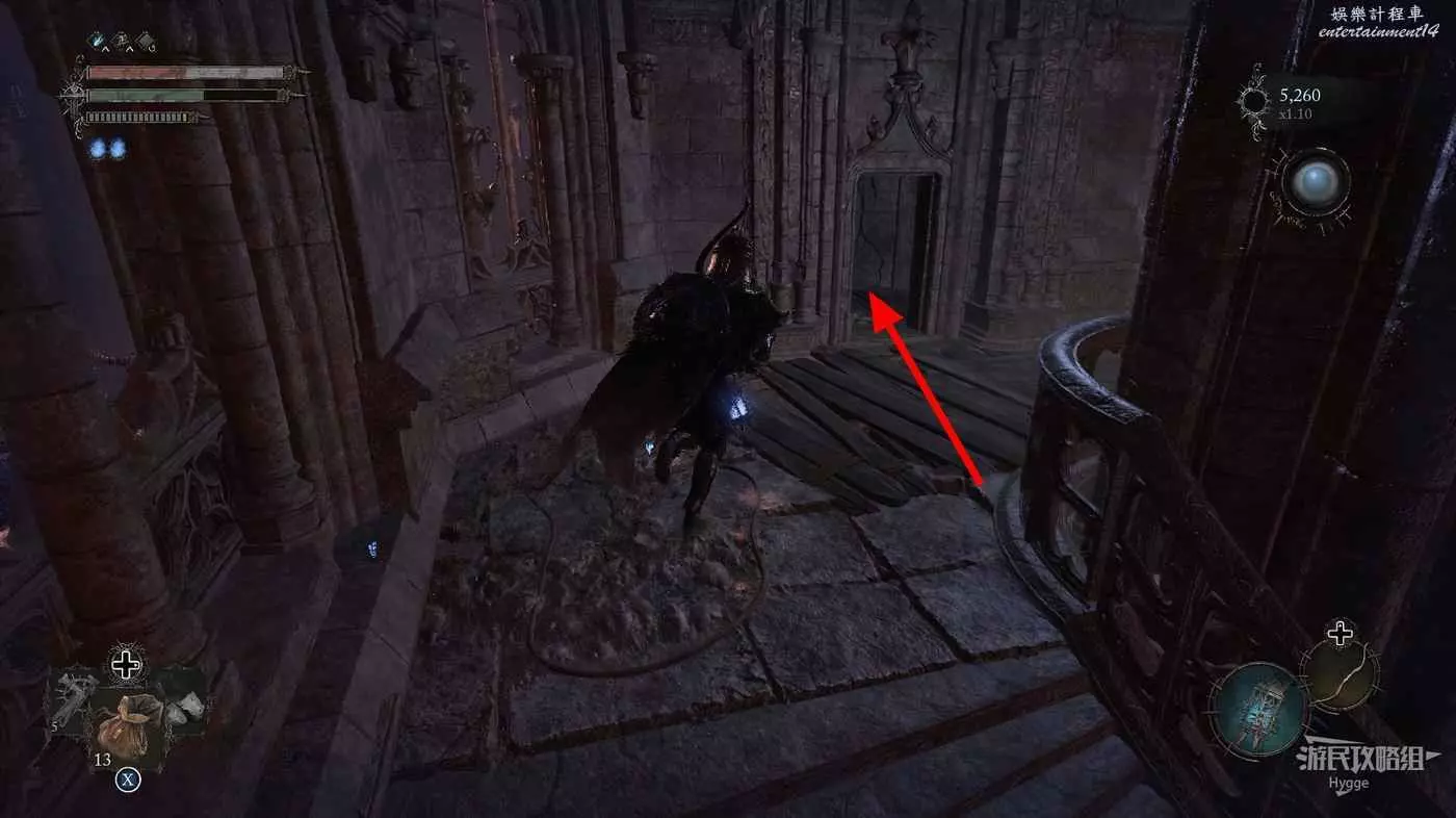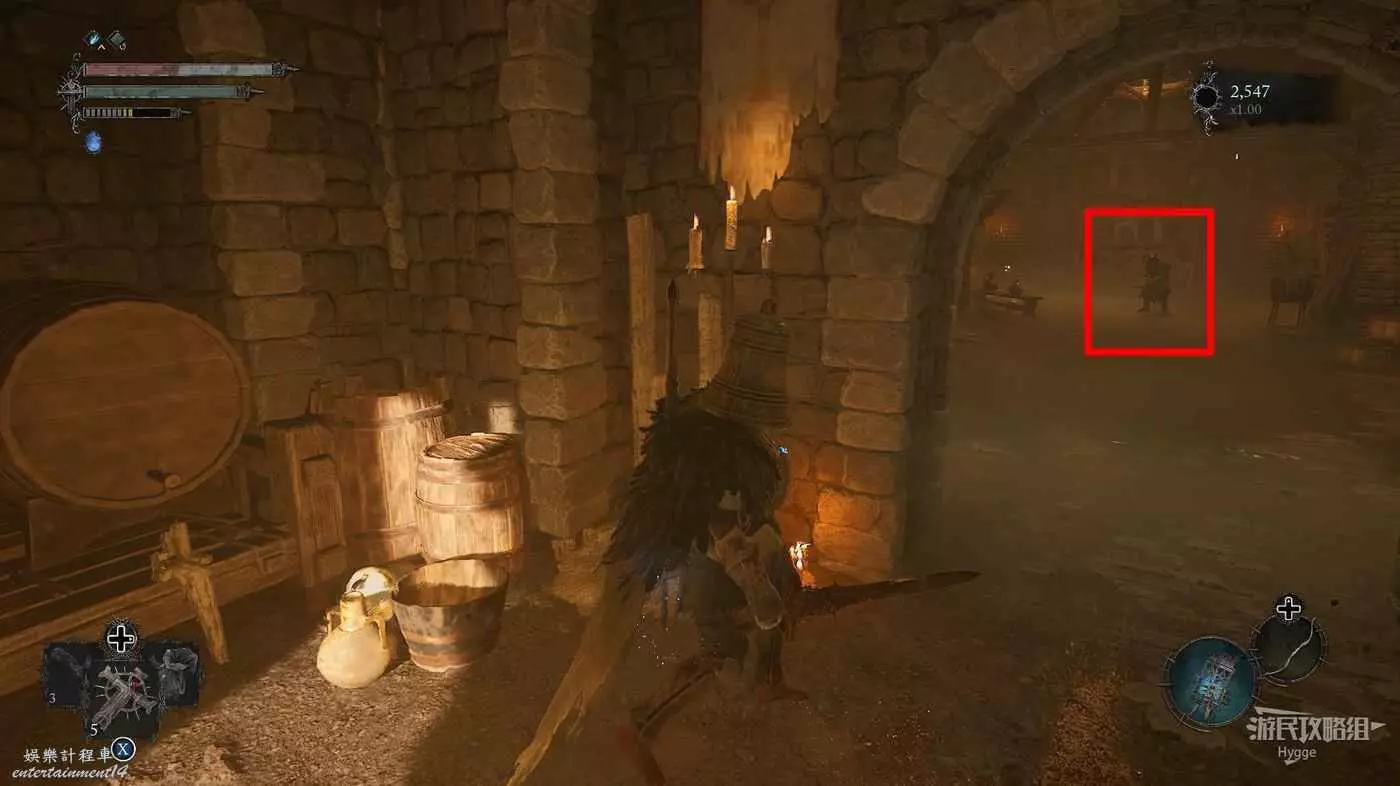利用提燈穿過柵欄後可以在房間內拿到武器【臨終低語】,然後打通連接廚房對面的遺骸的捷徑。
