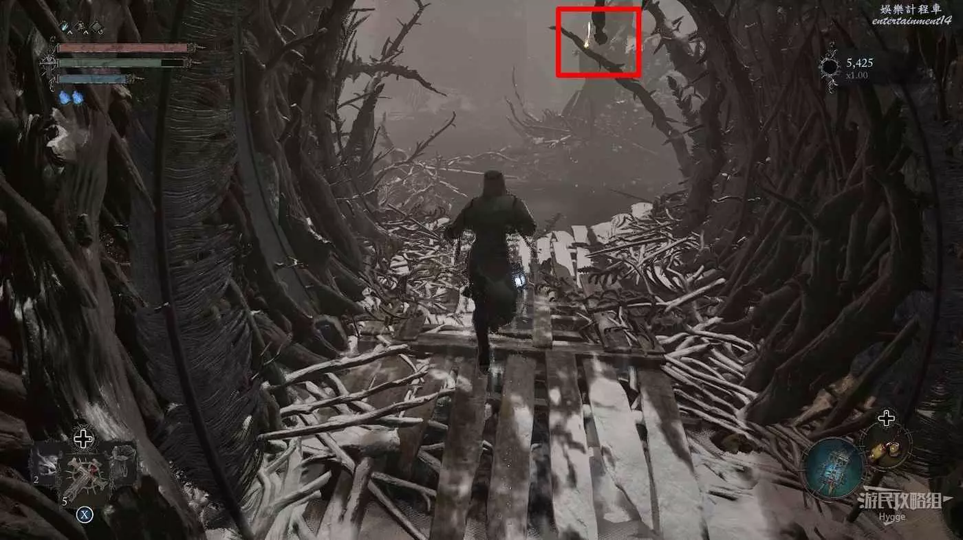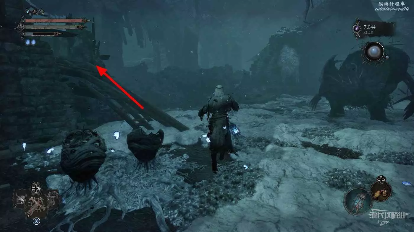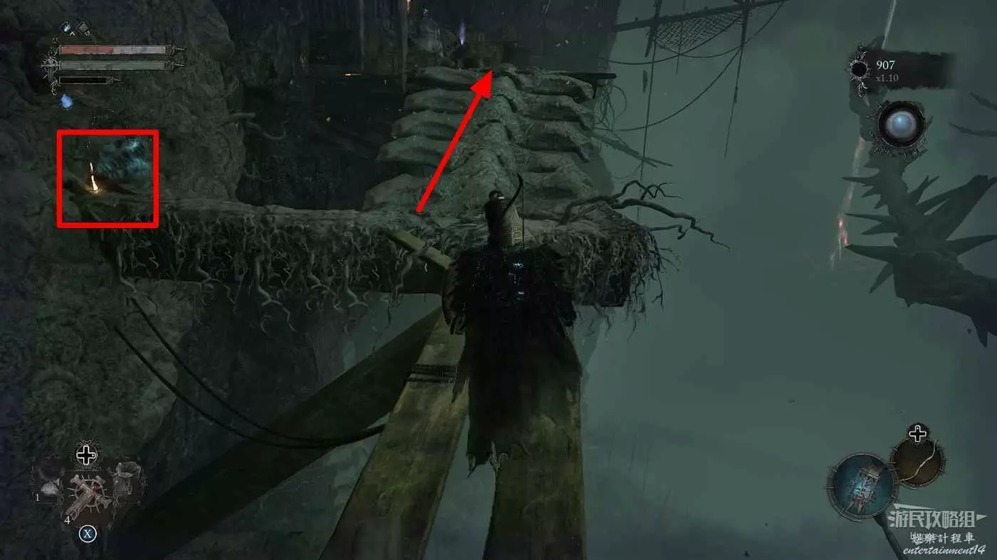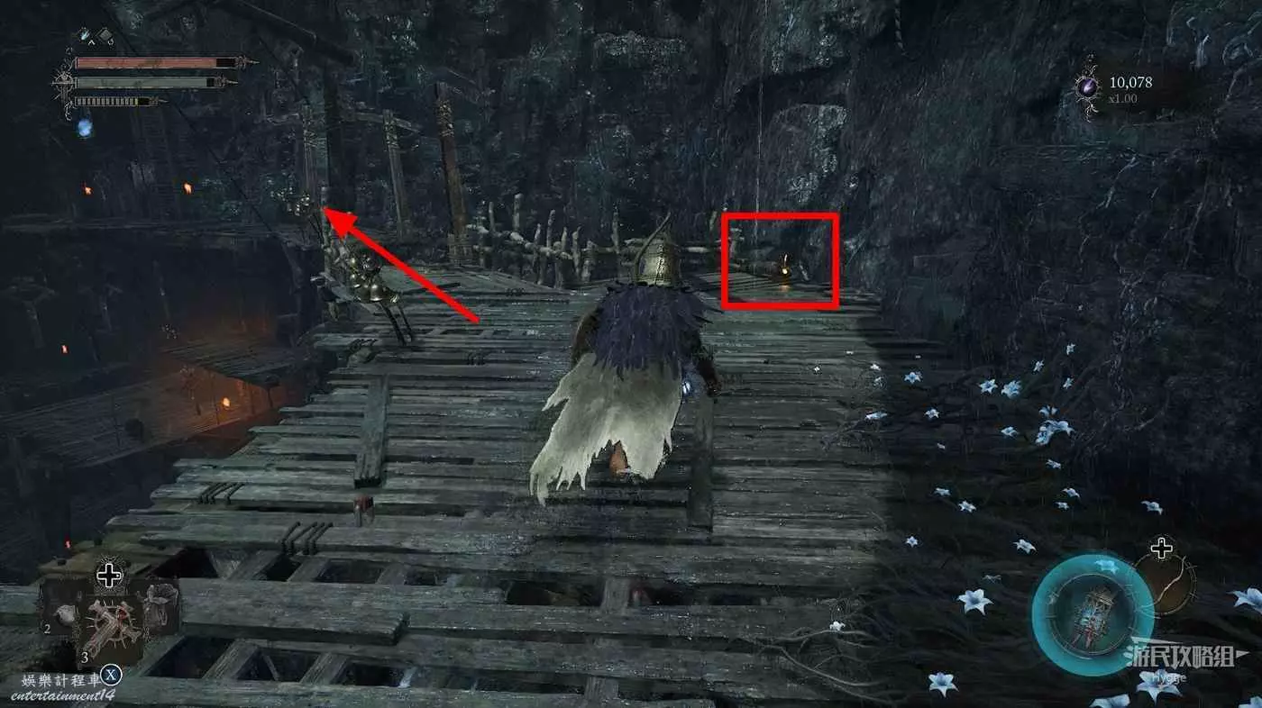 回到花床處,旁邊的梯子上面除了一些敵人外並無其他物品,因此可以不用上去直接返回遺骸即可。