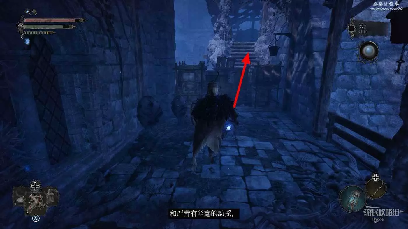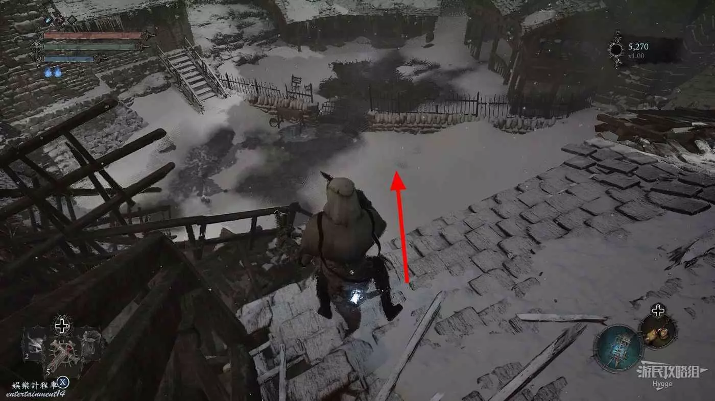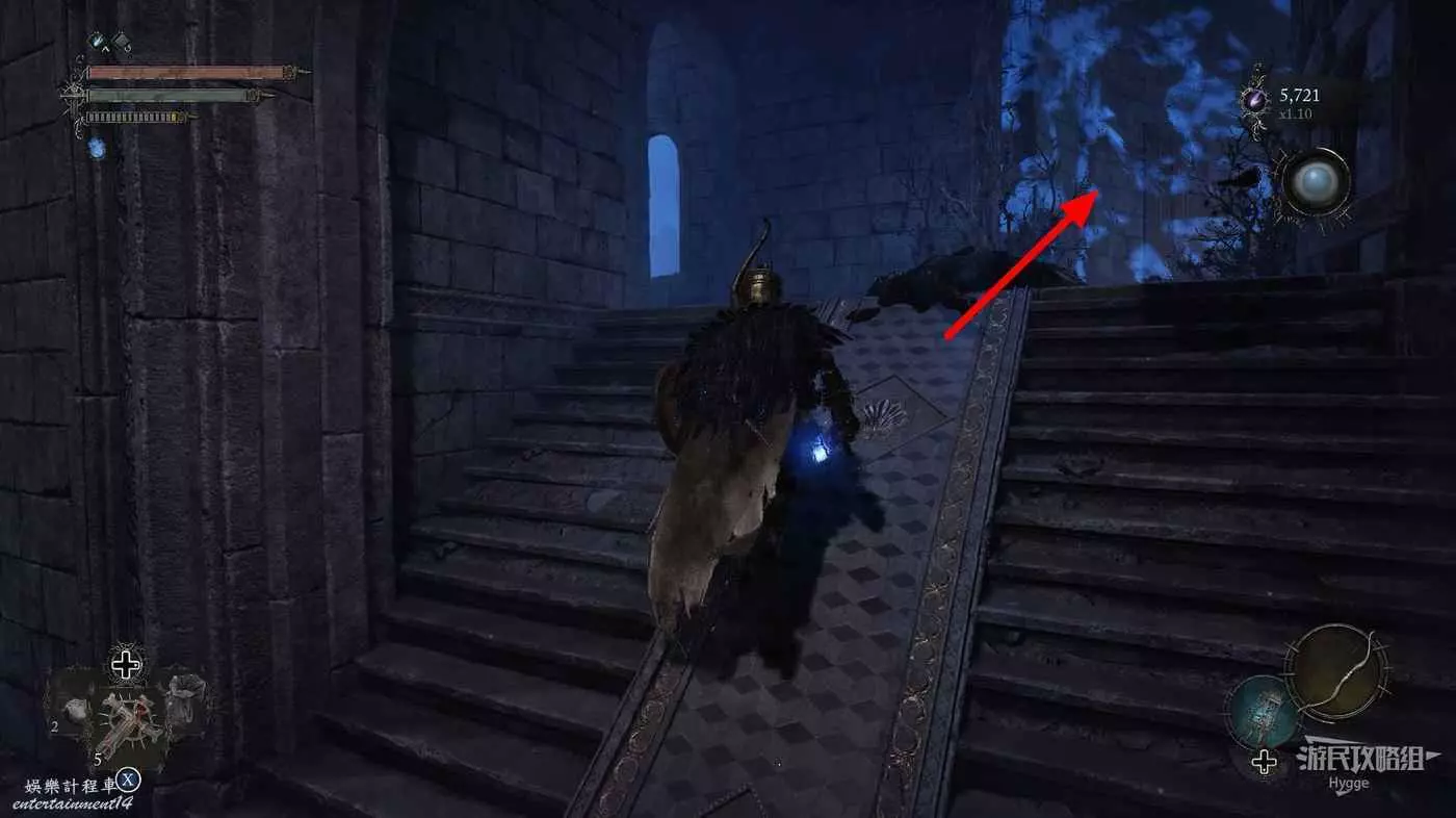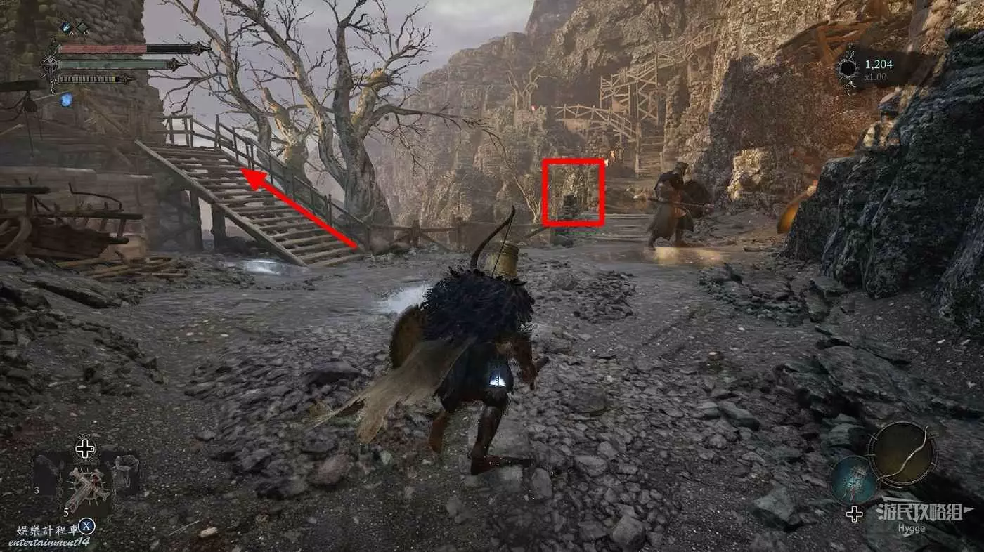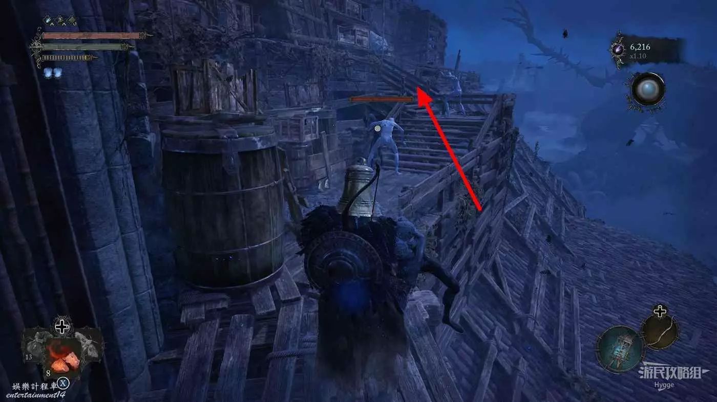 前方道路中的怪物不用管,直接往前跑沿著樓梯向上。