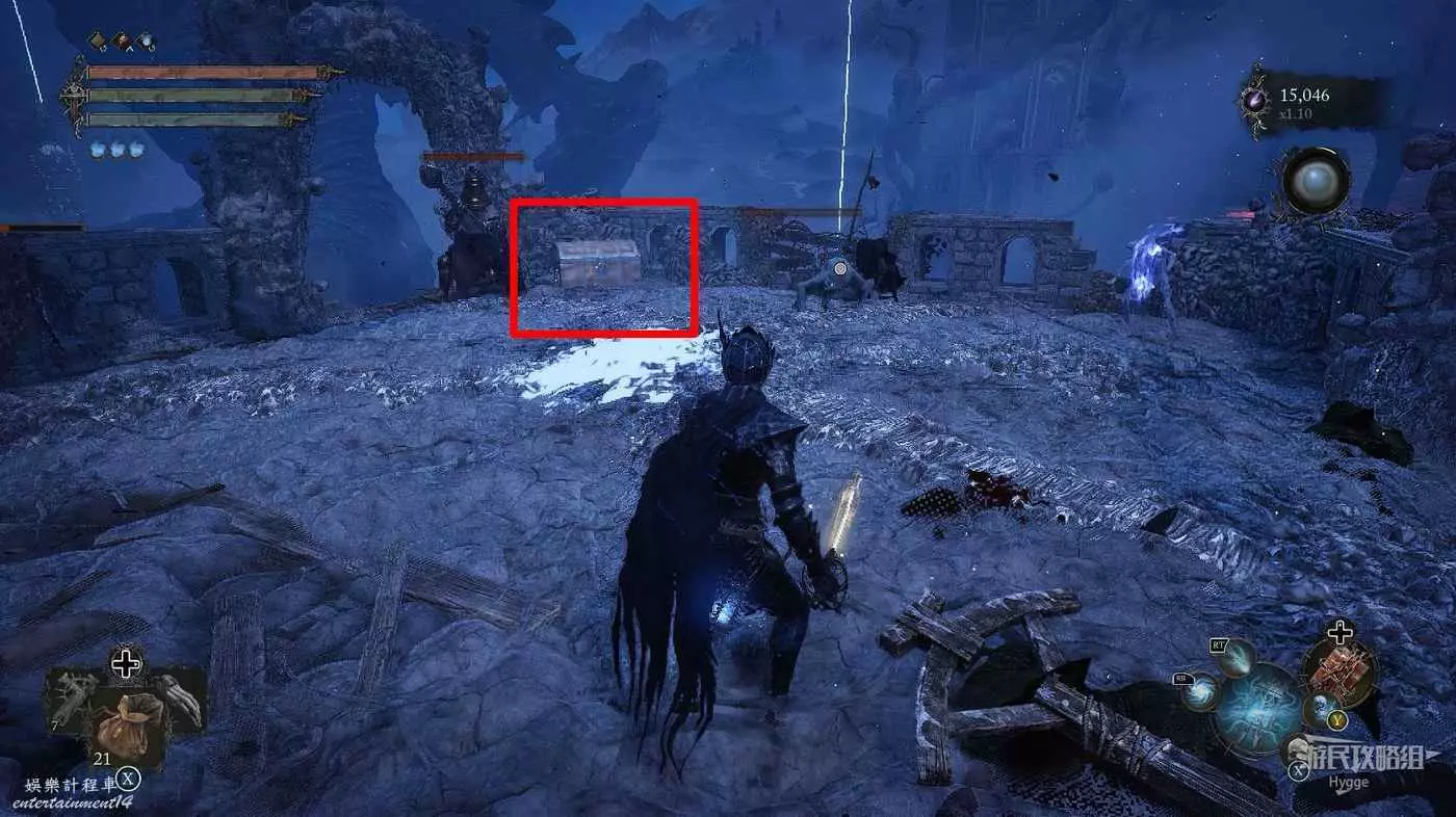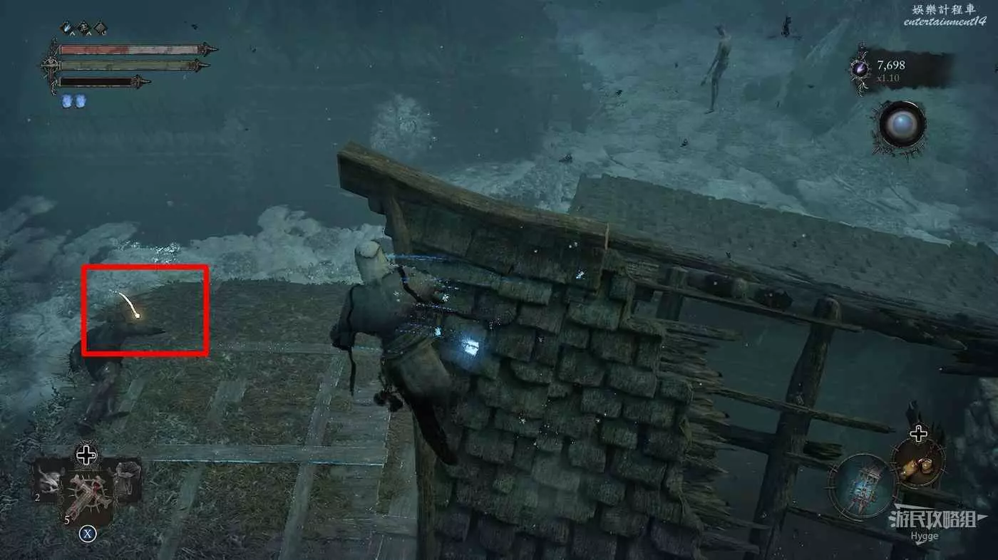 擊殺平臺上的巫師後可以在角落處拿到一些道具。