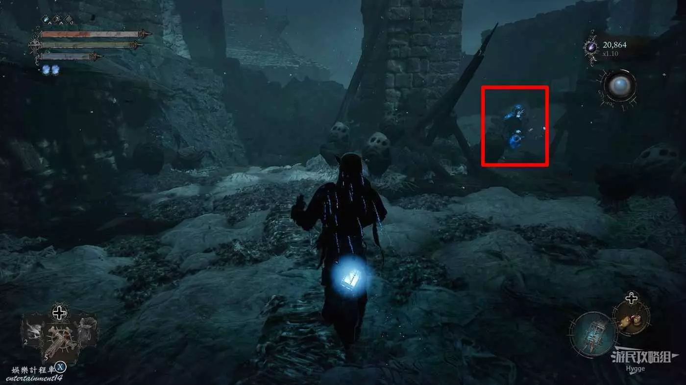 在此處的影界中可以拿到一個安特魯瓦鑿子,但旁邊有一隻虛偽面容埋伏,拿了東西趕緊走。