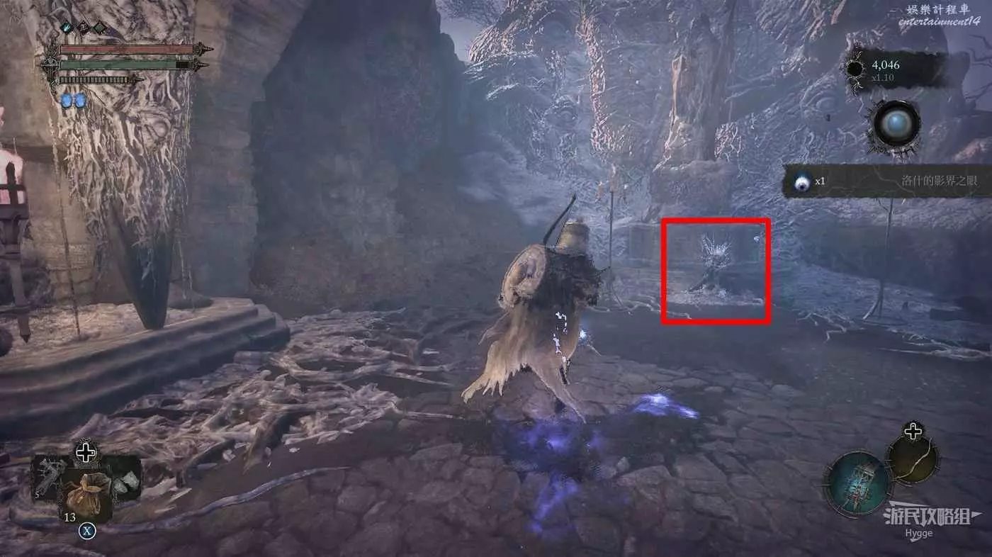 再次進入影界在大樹對面的牆壁上的靈魂處可以拿到道具【血腥朝聖者的影界之眼】。