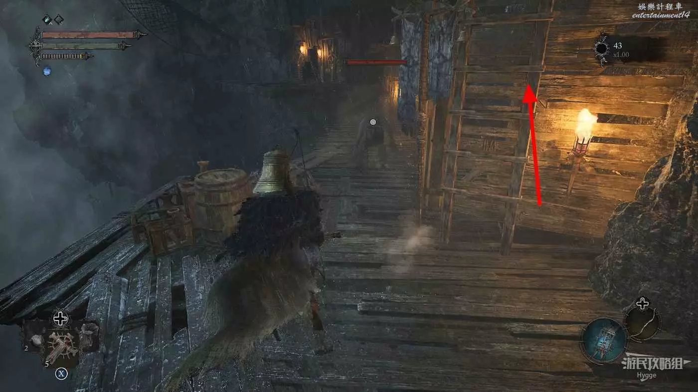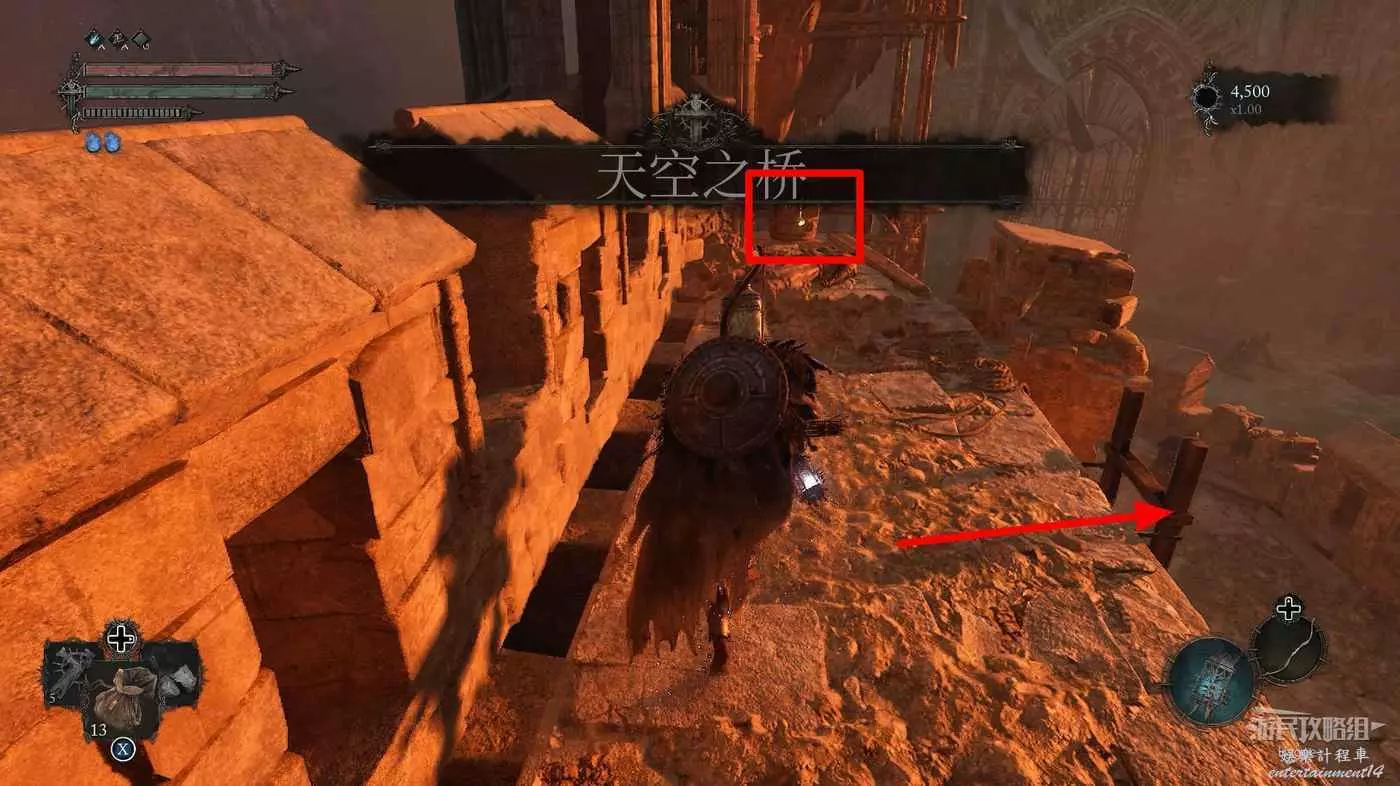 在前方拿到武器【圖集旗幟標槍】後通過梯子向上,在上層會回到天空之橋區域。