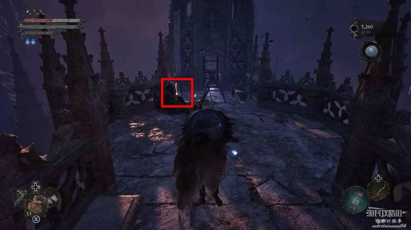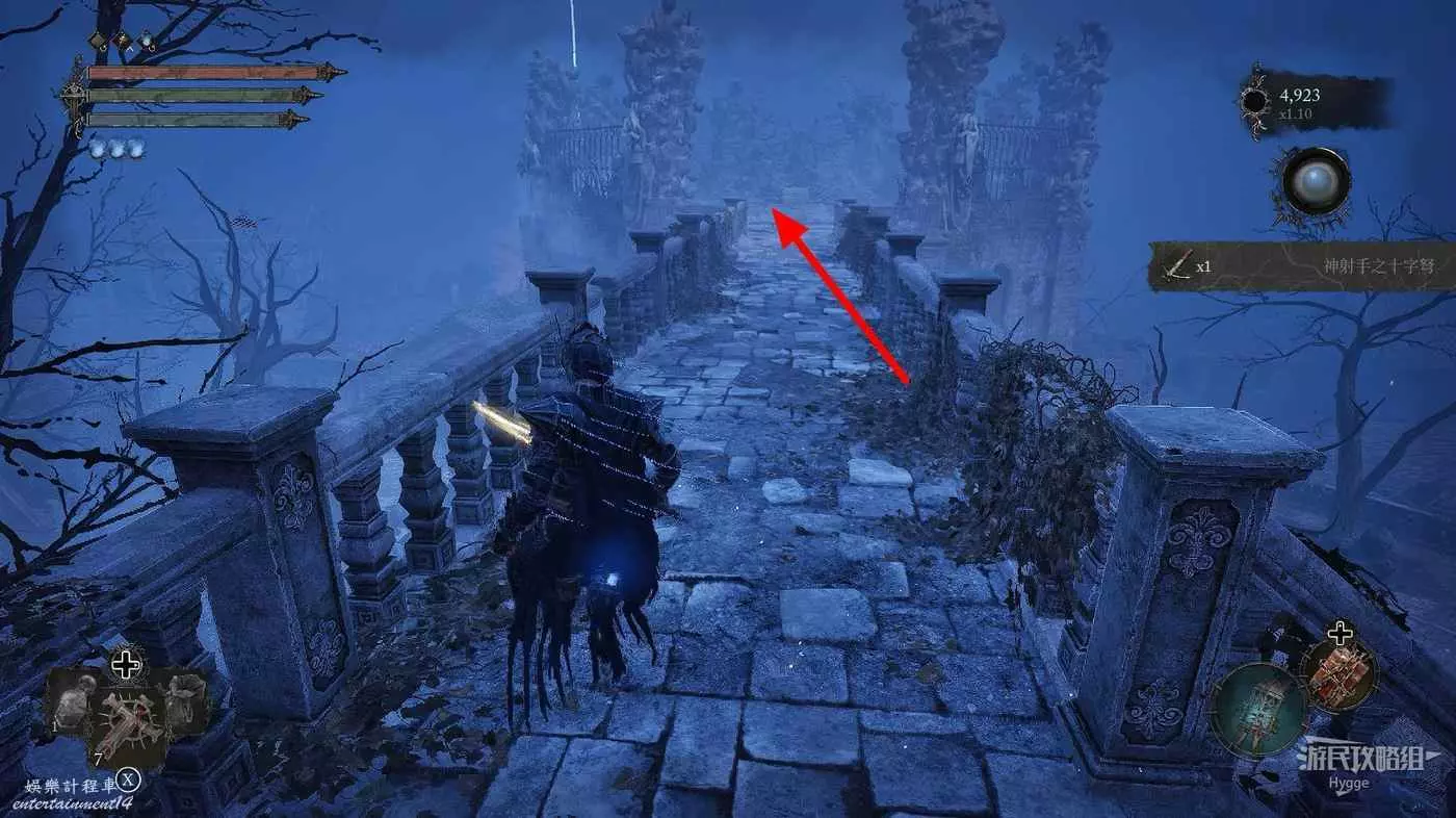 旁邊的長橋區域首次來沒有任何東西,探索完修道院後再回來會進入【鋼鐵行者】BOSS戰。